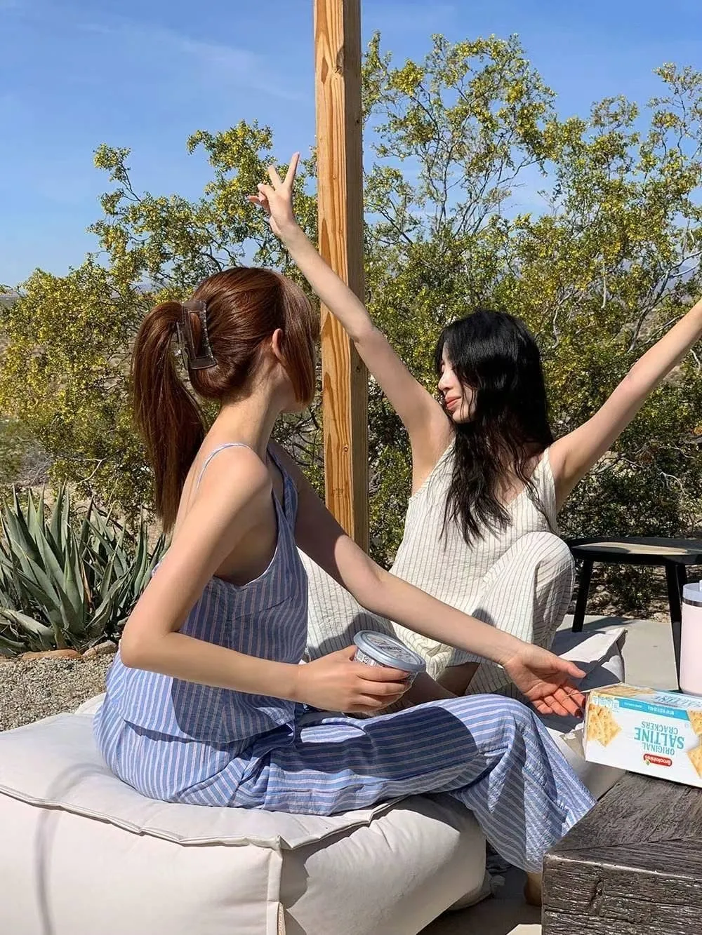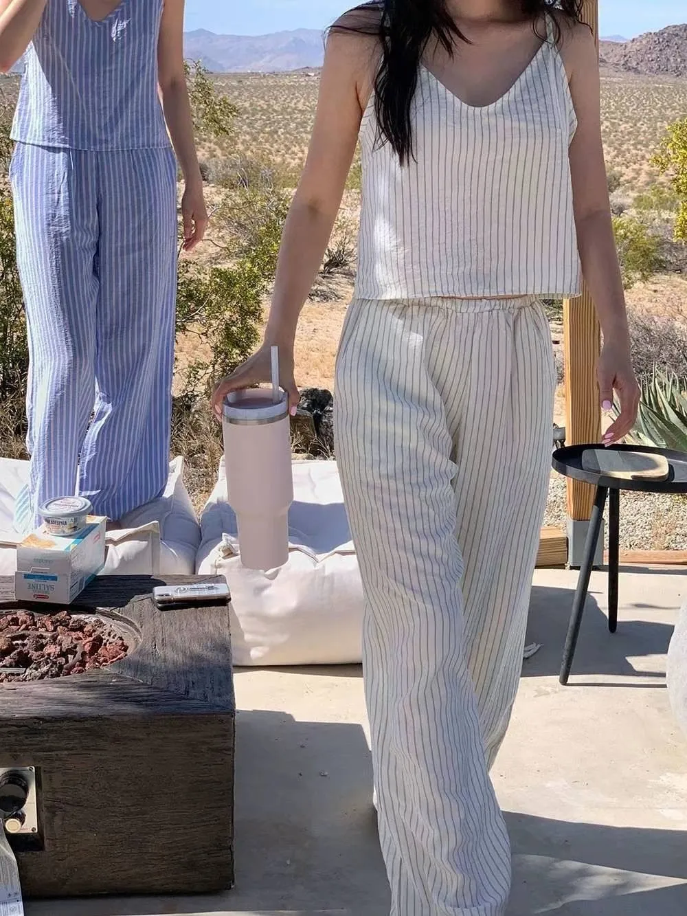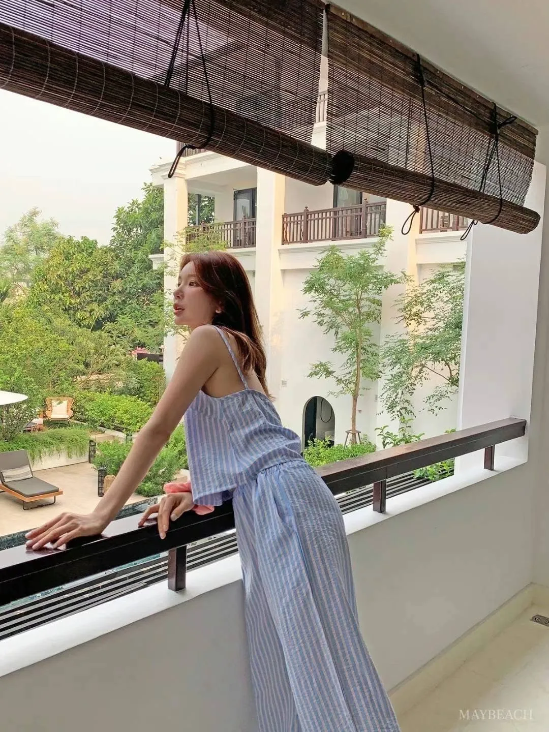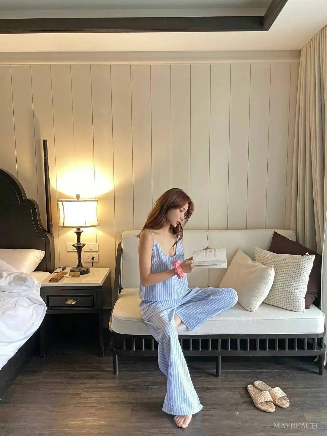 HJ886薄款條紋套裝(背心+長褲) 白 藍 官網價$1220 線上價$1190