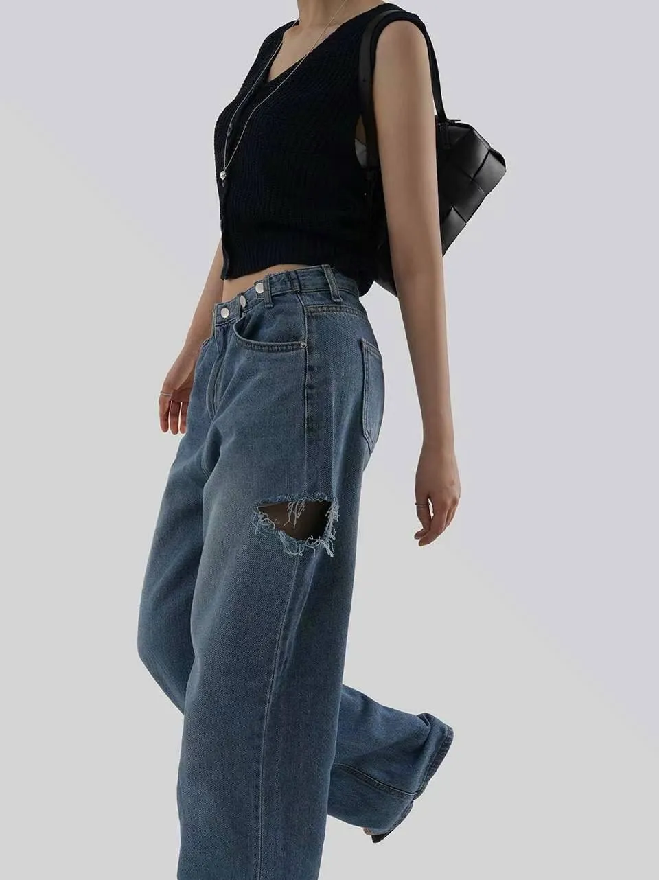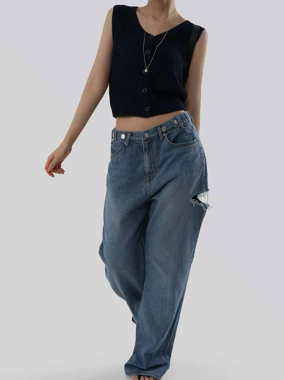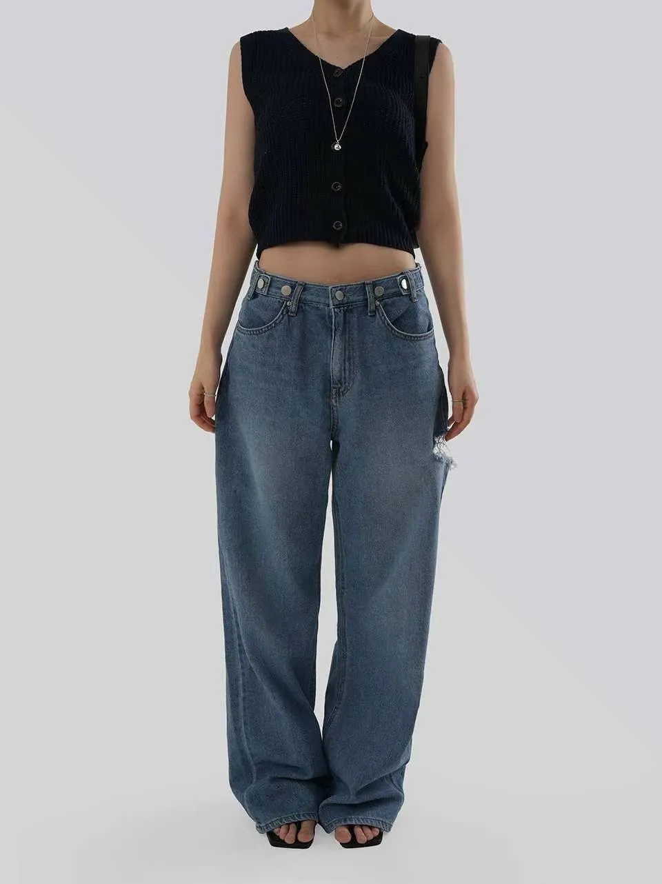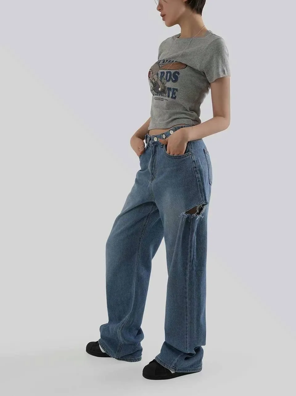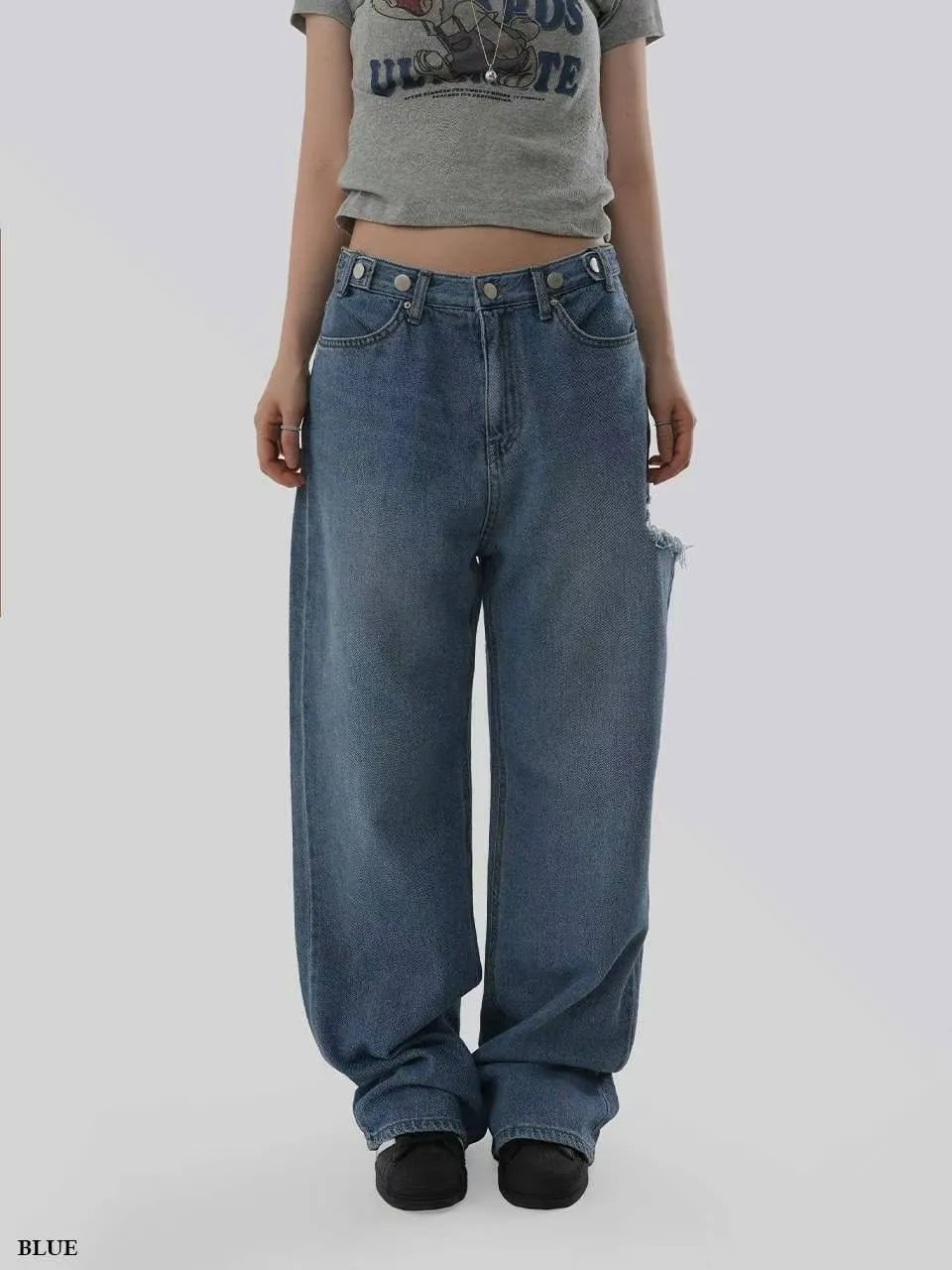 HJ889回購款單腿割破Y2K設計側腰釦牛仔長褲(原BA482) 官網價$990 線上價$960