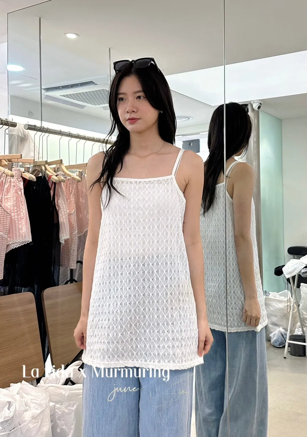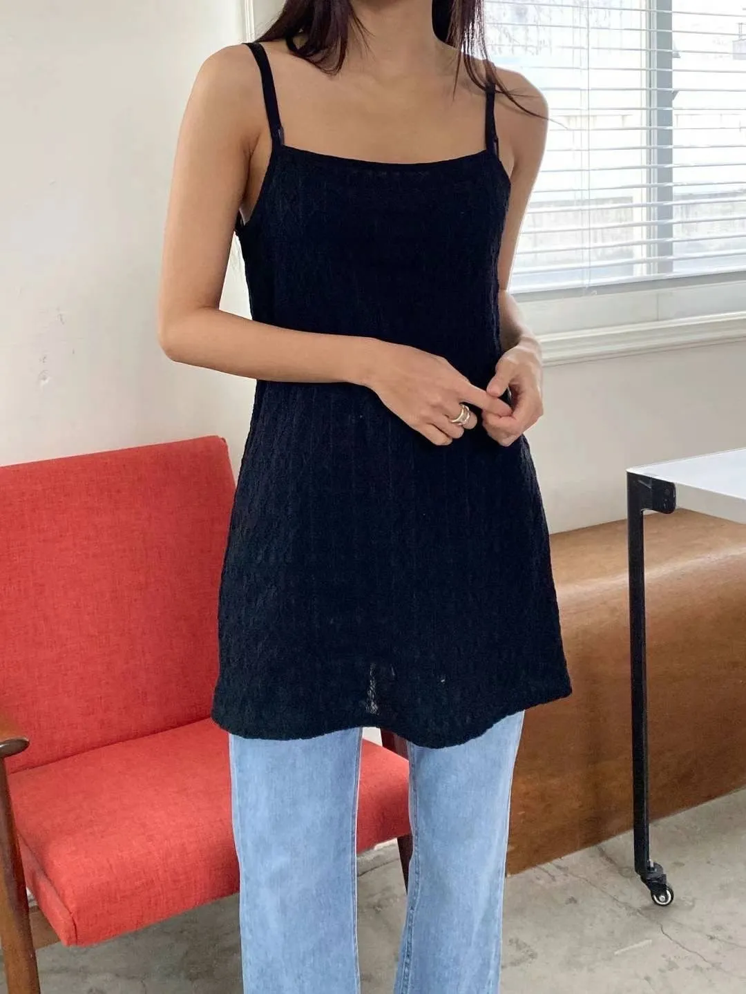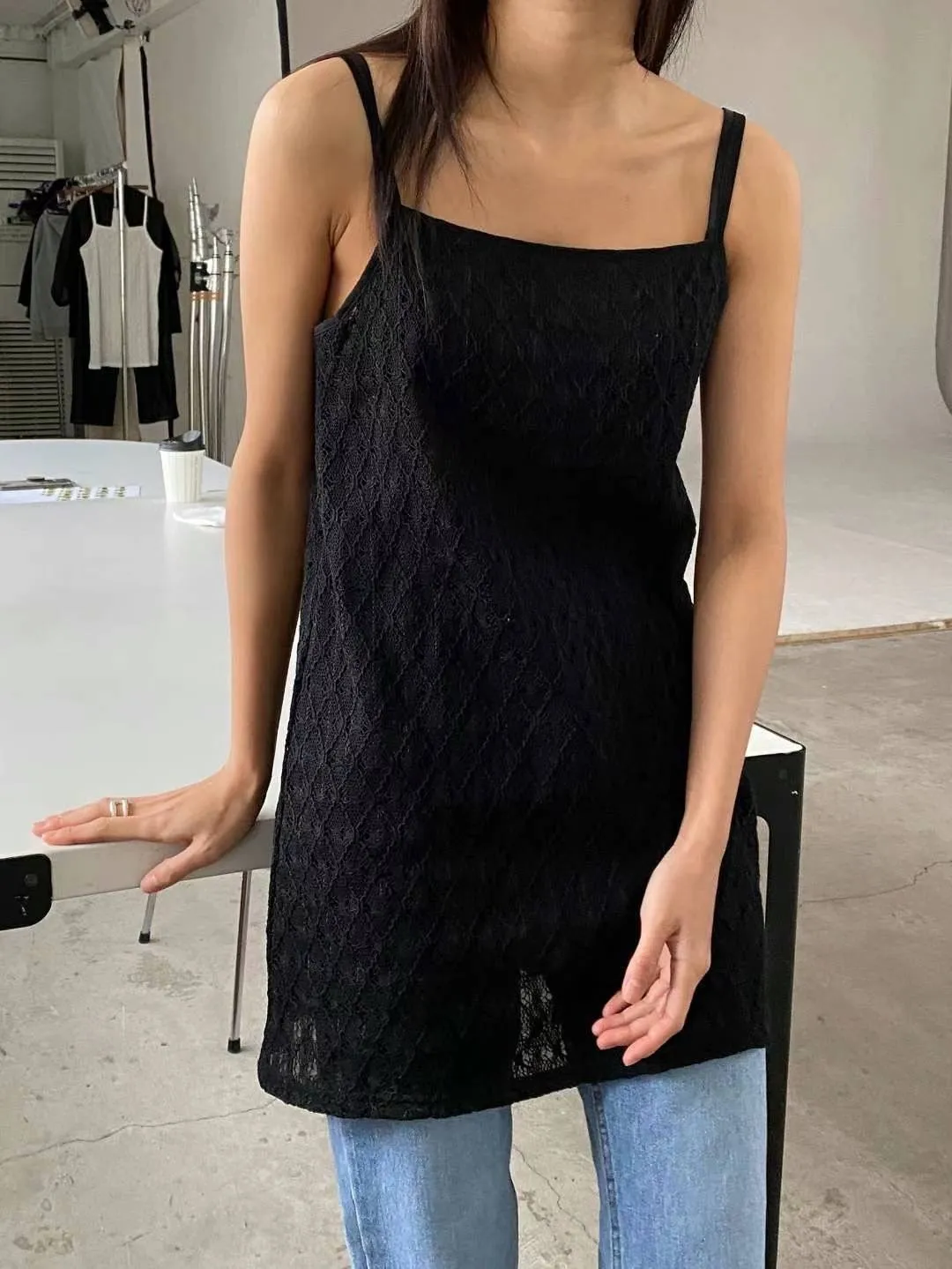 HJ892質感編織細肩帶襯裙洋裝上衣 白 黑 官網價$580 線上價$550