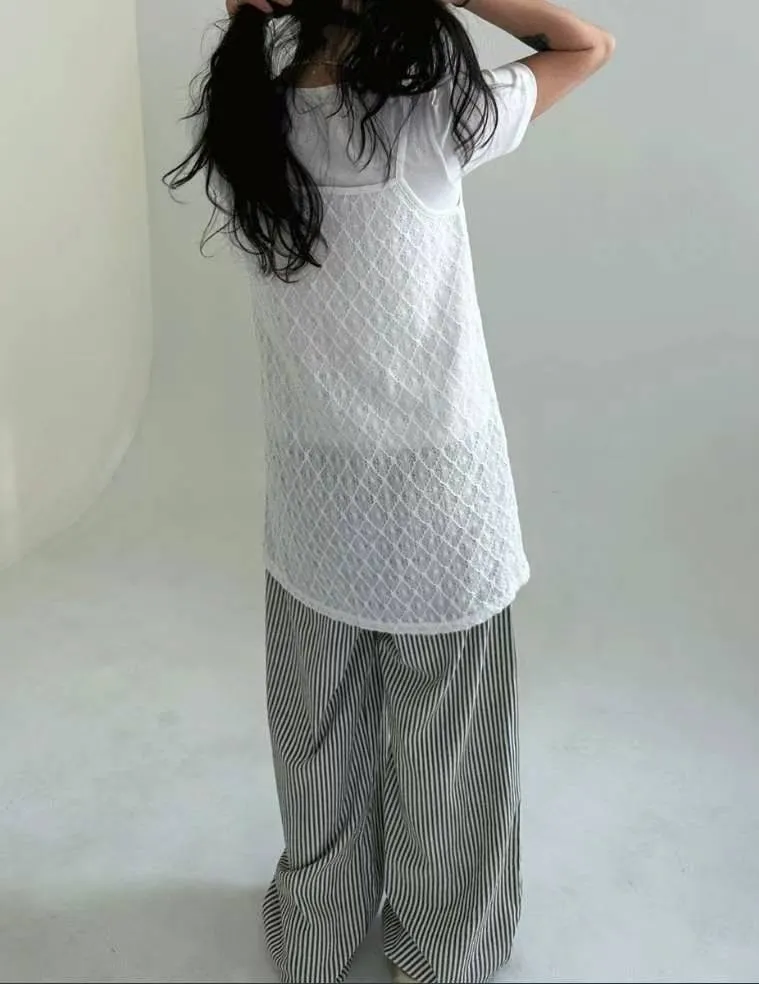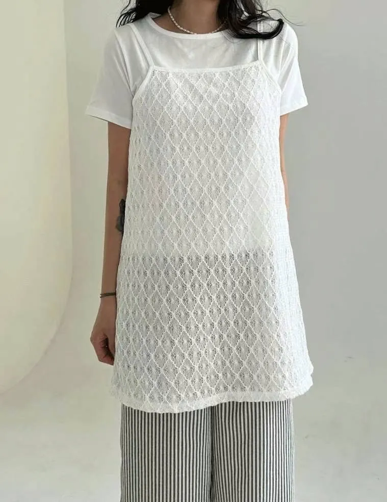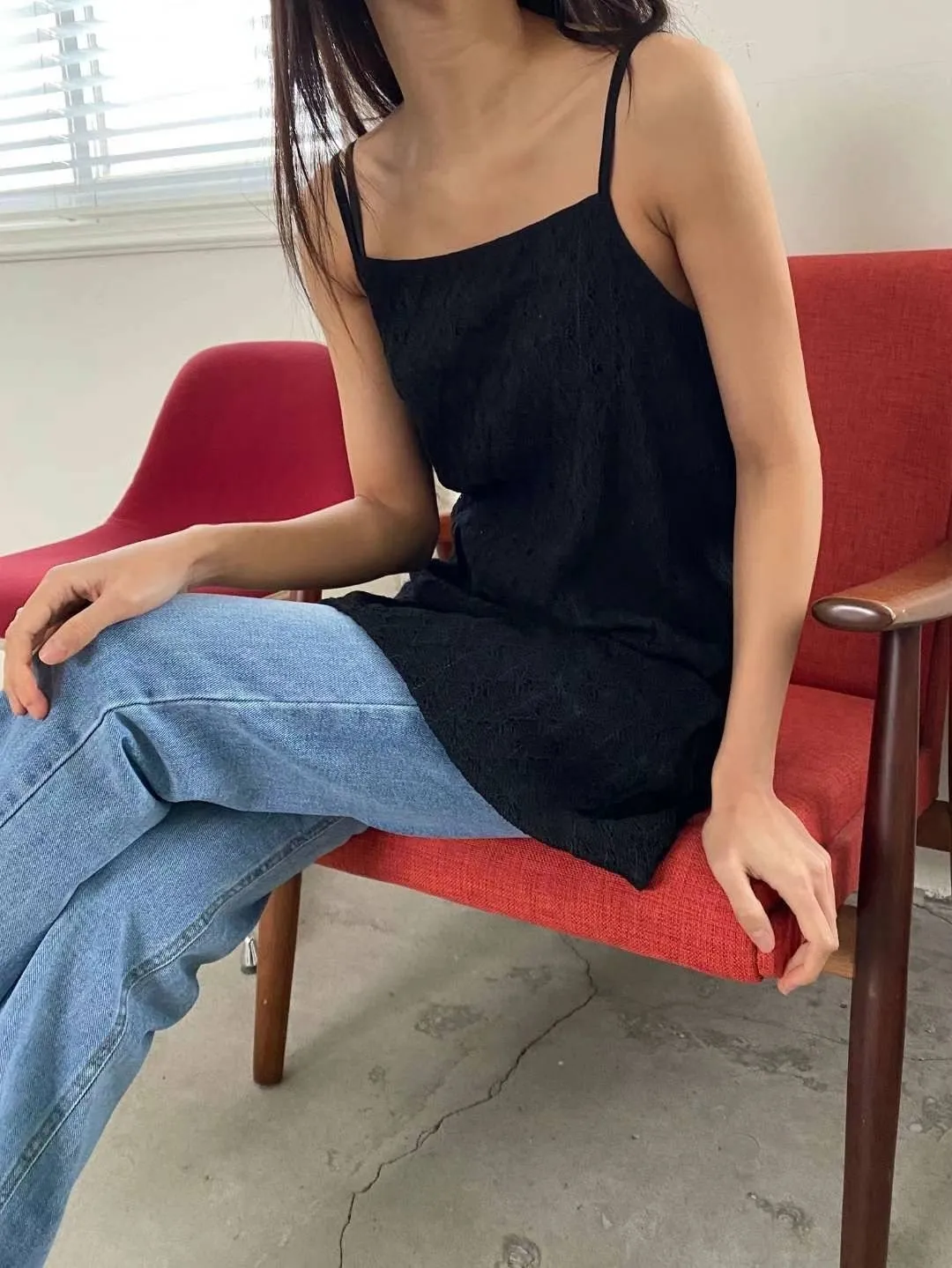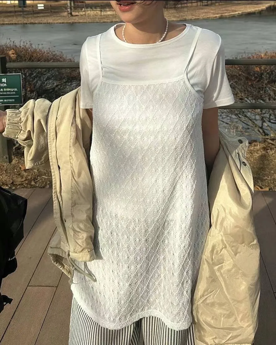 HJ892質感編織細肩帶襯裙洋裝上衣 白 黑 官網價$580 線上價$550