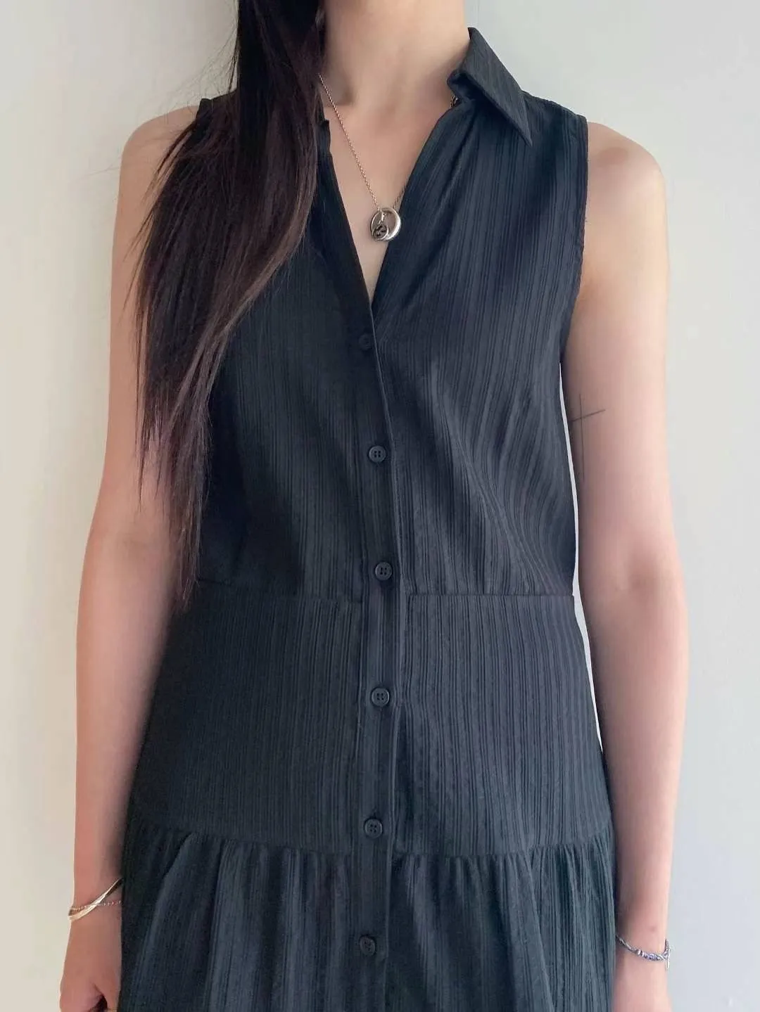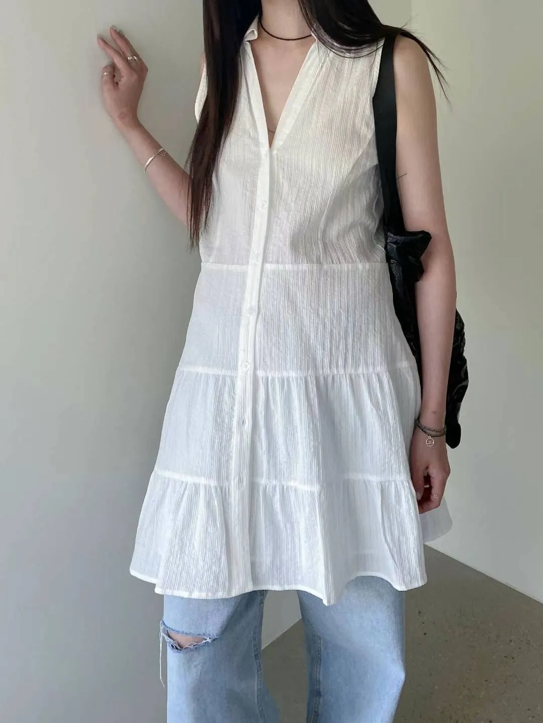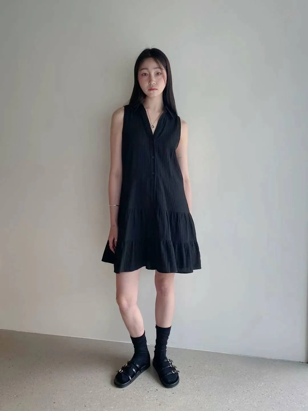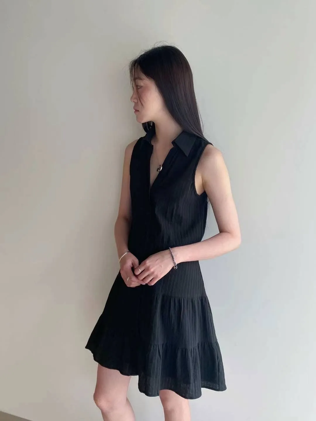 HJ893開襟襯衫領無袖洋裝 白 黑 官網價$1090 線上價$1060