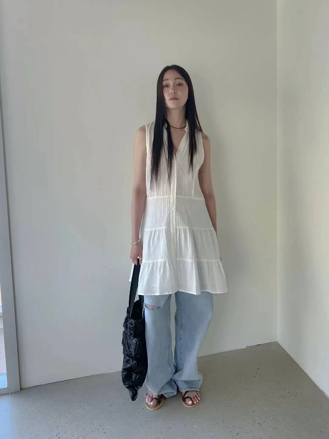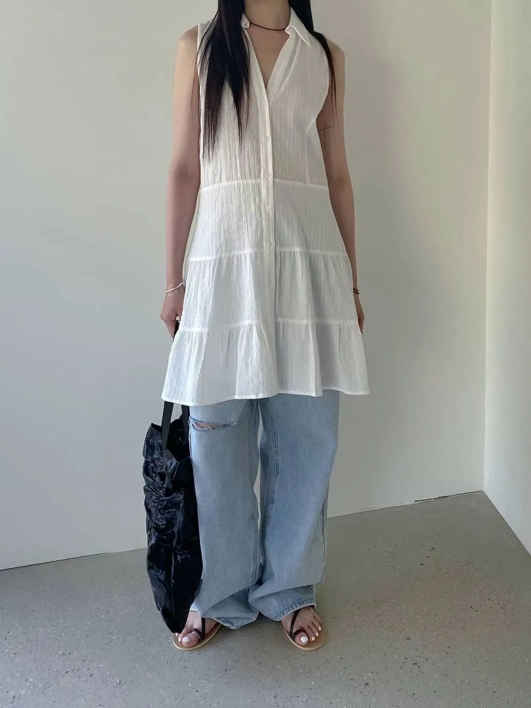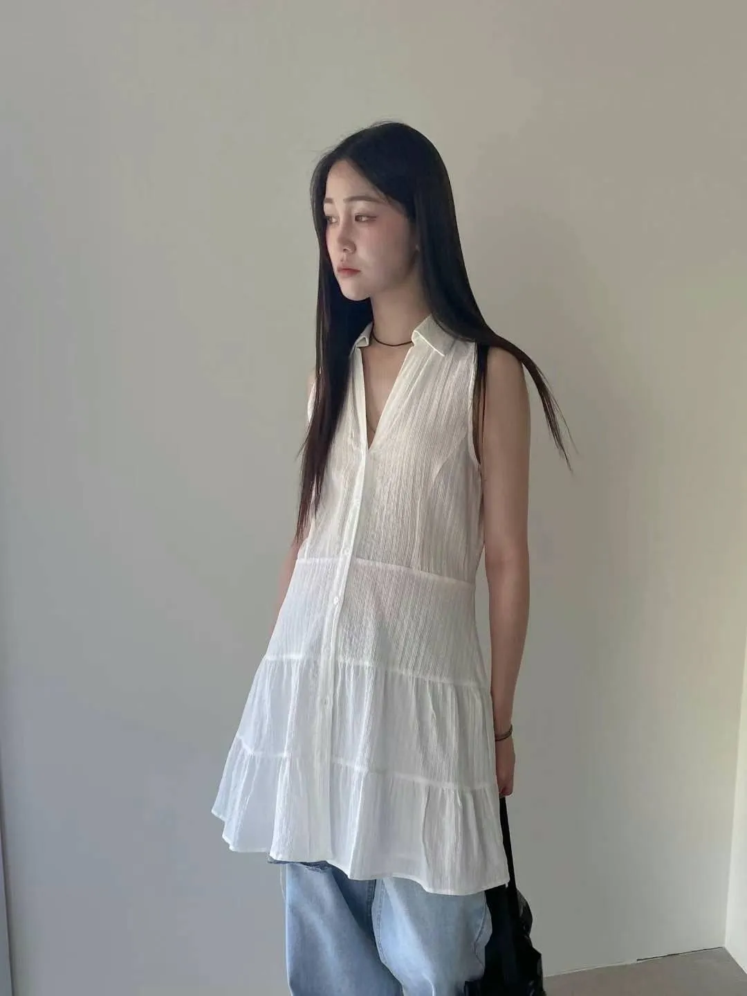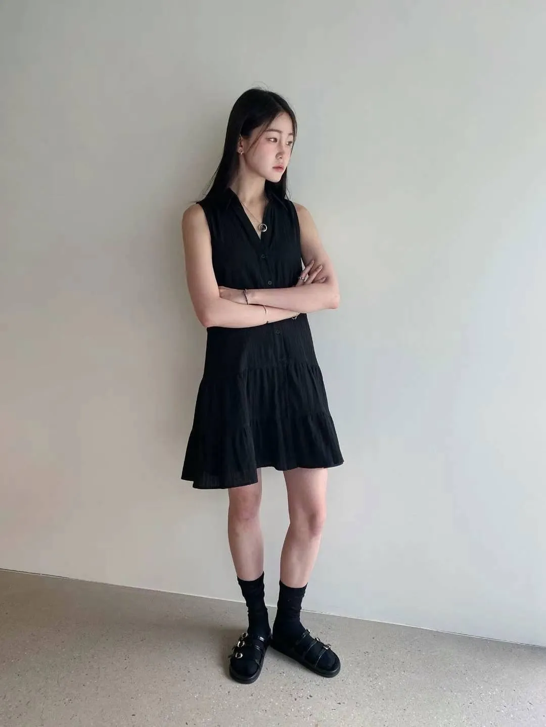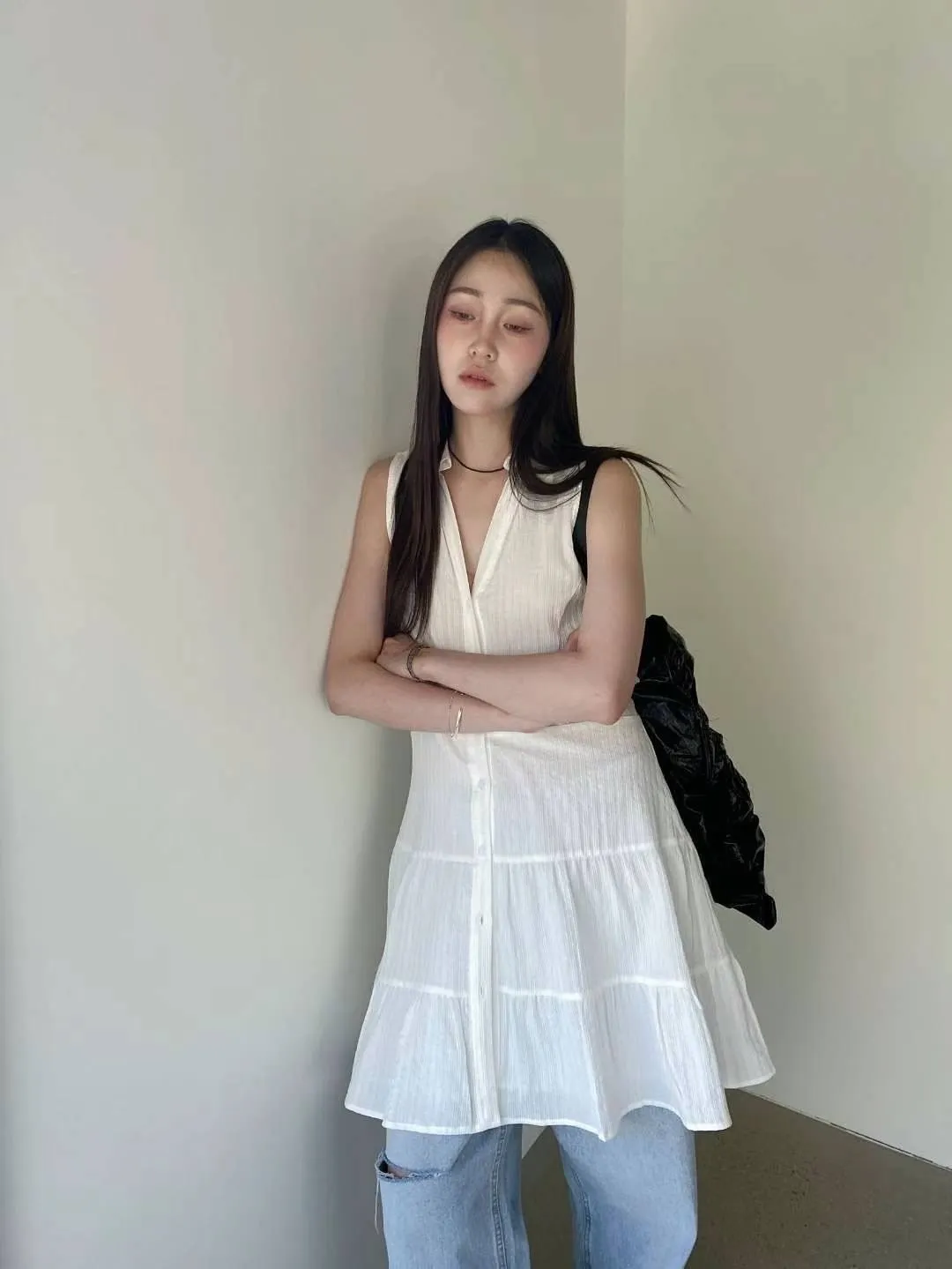 HJ893開襟襯衫領無袖洋裝 白 黑 官網價$1090 線上價$1060