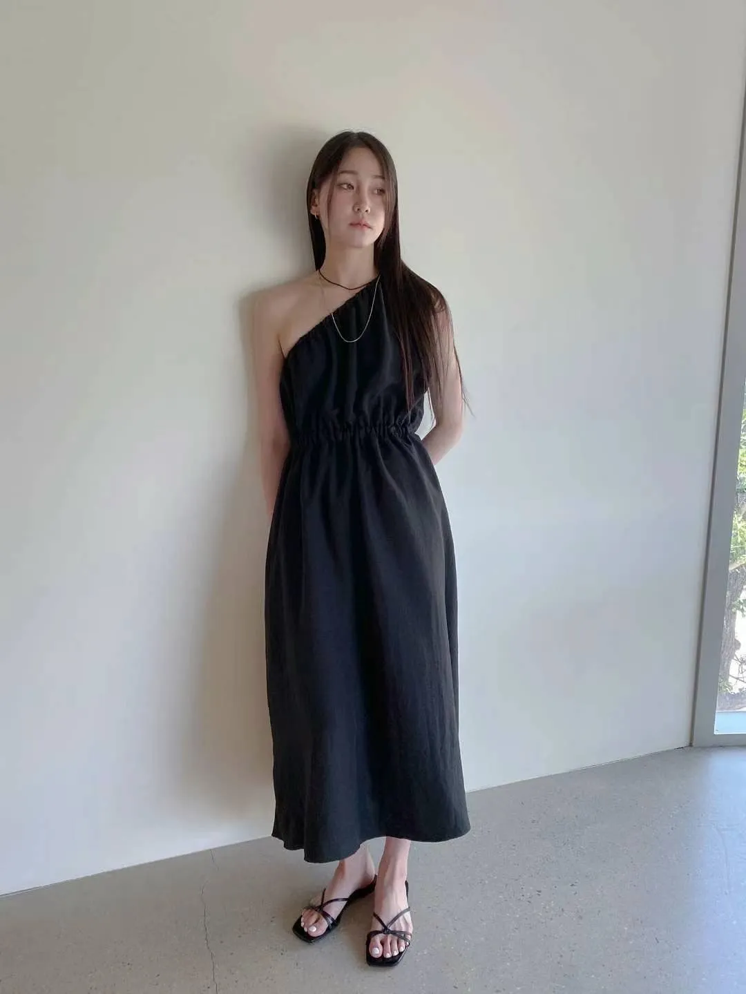 HJ896希臘女神斜肩女神洋裝 白 黑 官網價$1070 線上價$1040