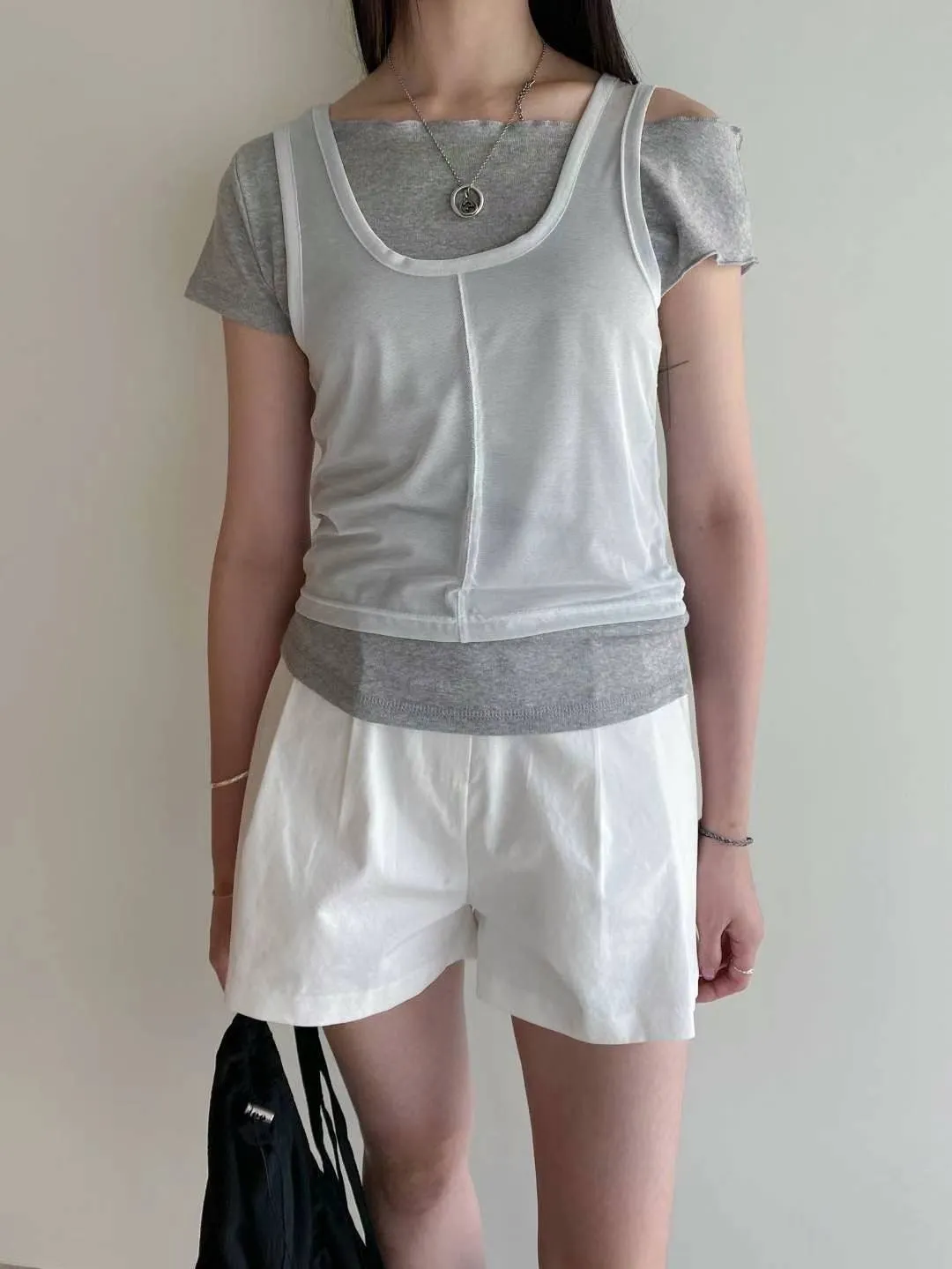 HJ897套裝組Tshirt+網紗背心(內層分色) 白 綠 灰 官網價$710 線上價$680