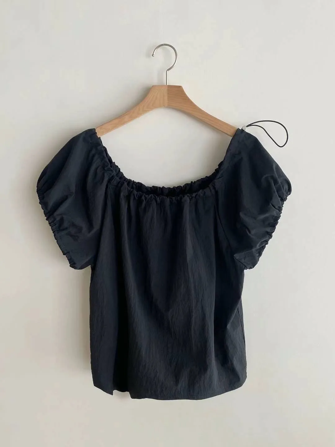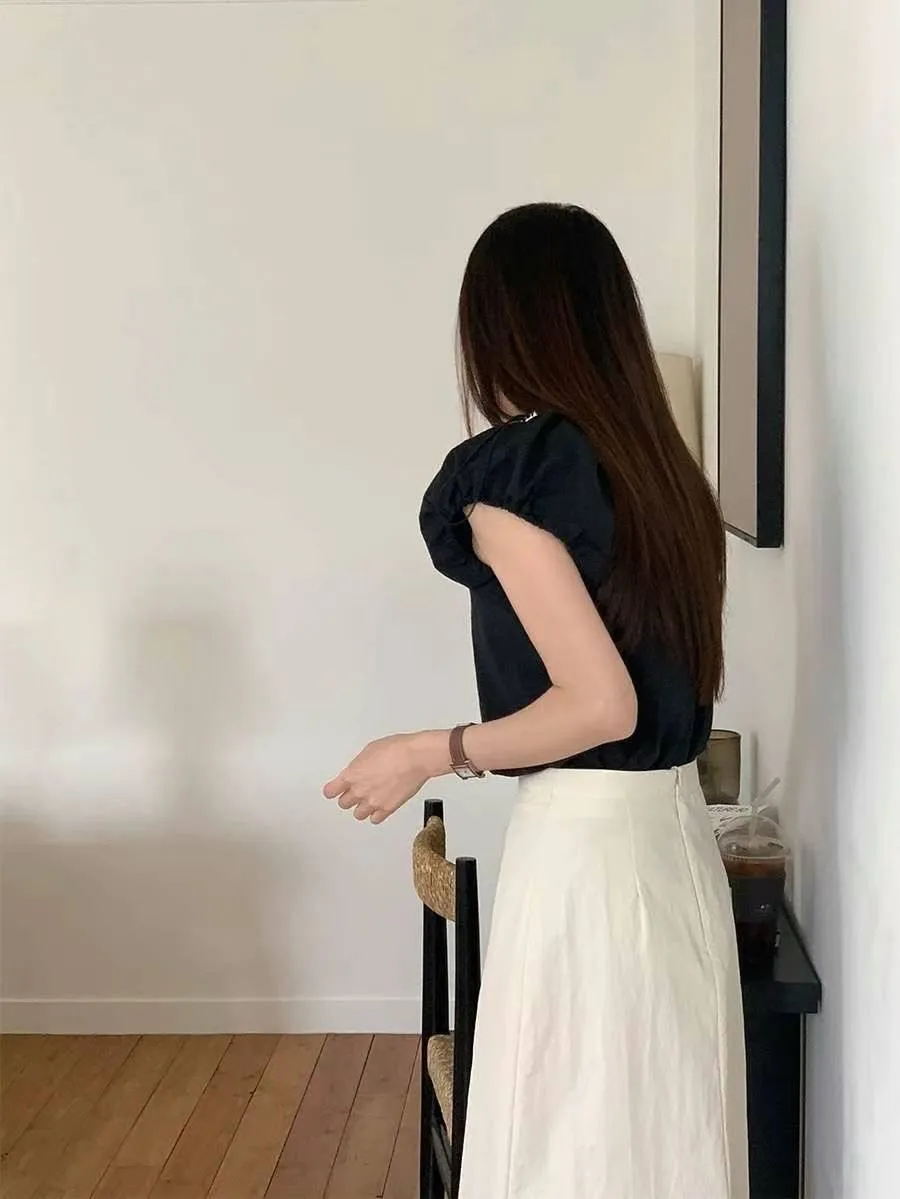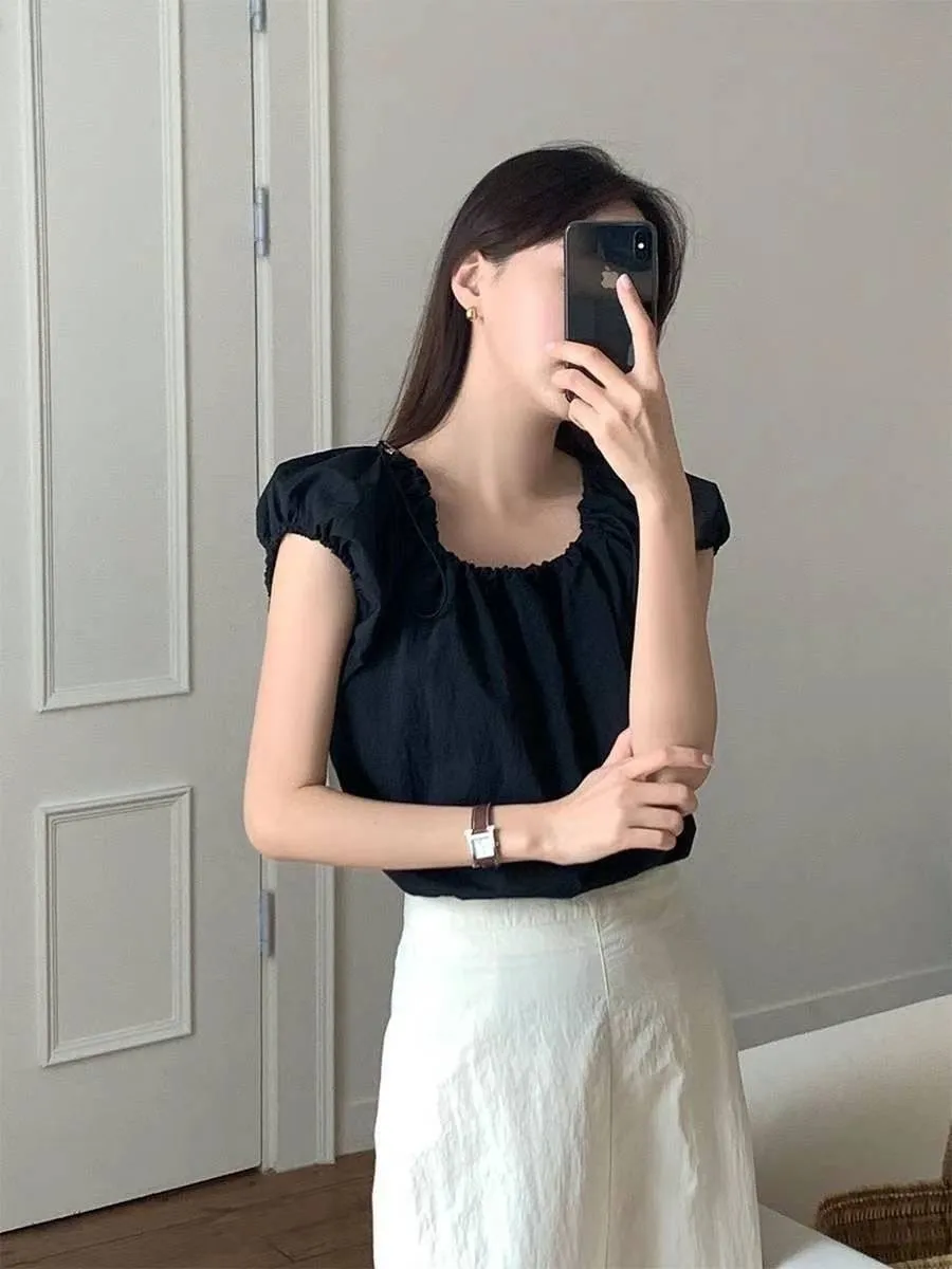 HJ904氣質U領上衣 米 黑 官網價$760 線上價$730