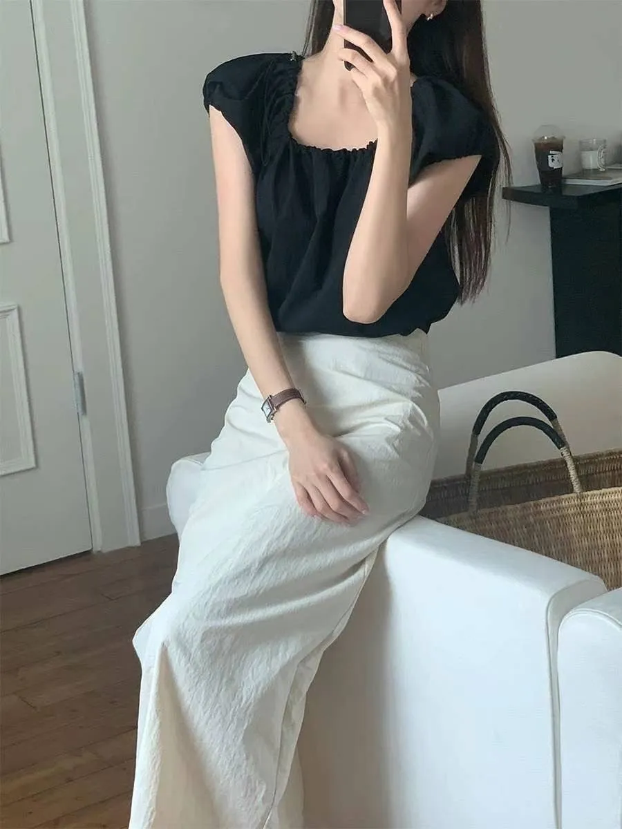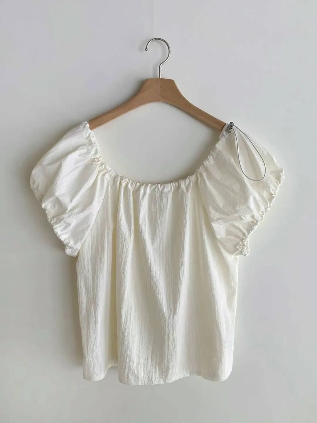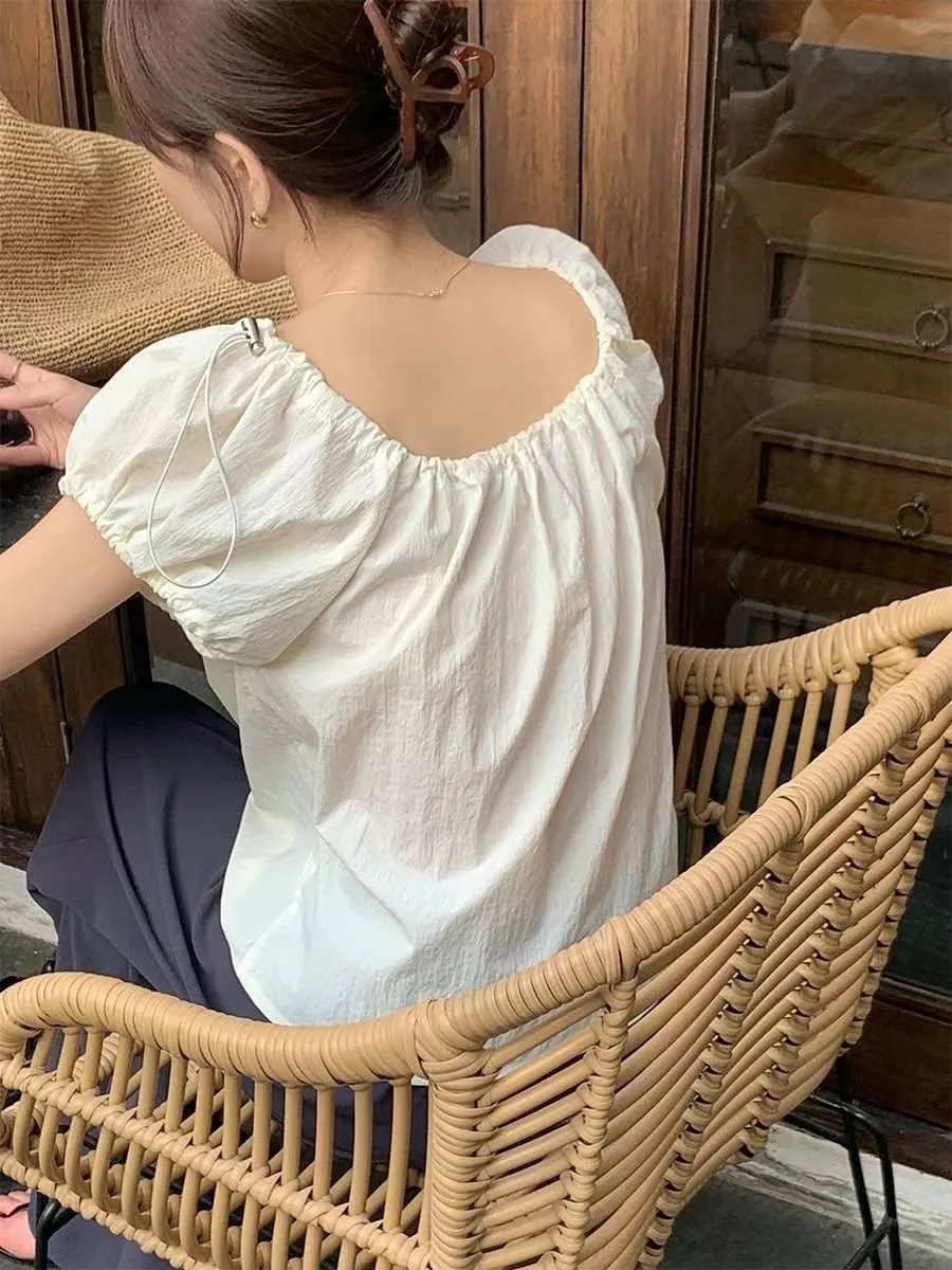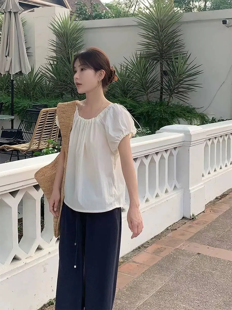 HJ904氣質U領上衣 米 黑 官網價$760 線上價$730