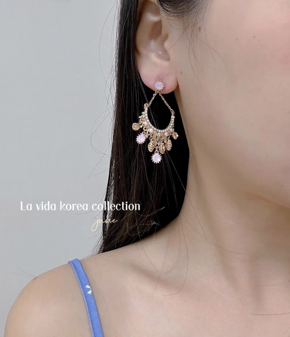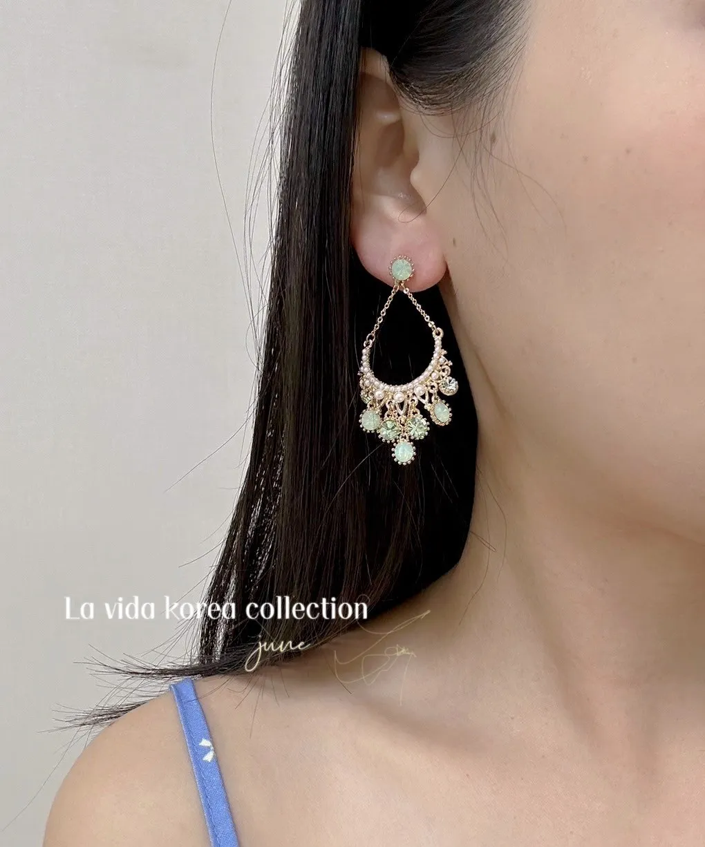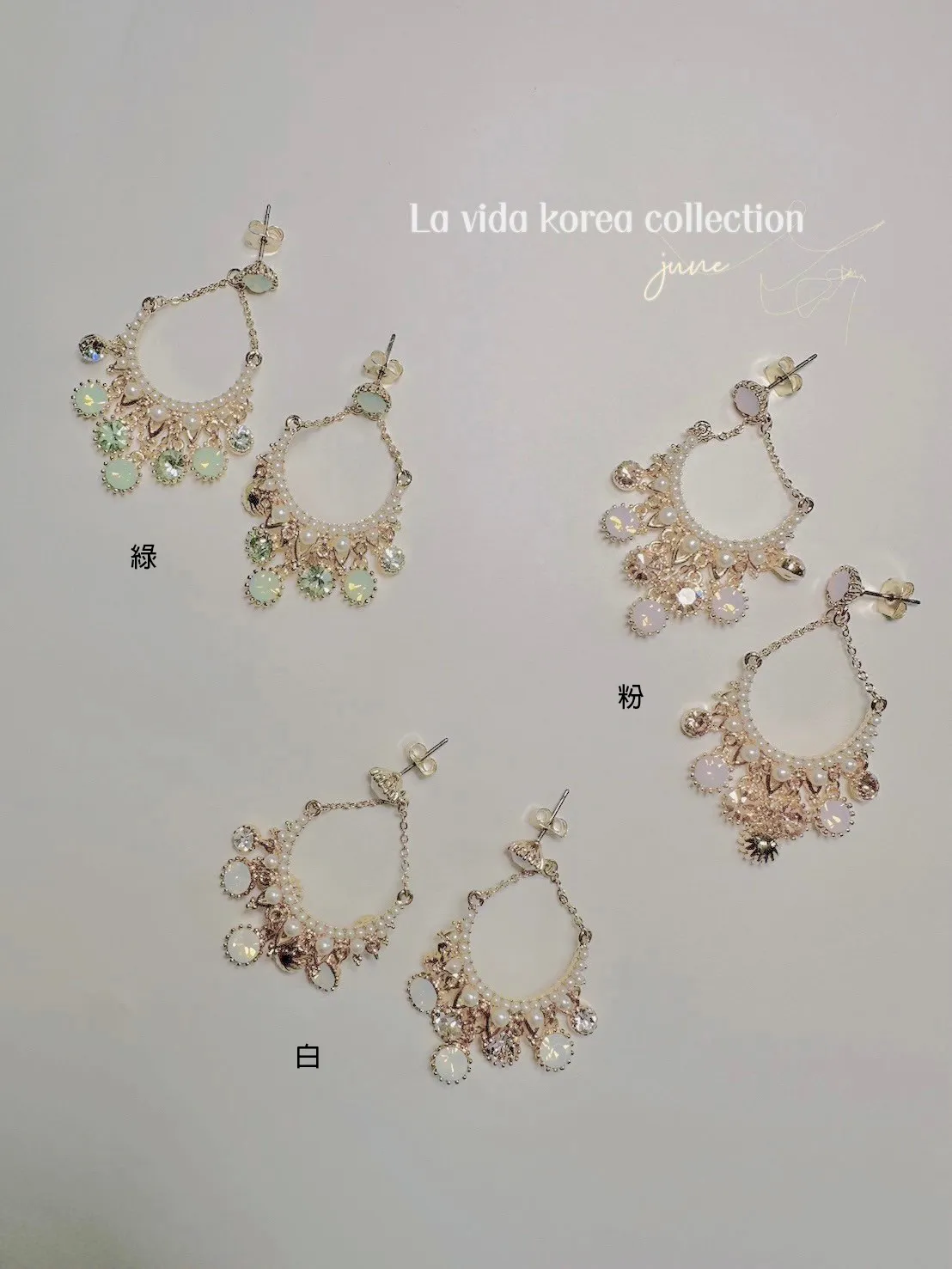 HJ910復古宮廷鋯石珍珠耳環 白 粉 綠 耳針 耳夾(矽) 官網價$340 線上價$320
