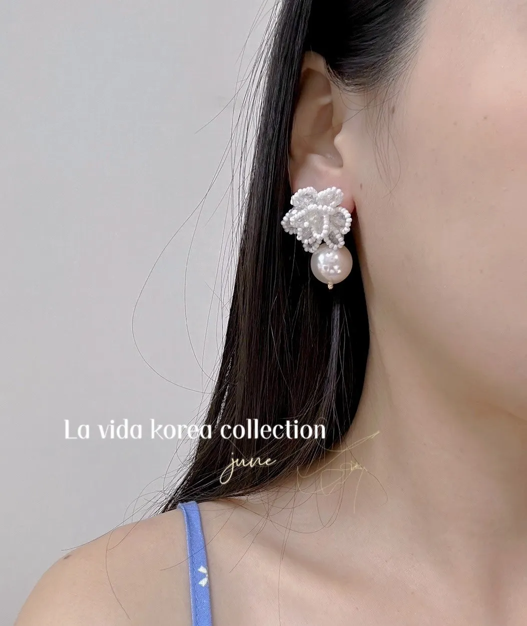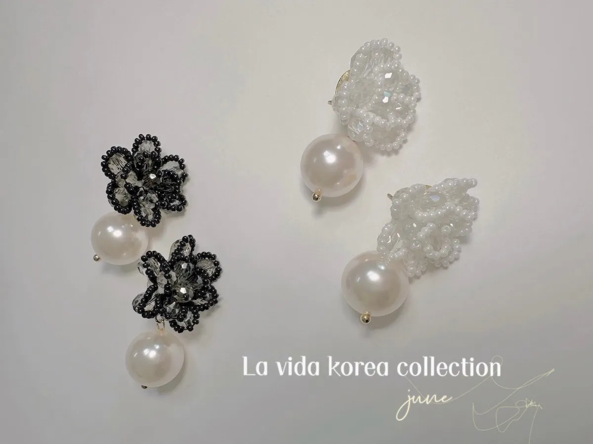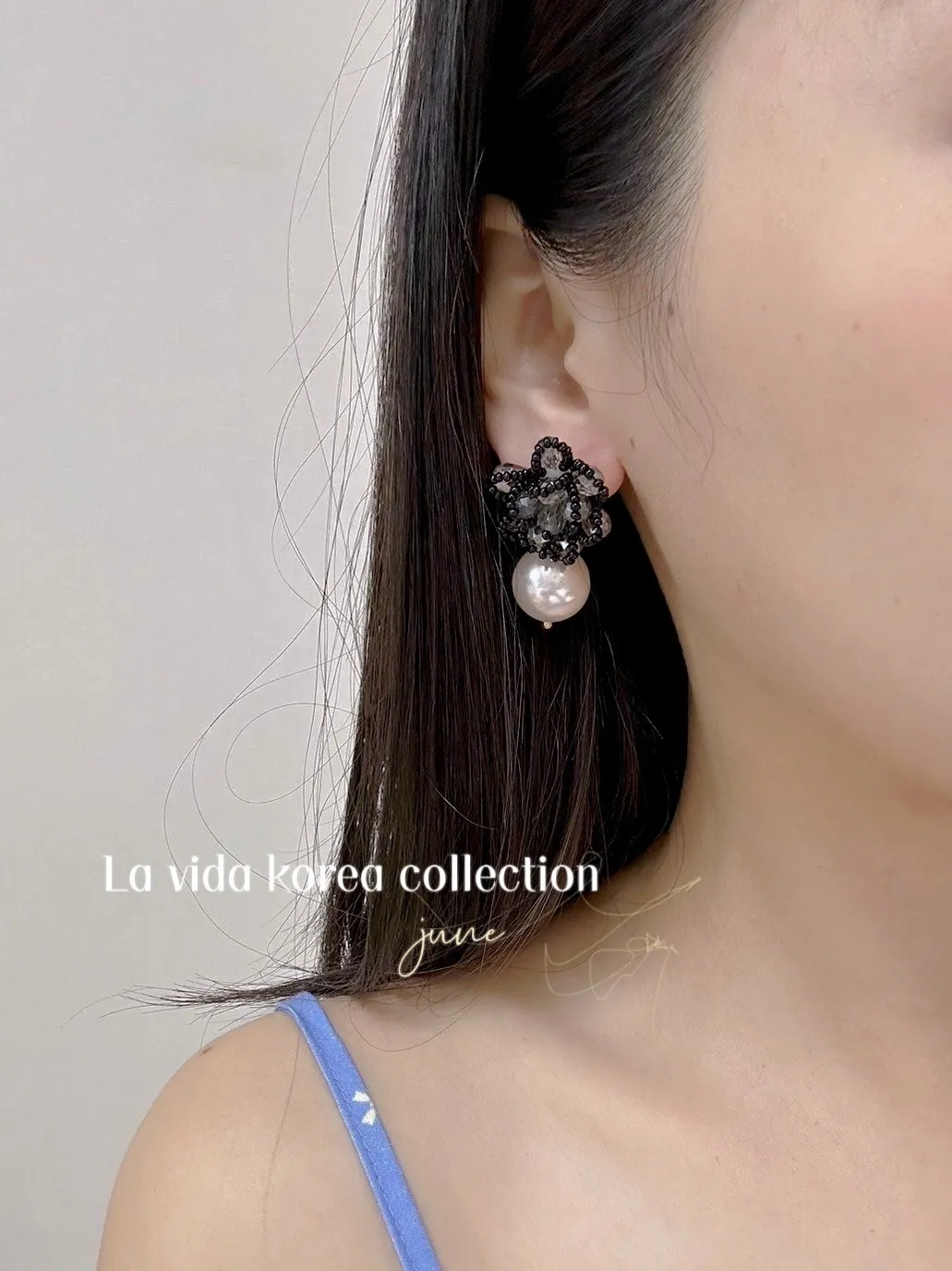 HJ912存在感細珠花朵珍珠耳環(只有耳針款) 白 黑 官網價$299 線上價$279