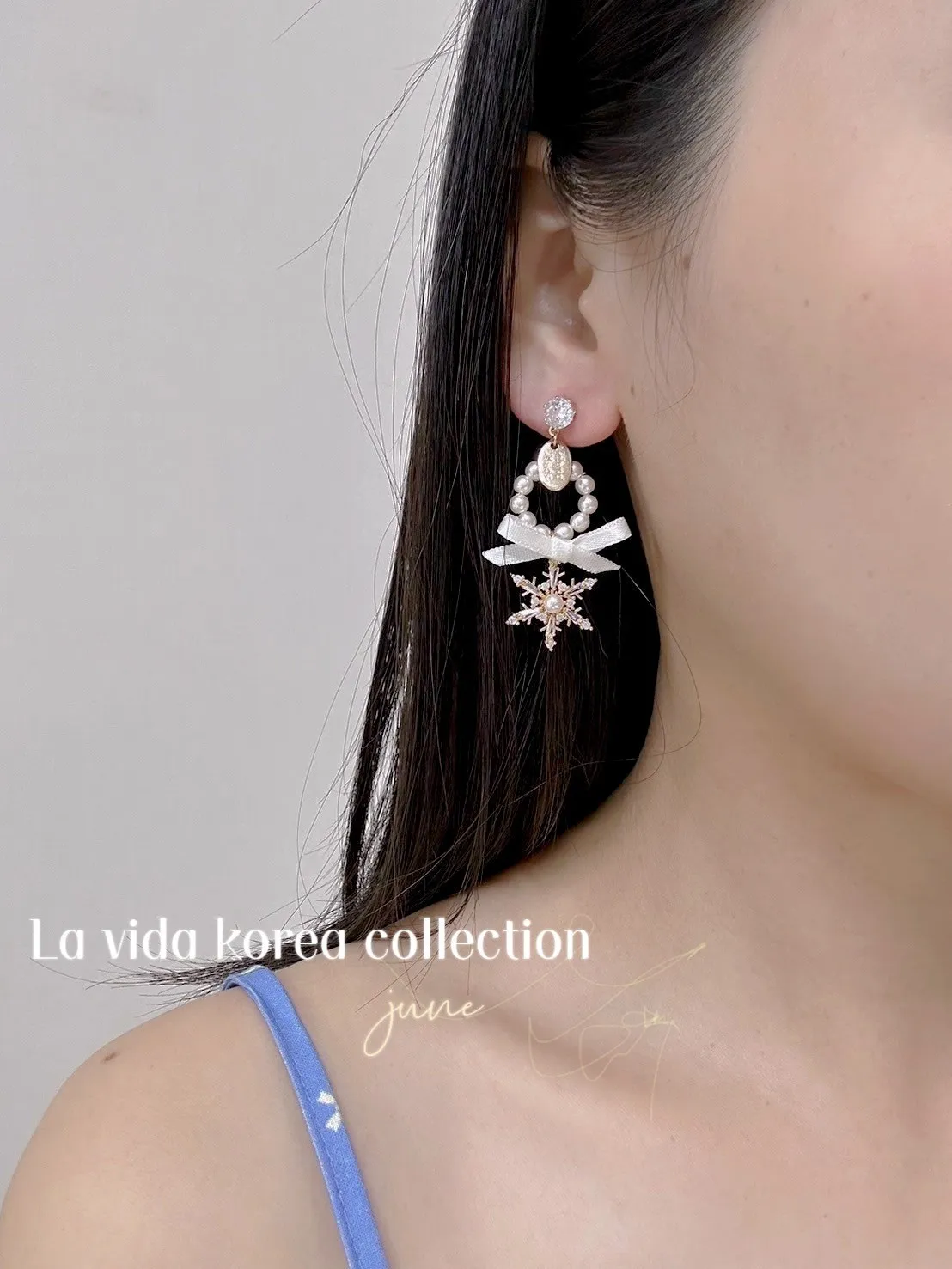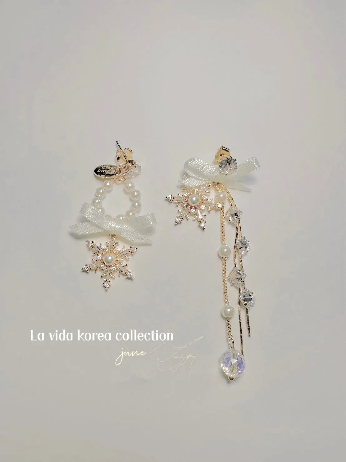 HJ913冰晶雪花緞帶不對稱耳環 耳針 耳夾(螺) 官網價$360 線上價$340