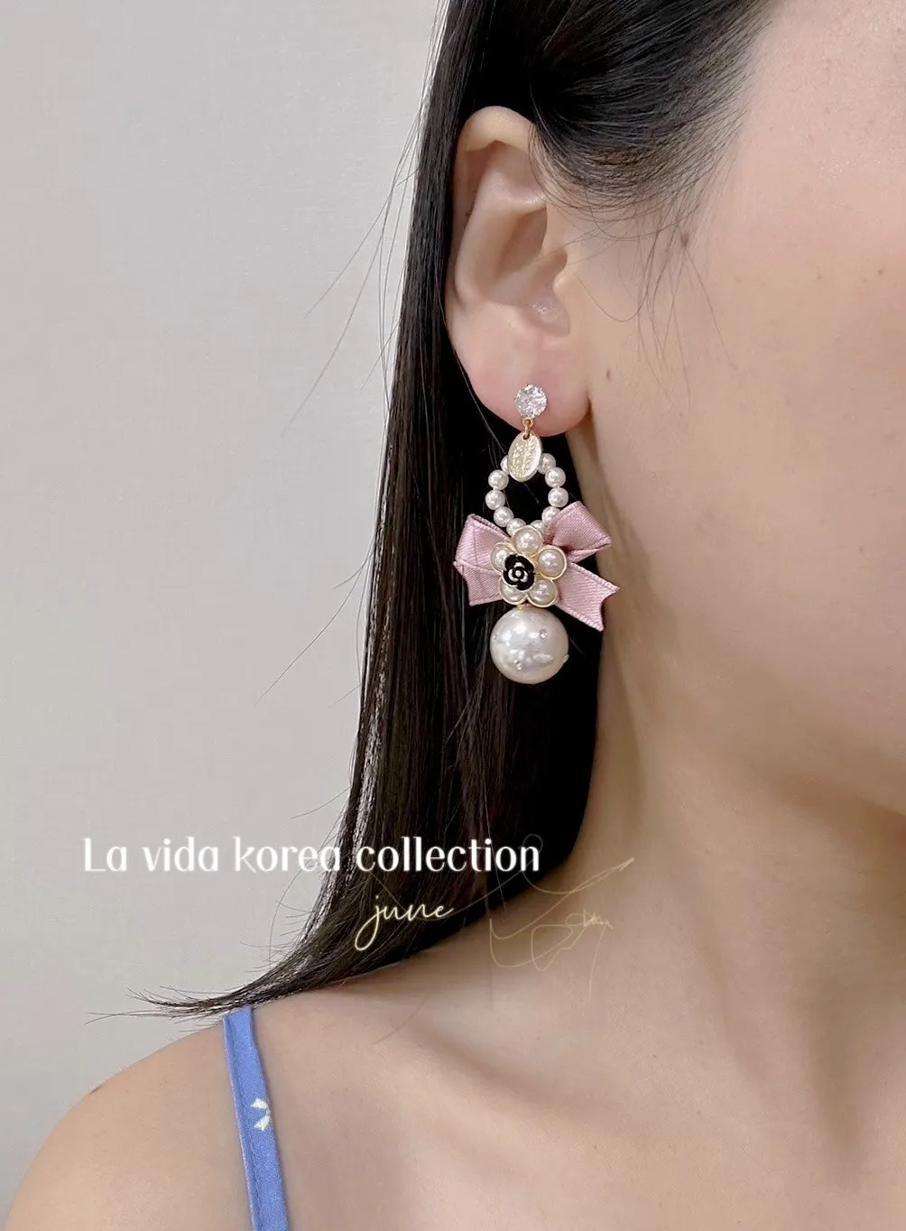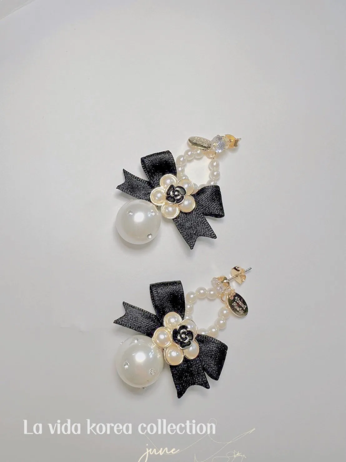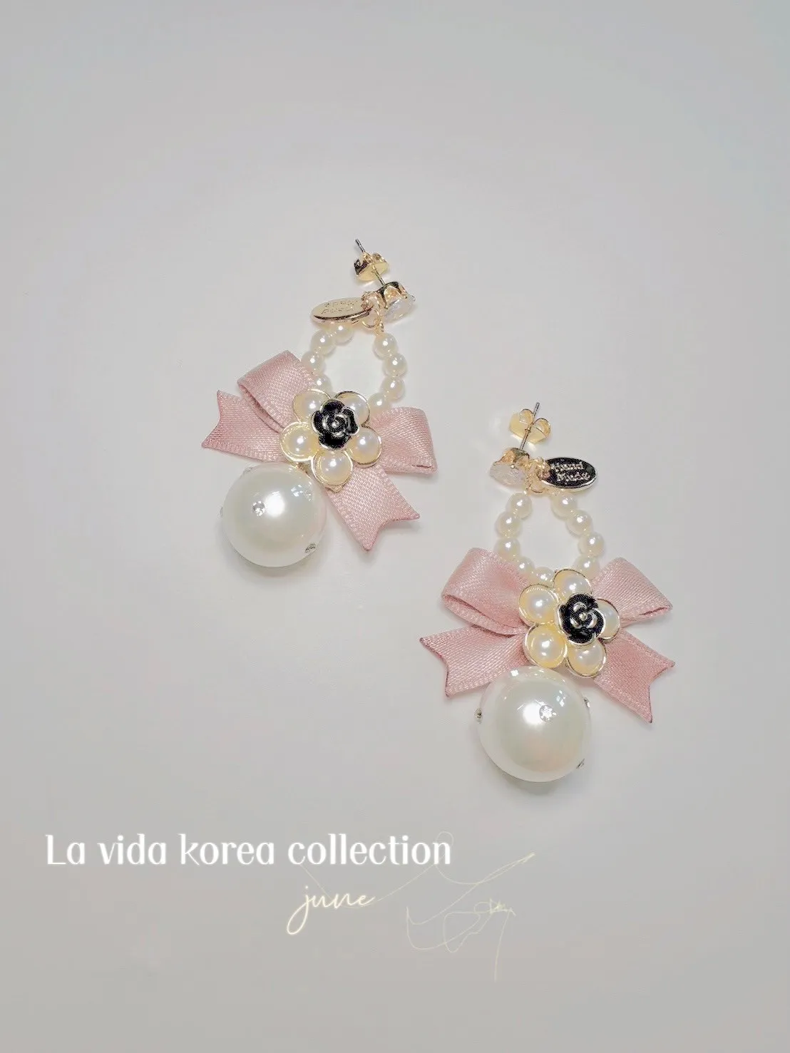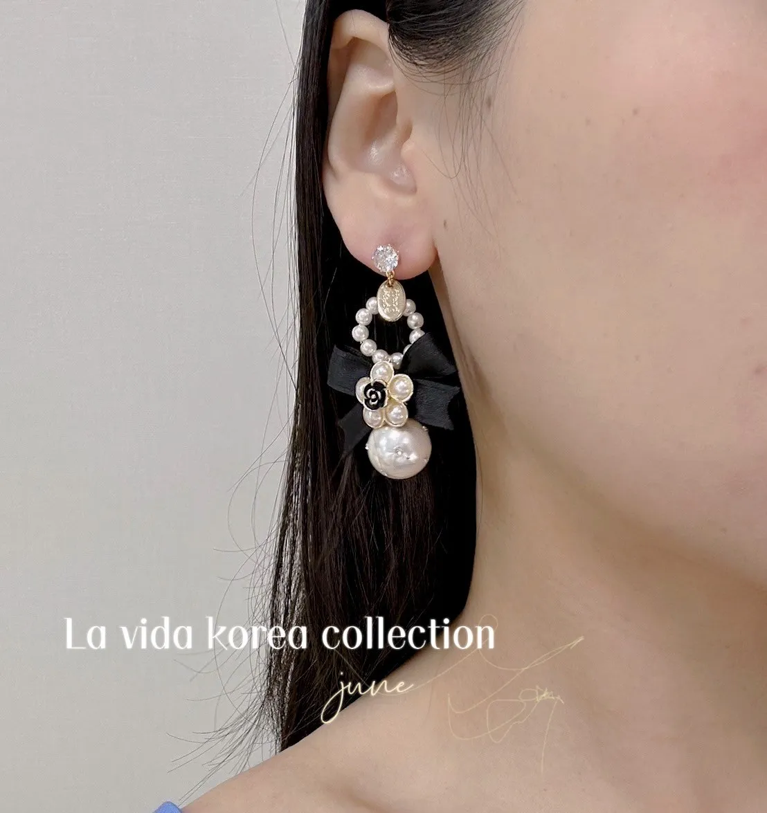 HJ920高級黑蕊小花珍珠耳環 粉 黑 耳針 耳夾(螺) 官網價$330 線上價$310