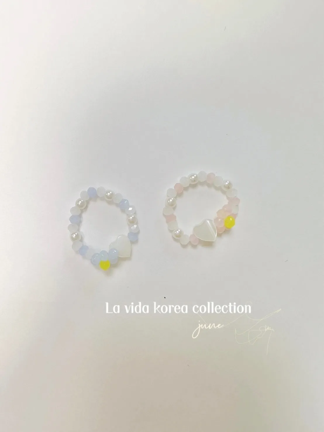 HJ928夏日繽紛貝殼愛心小花彈性繩戒指 粉 藍 官網價$170 線上價$150