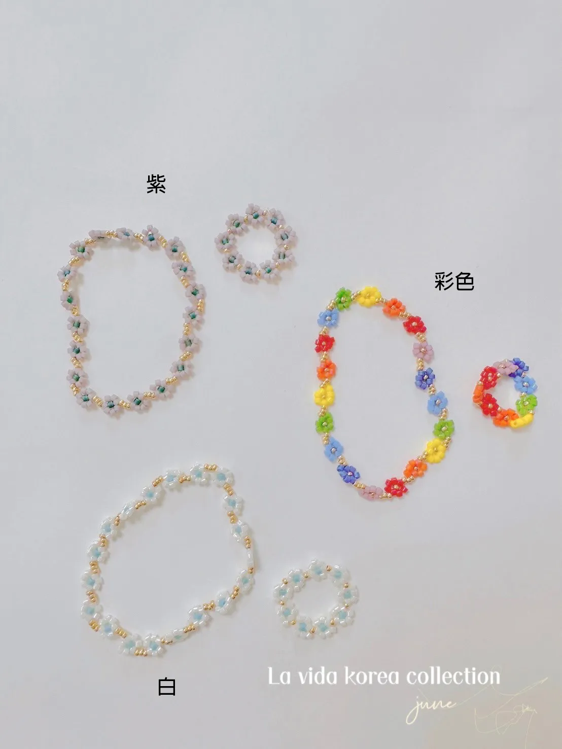 HJ930細緻金珠小花手鍊 白 紫 彩色 官網價$280 線上價$270