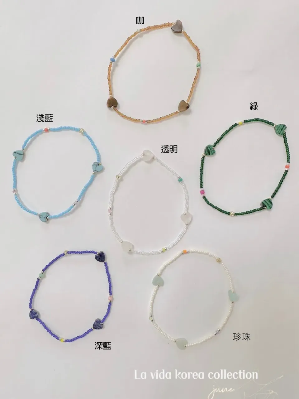 HJ936土耳其美石愛心金珠手鍊 綠 咖 淺藍 深藍 珍珠 透明 官網價$240 線上價$220