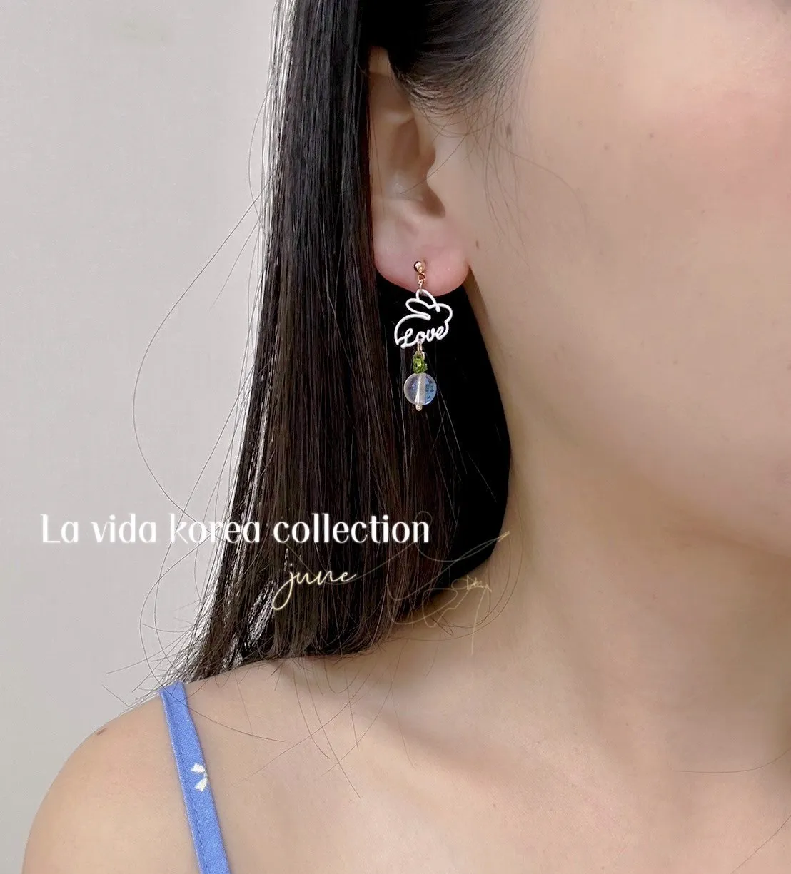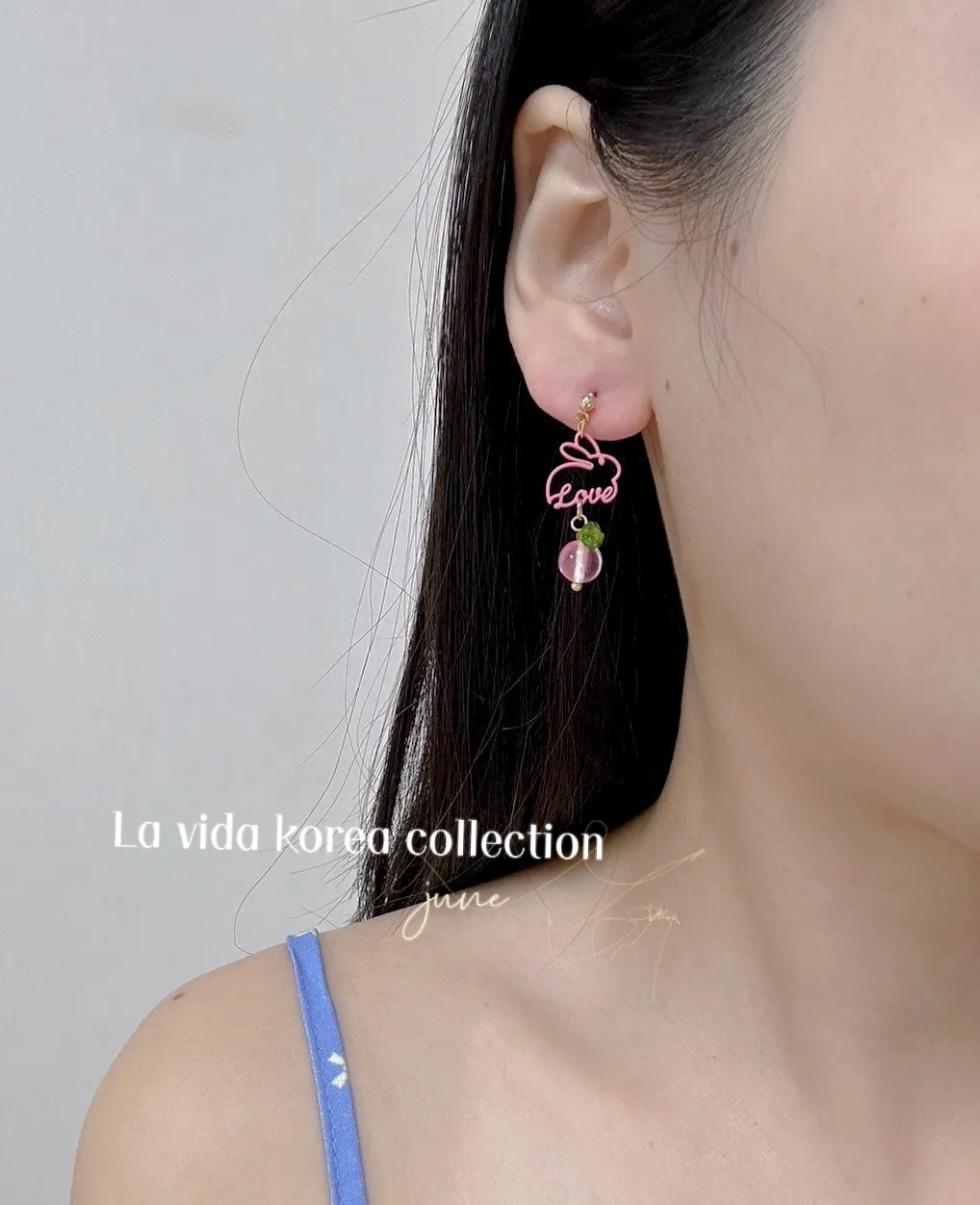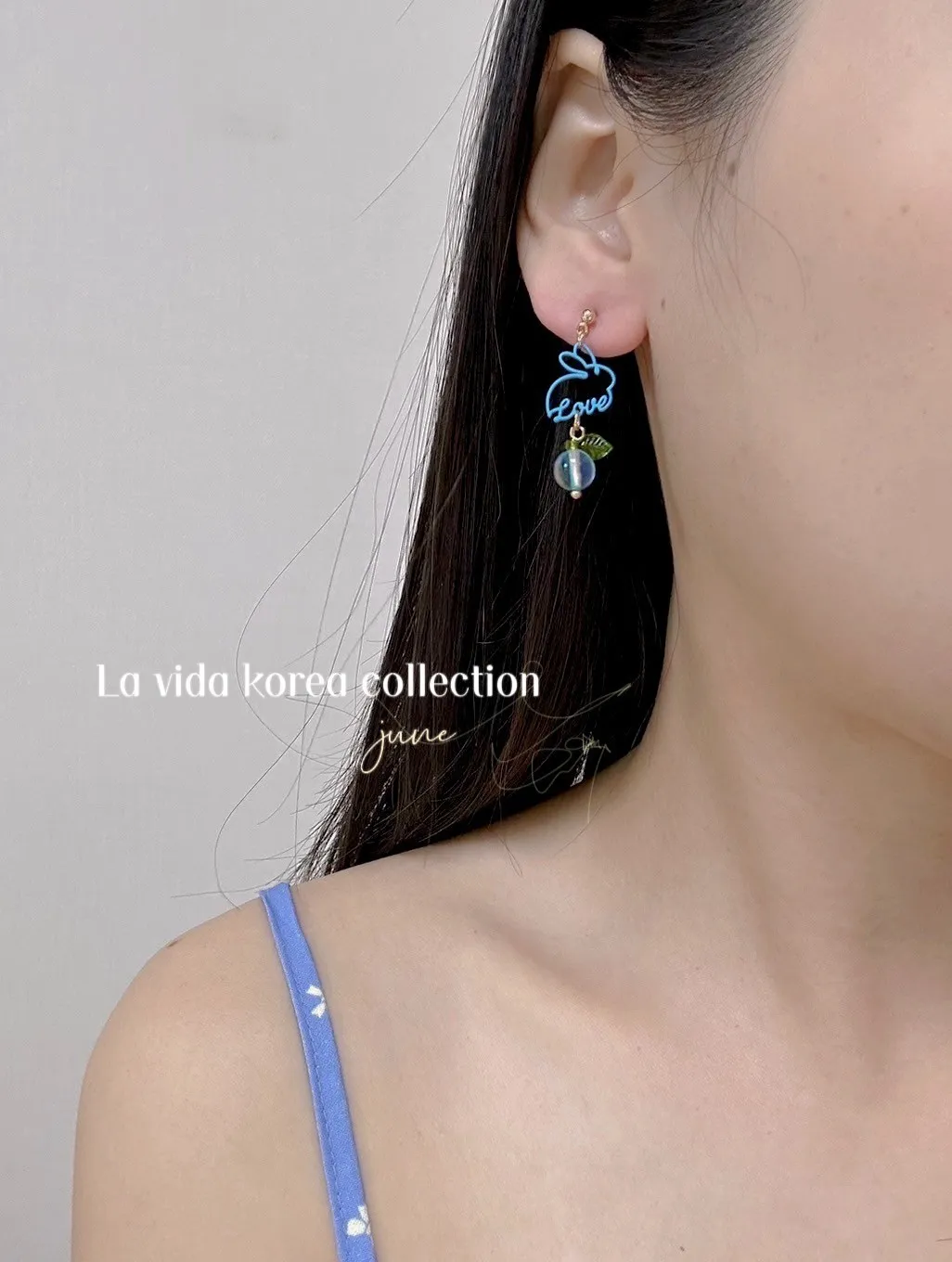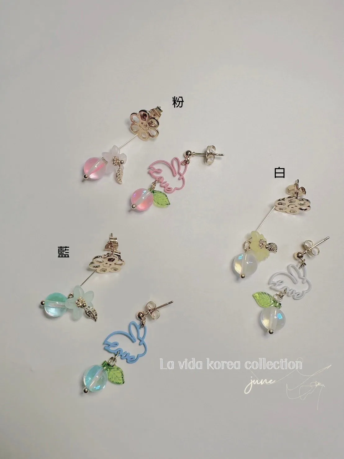 HJ943可愛小兔兔耳環 白 粉 藍 耳針 耳夾(矽) 官網價$240 線上價$220