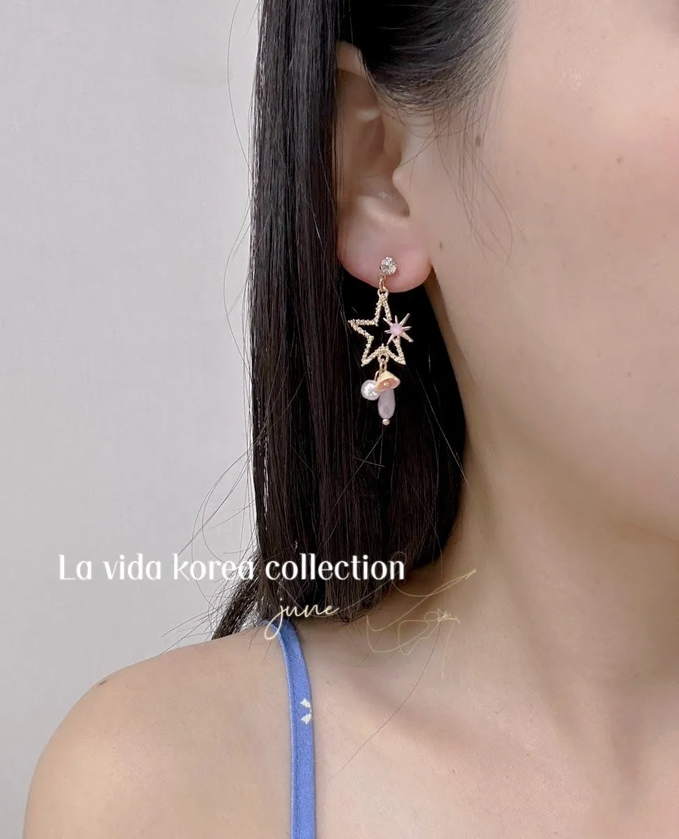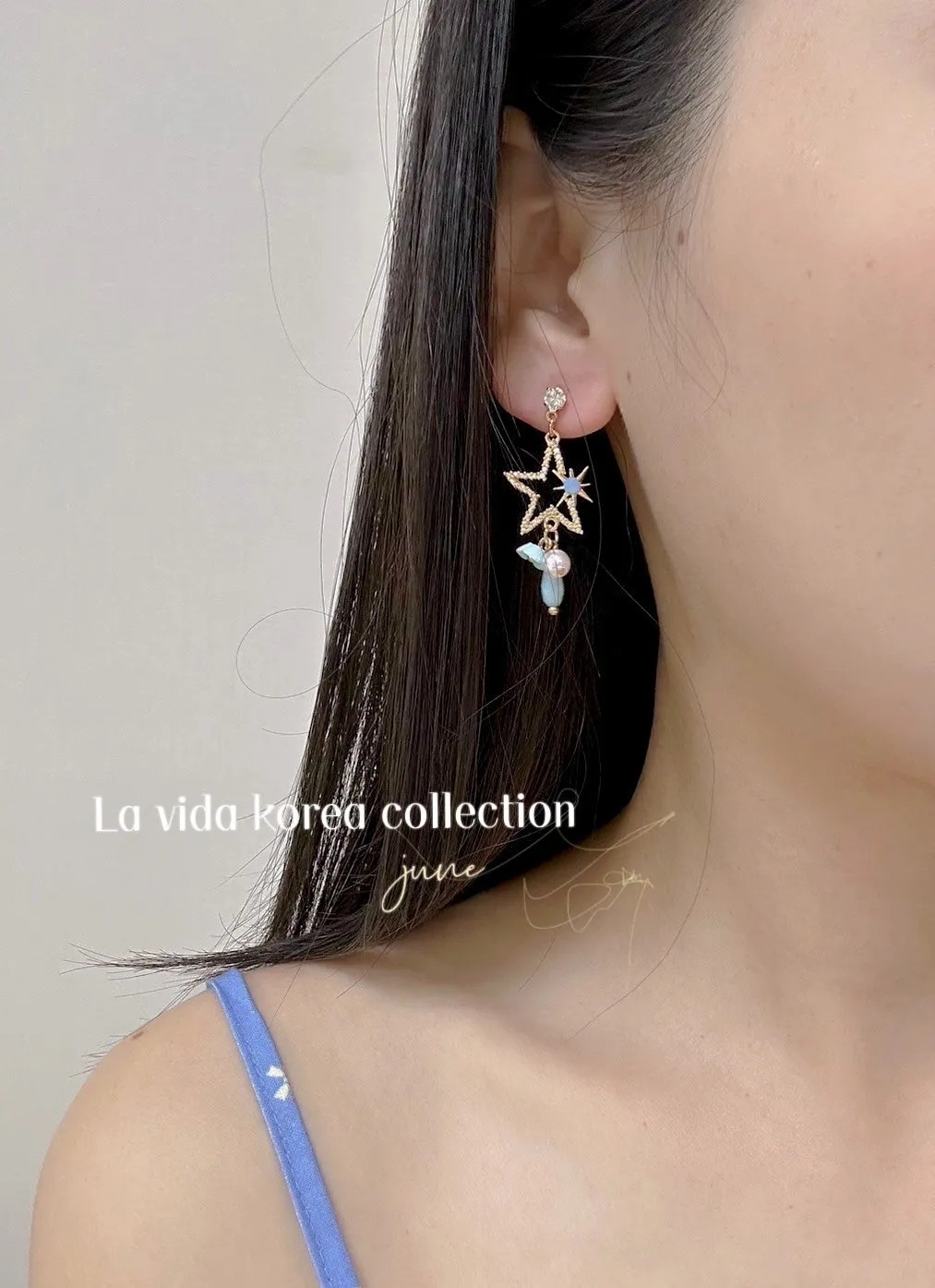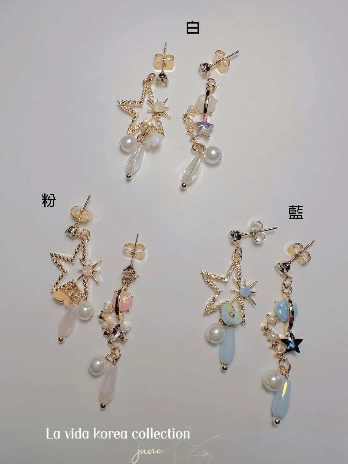 HJ944星星小宇宙耳環 白 粉 藍 耳針 耳夾(矽) 官網價$250 線上價$230