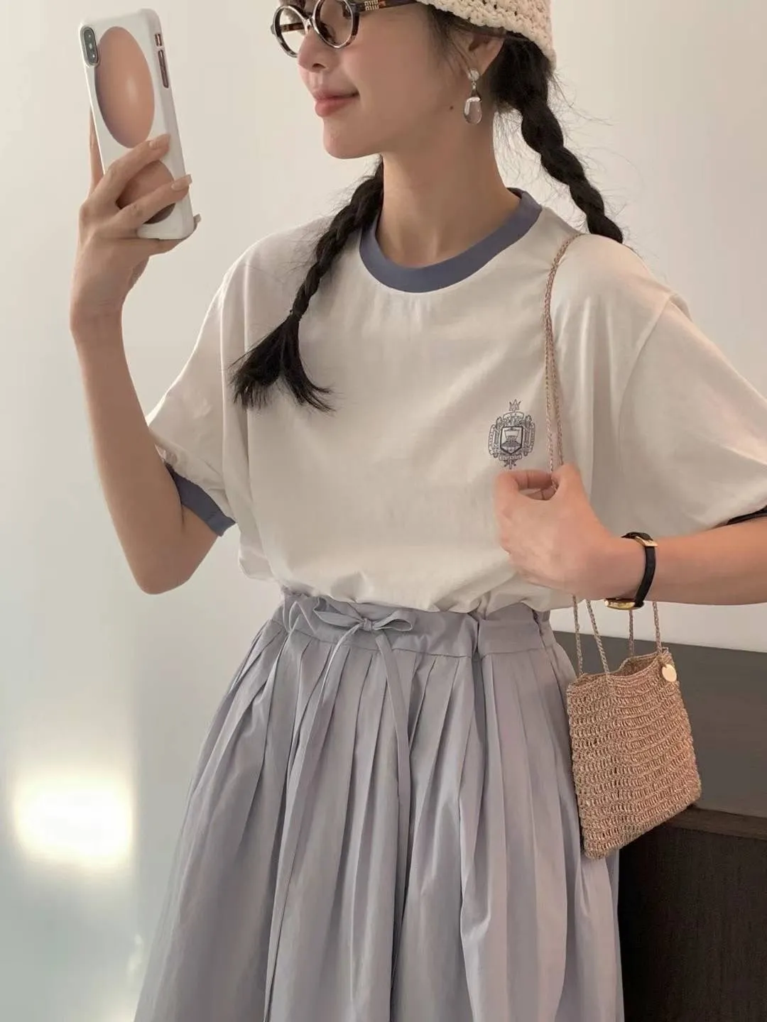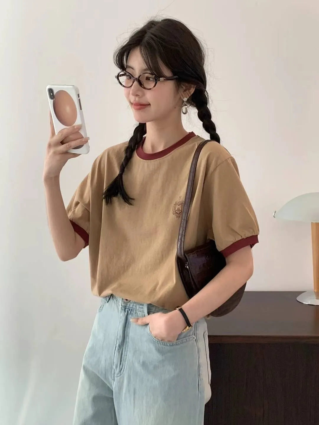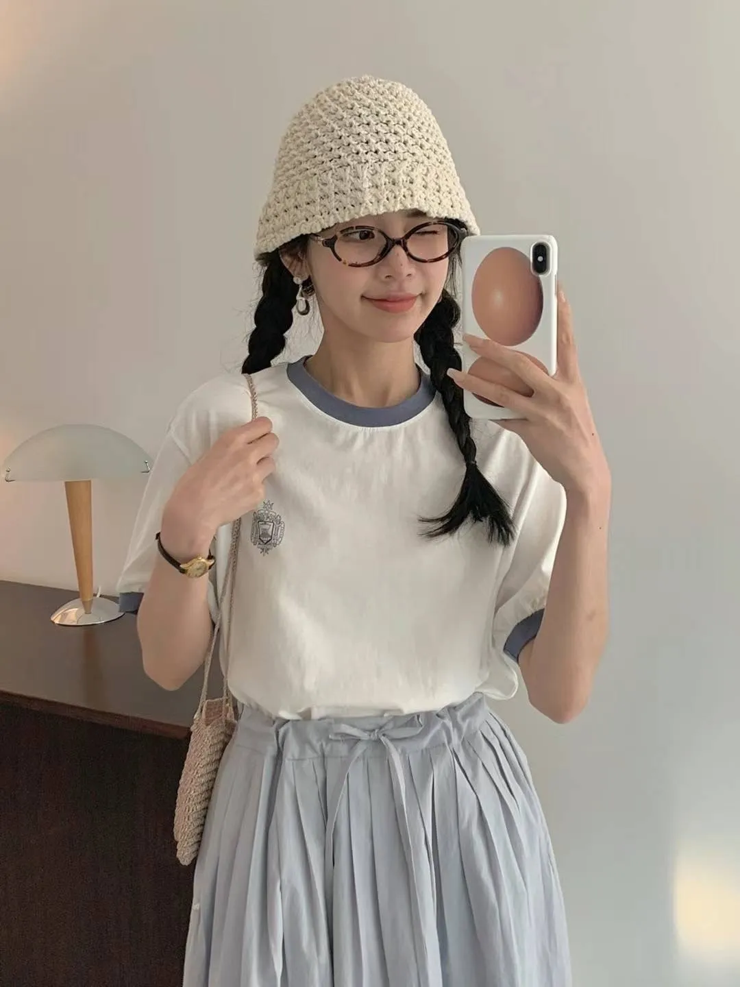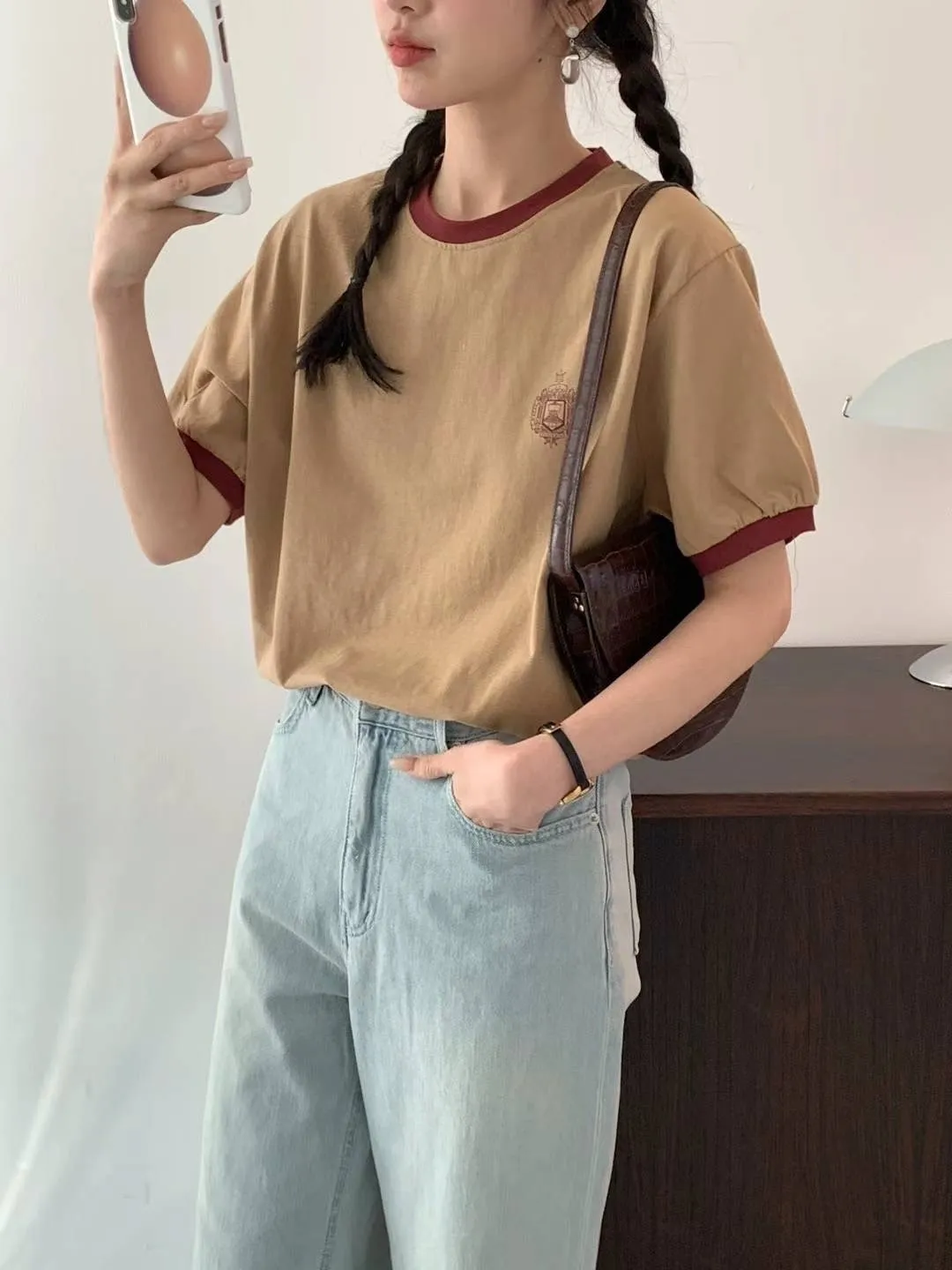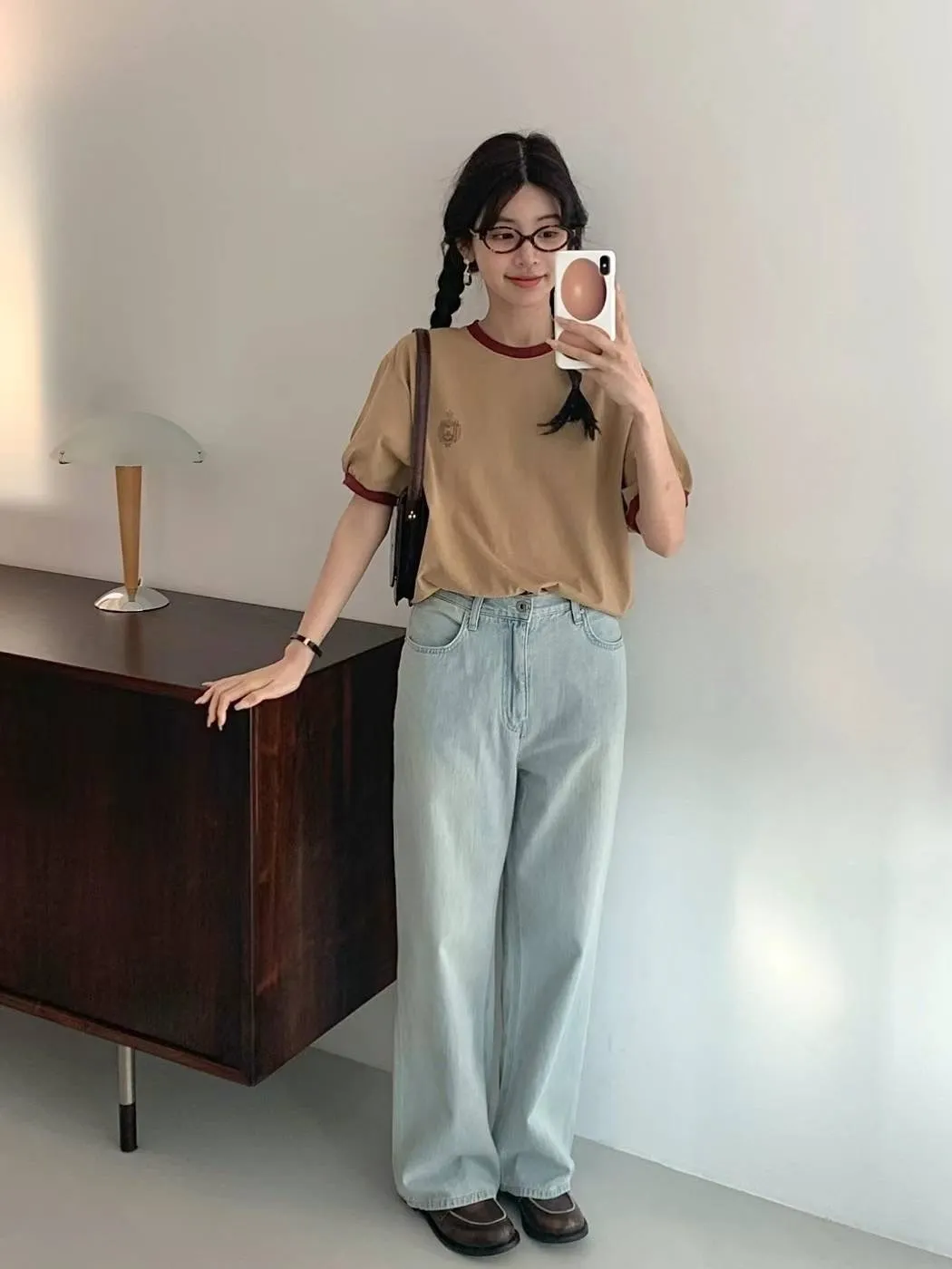 HJ956薄款滾邊Tshirt 白 奶茶 官網價$829 線上價$799