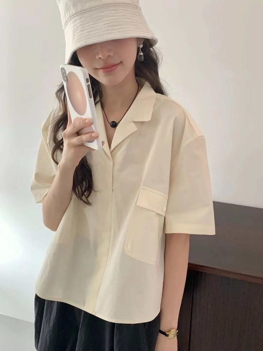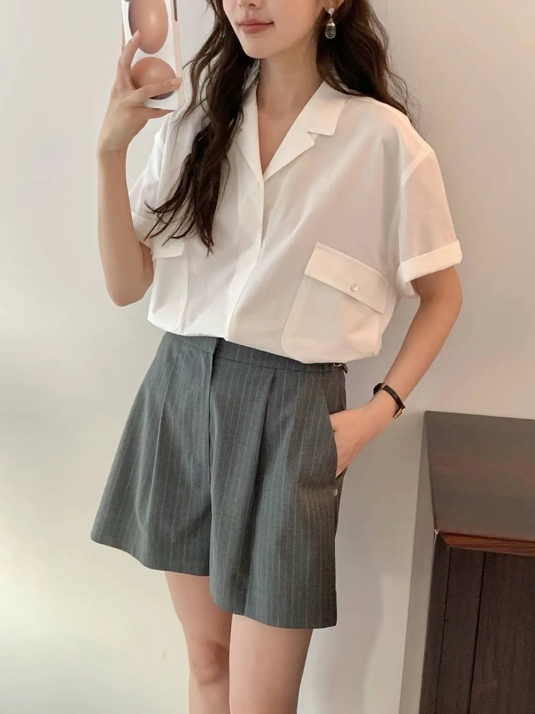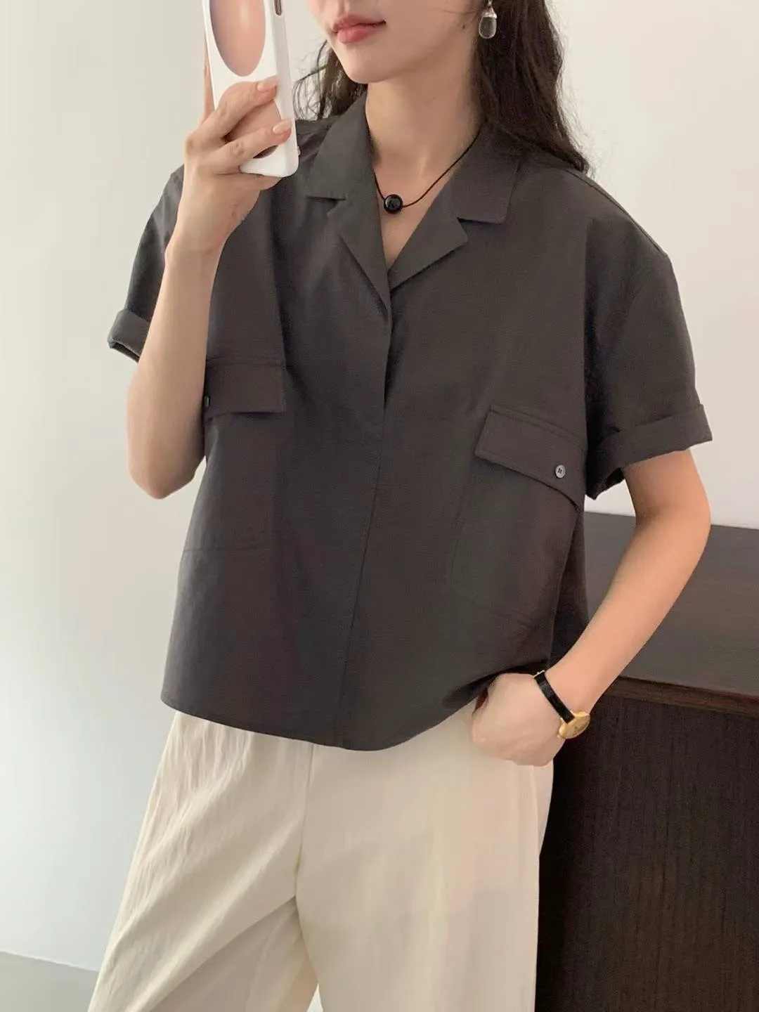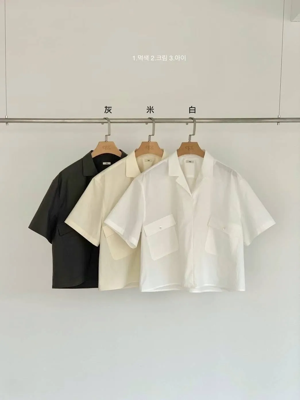 HJ969雙口袋短袖襯衫 白 米 灰 官網價$1410 線上價$1380
