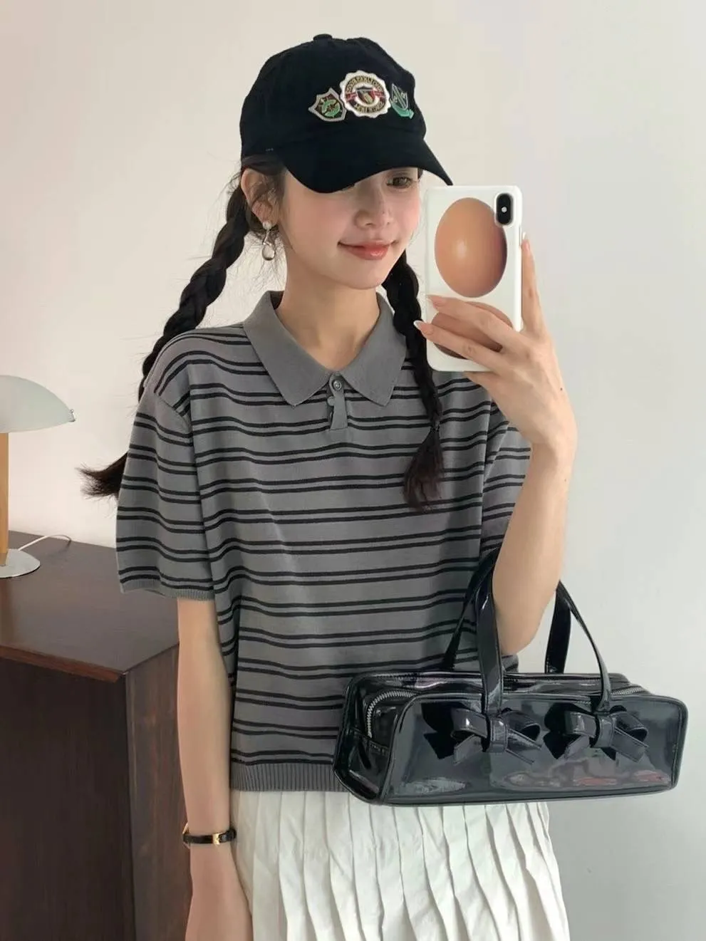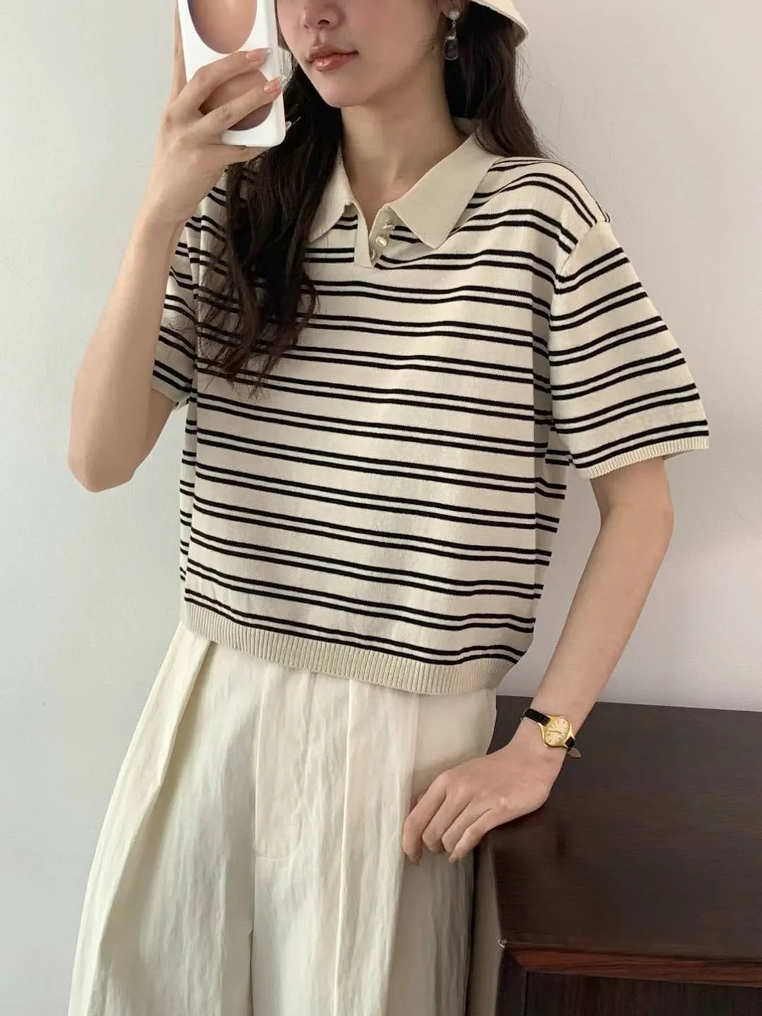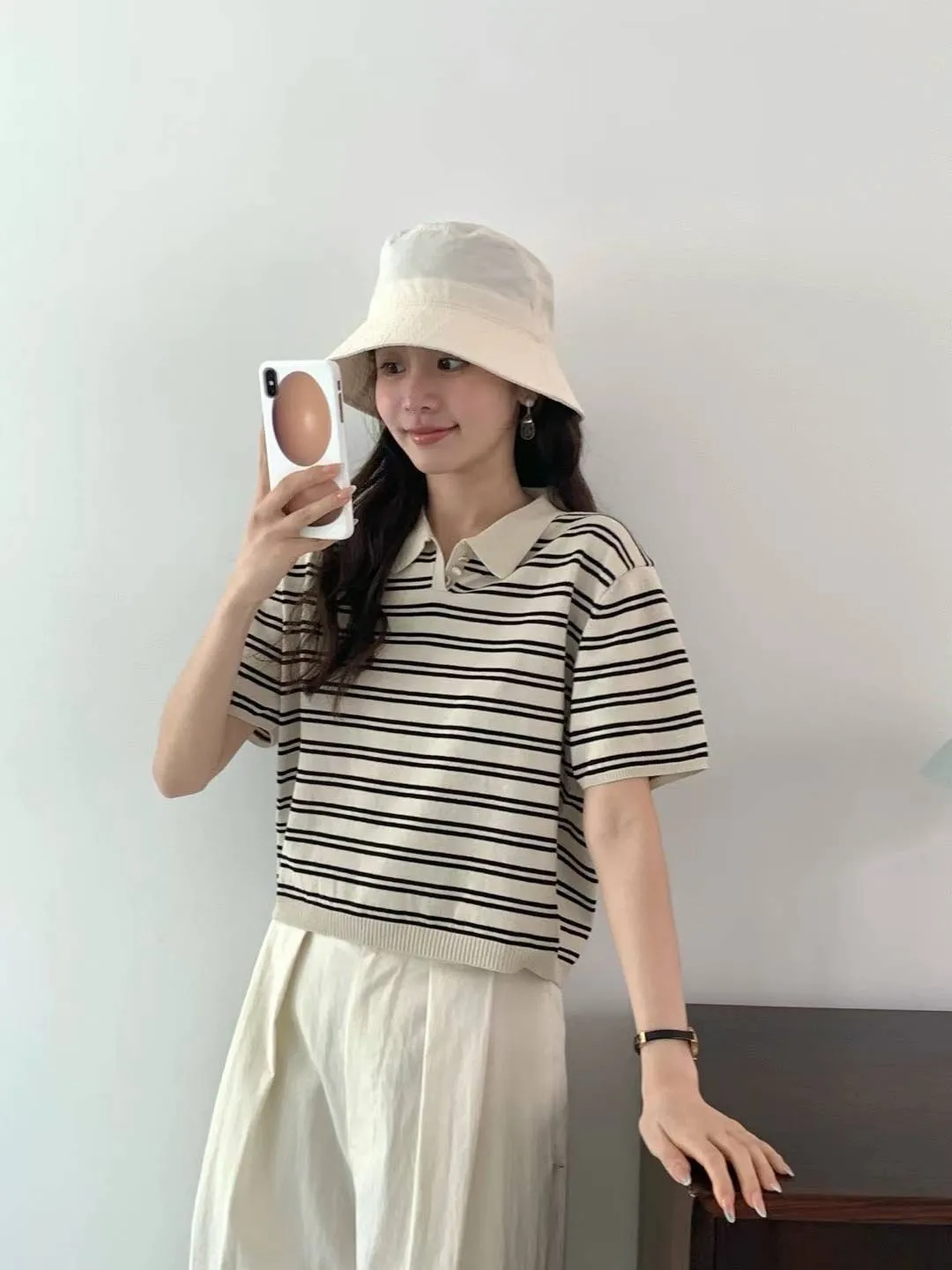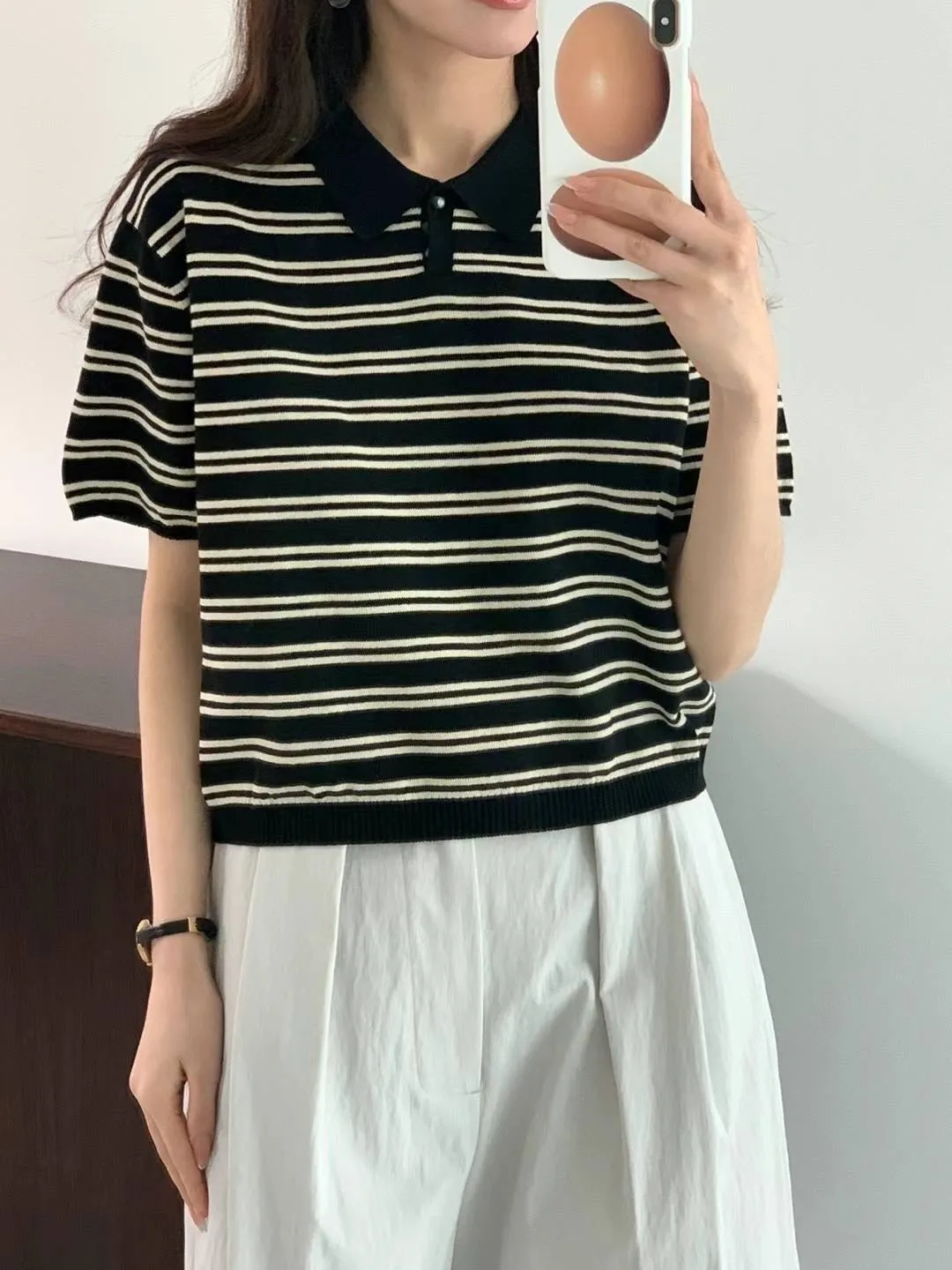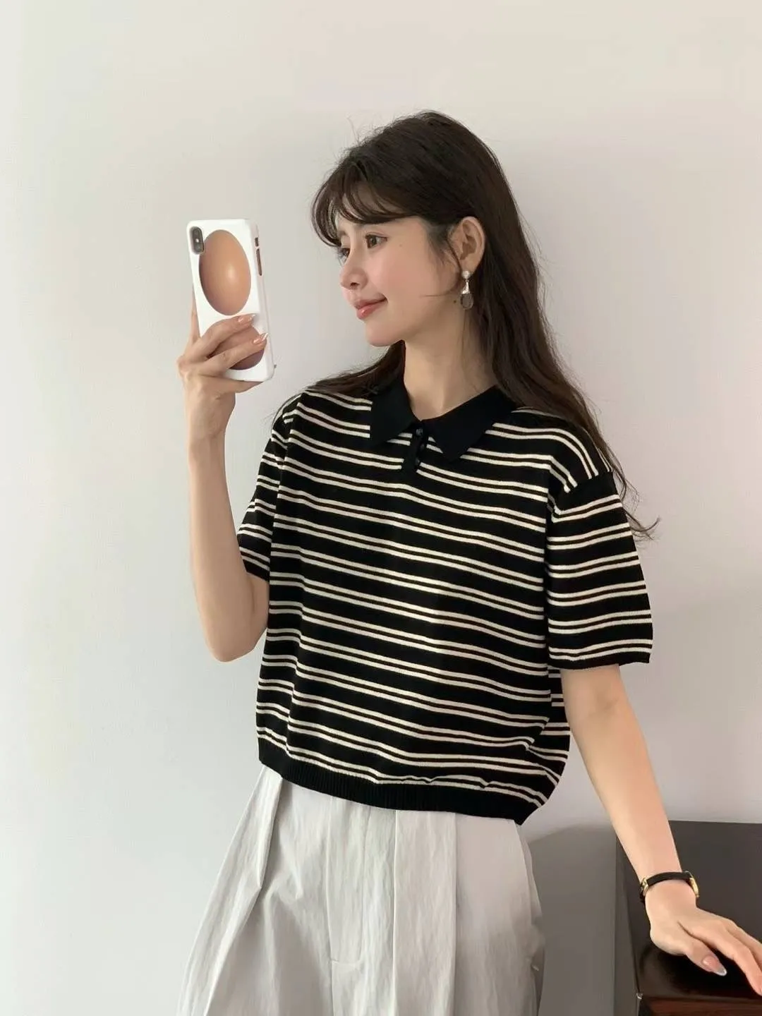 HJ970薄款條紋POLO衫(底色分色) 米 灰 綠 黑 官網價$1590 線上價$1560