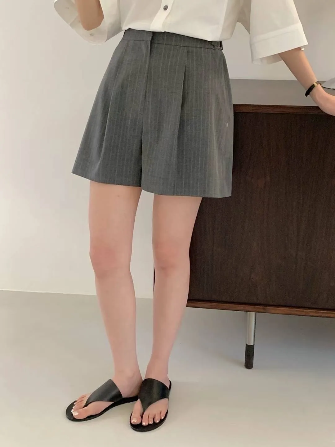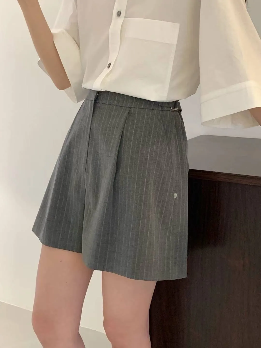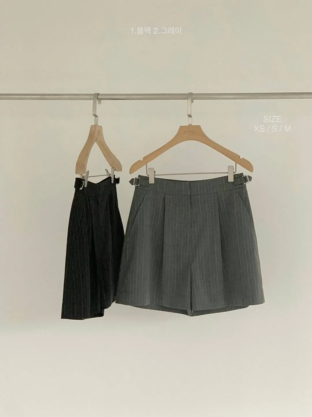 HJ972側腰釦細條紋西裝短褲 灰 黑 S M官網價$1360 線上價$1330