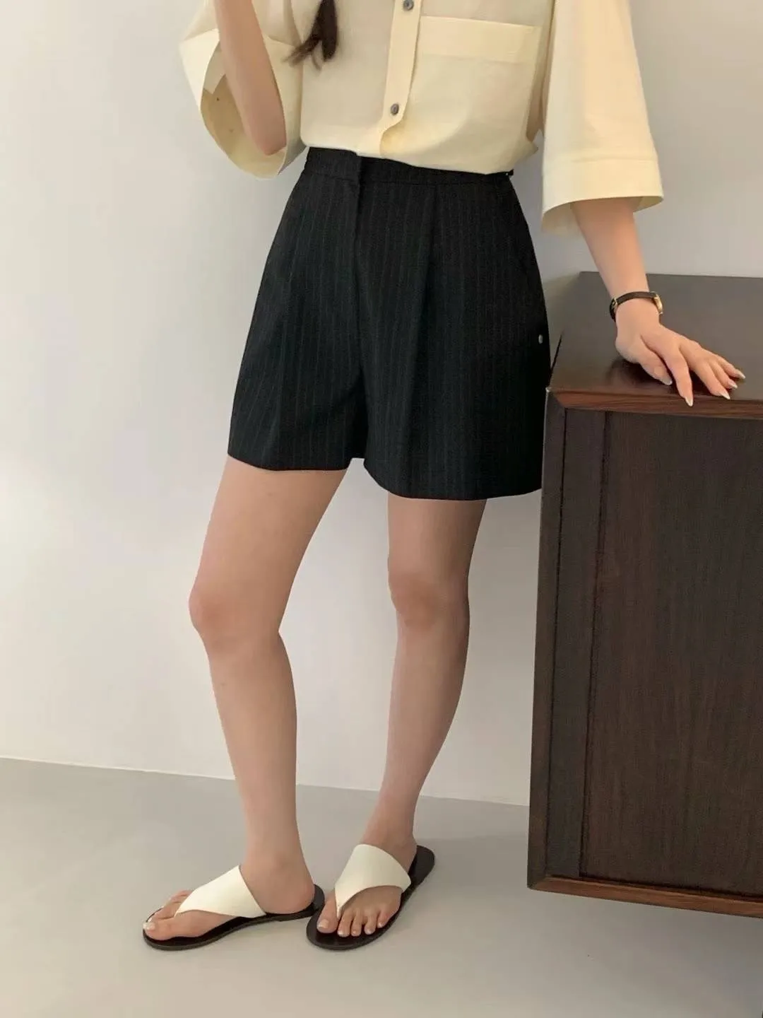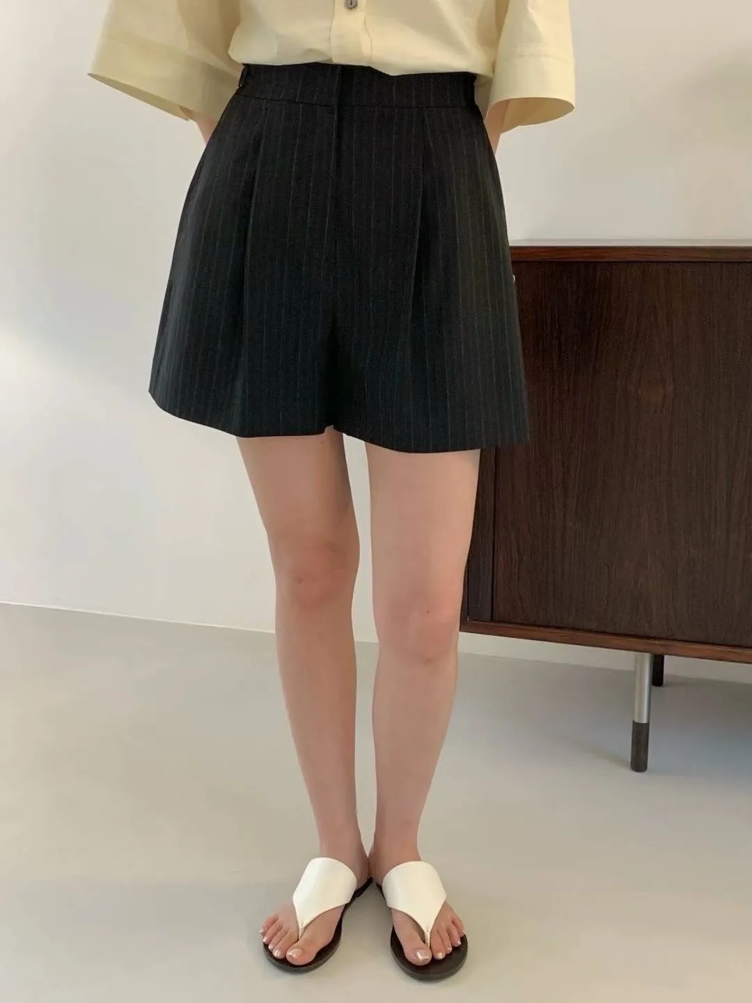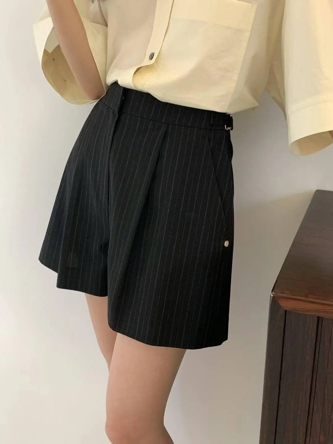HJ972側腰釦細條紋西裝短褲 灰 黑 S M官網價$1360 線上價$1330