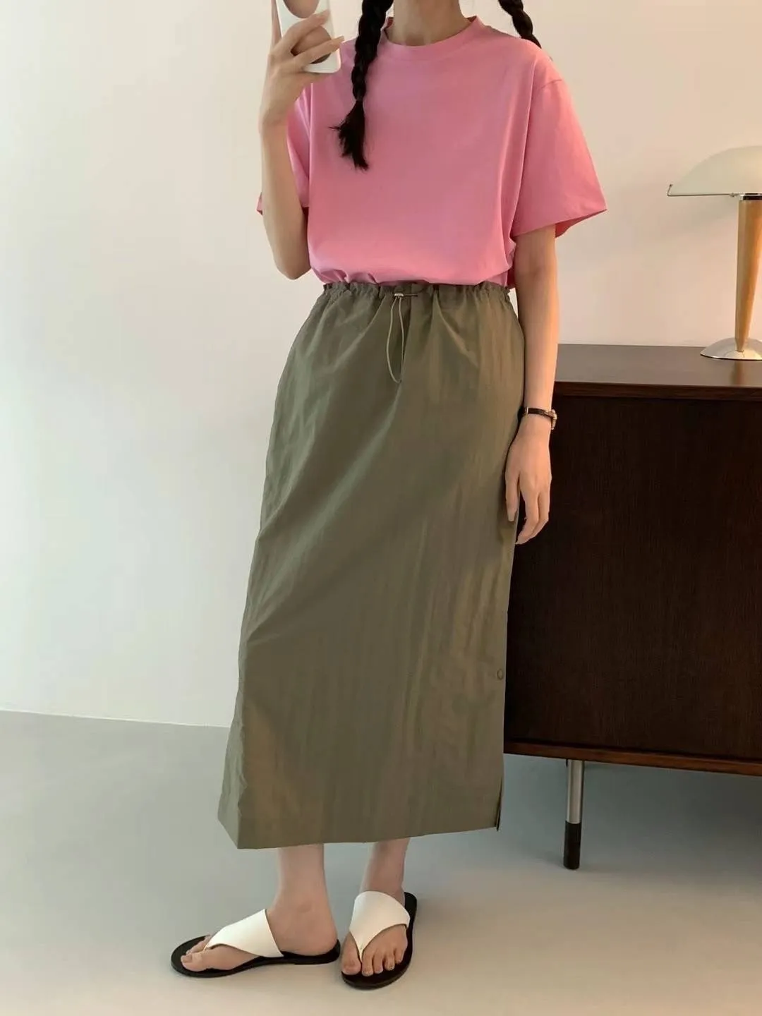 HJ976輕盈薄款尼龍裙 米 綠 奶茶 官網價$1629 線上價$1599