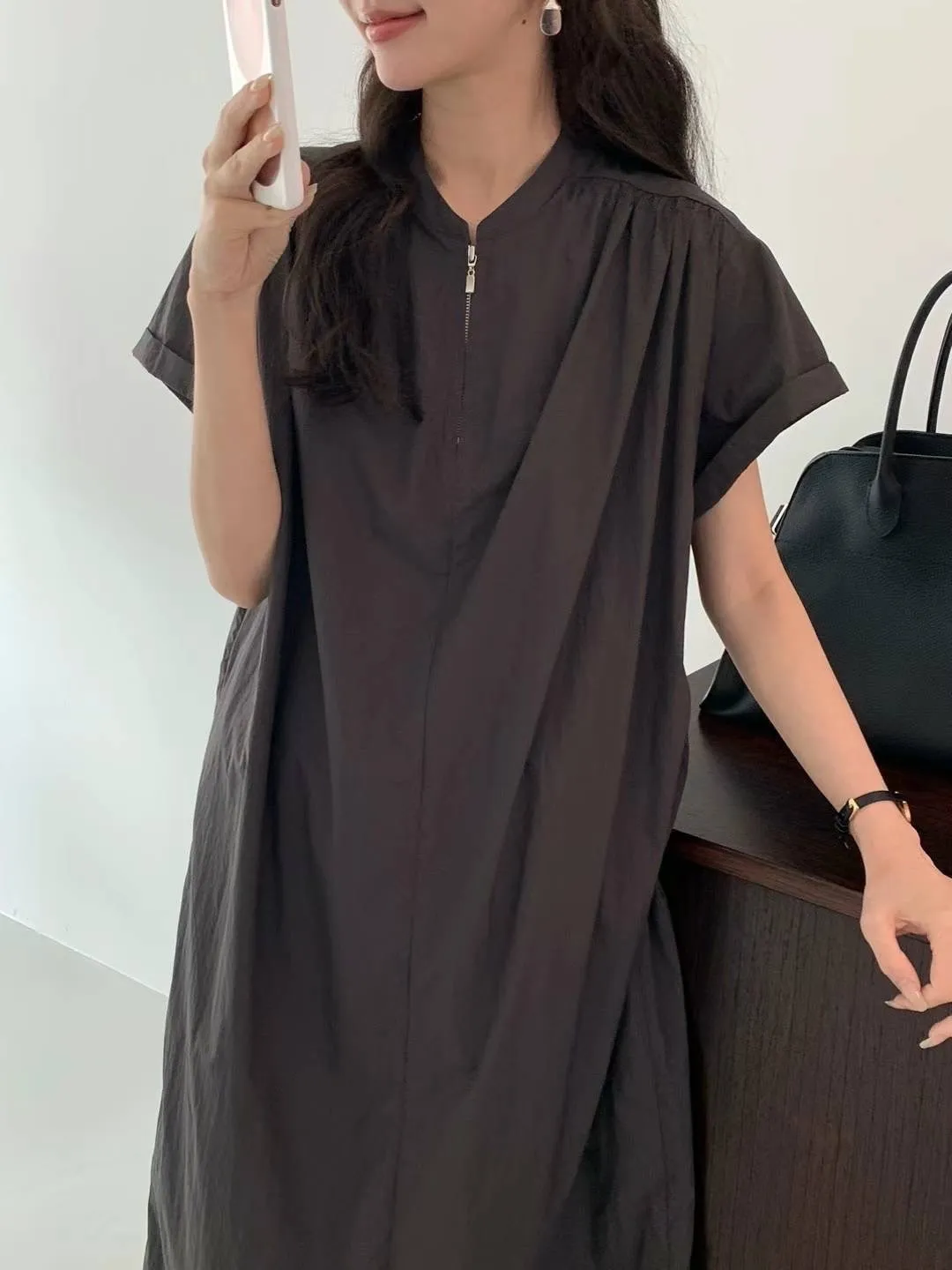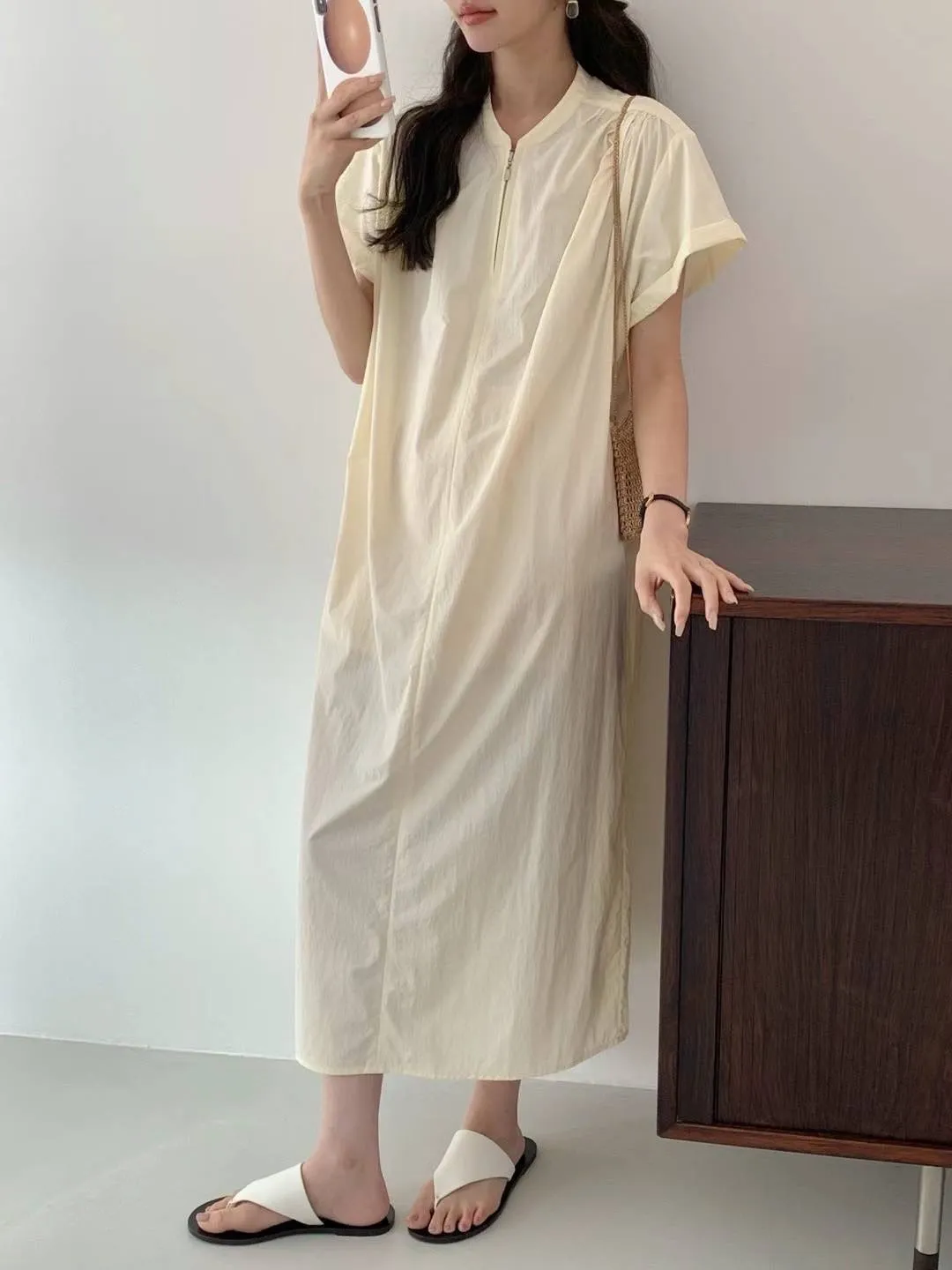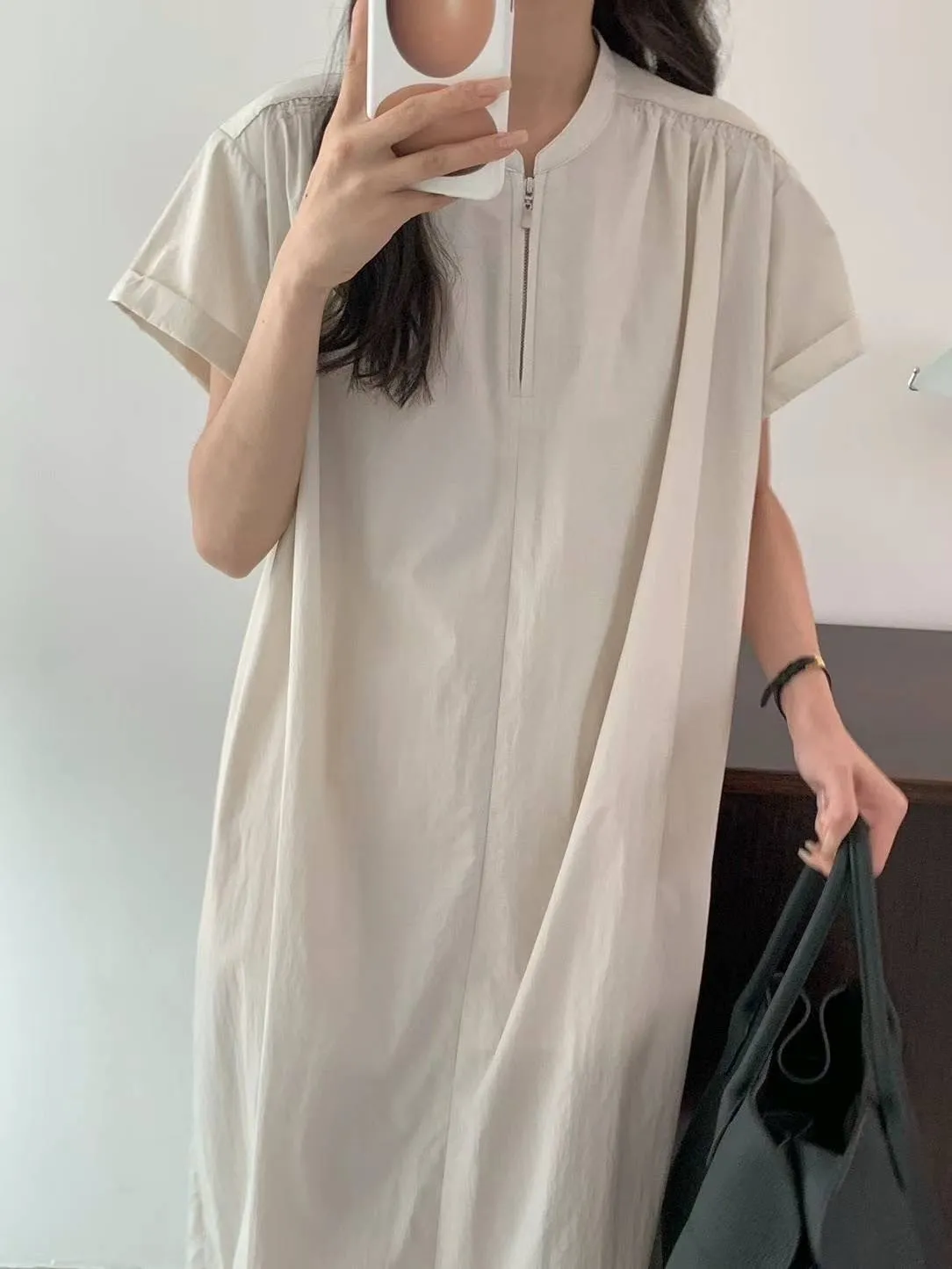 HJ978薄薄款輕盈拉鍊涼感洋裝 米 黃 灰 官網價$2310 線上價$2280