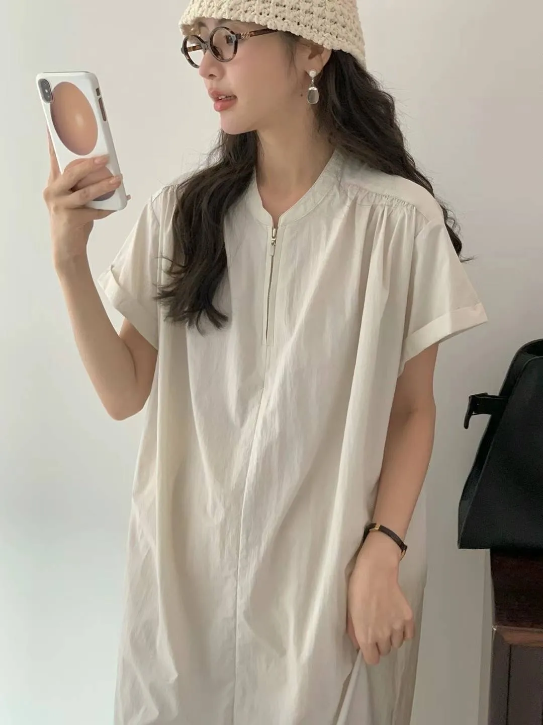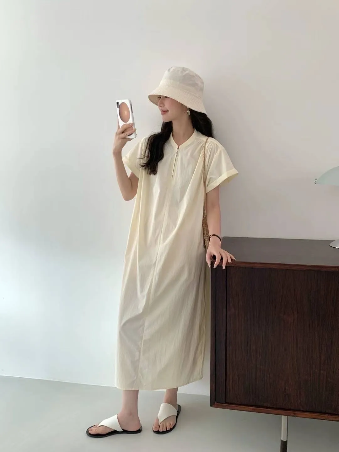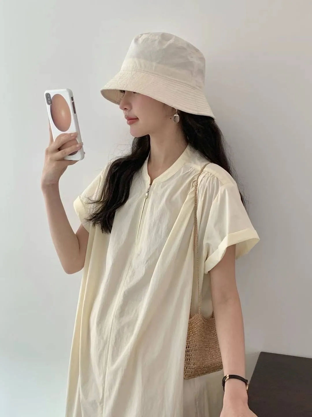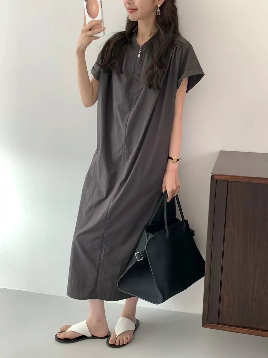 HJ978薄薄款輕盈拉鍊涼感洋裝 米 黃 灰 官網價$2310 線上價$2280