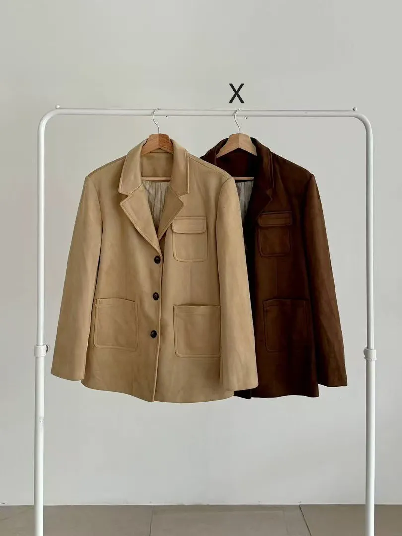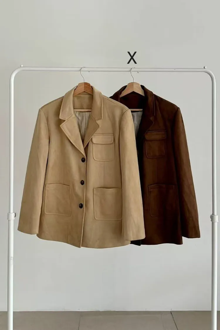 仿麂皮 有內裡 有口袋 輕盈不重 排釦穿脫 微墊肩 有口袋