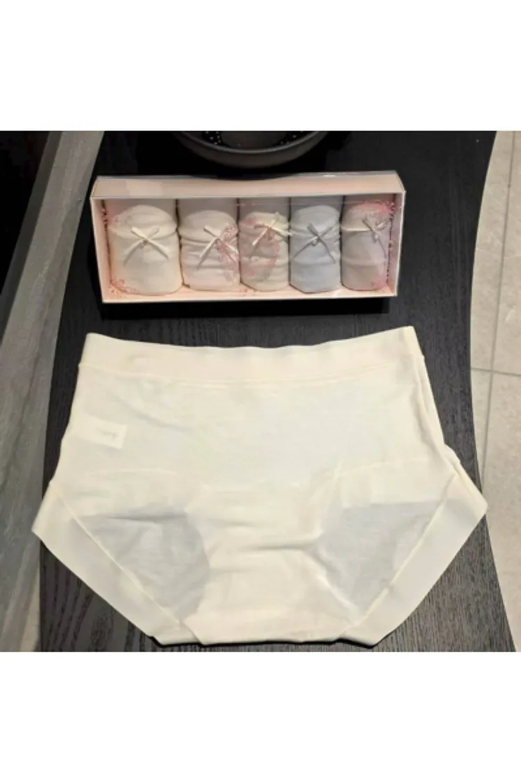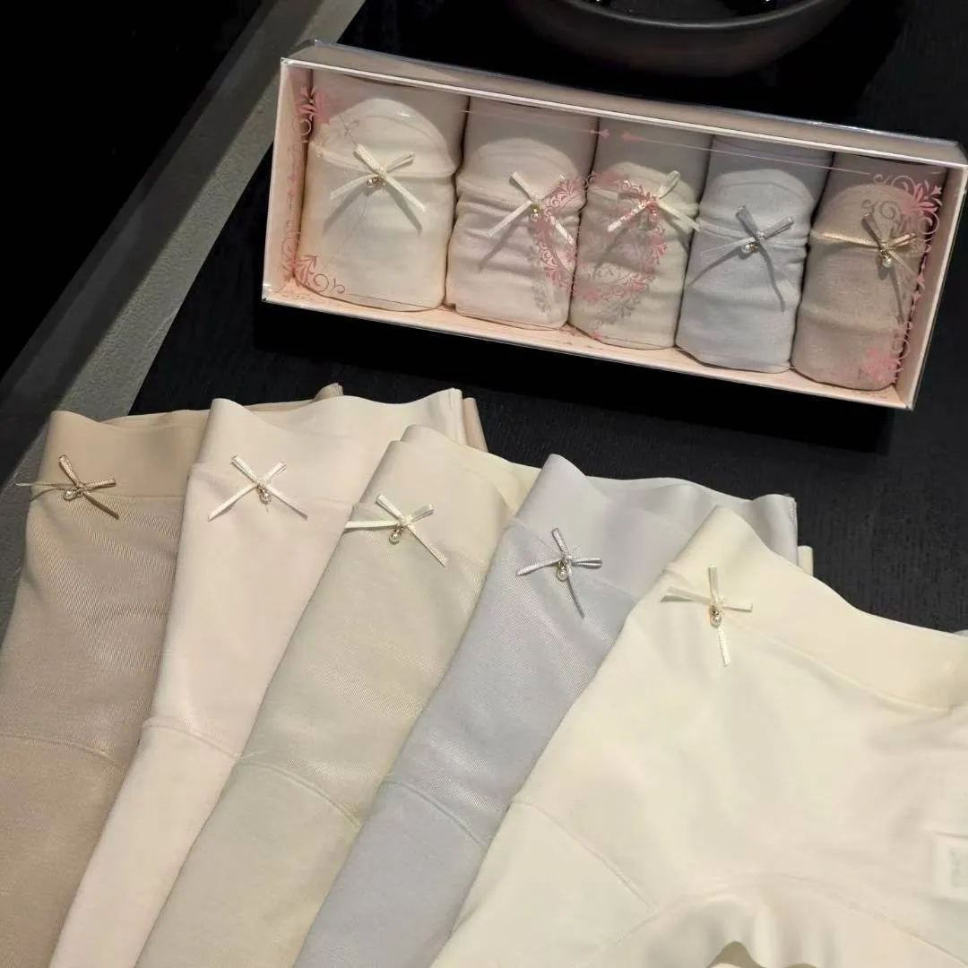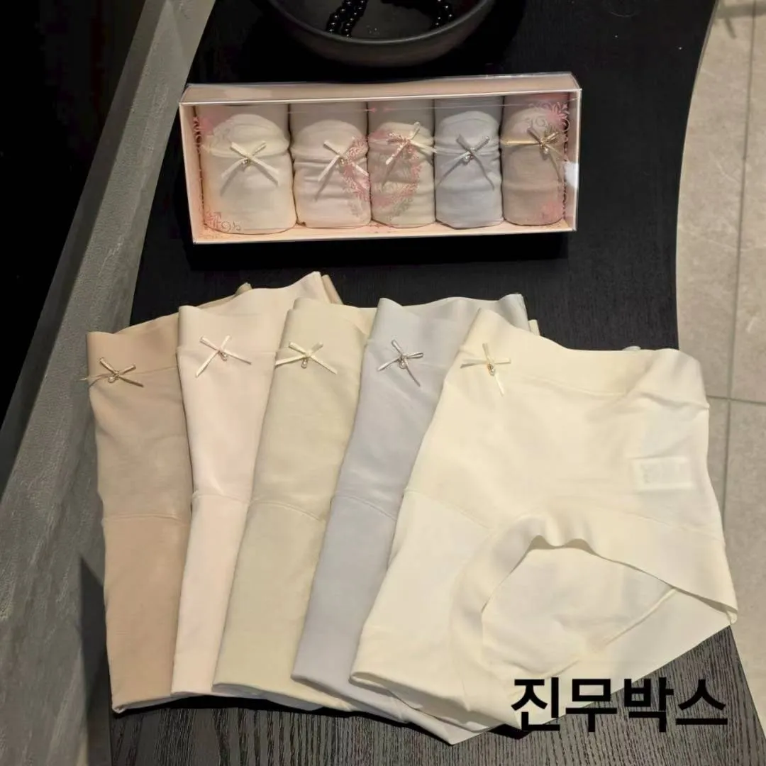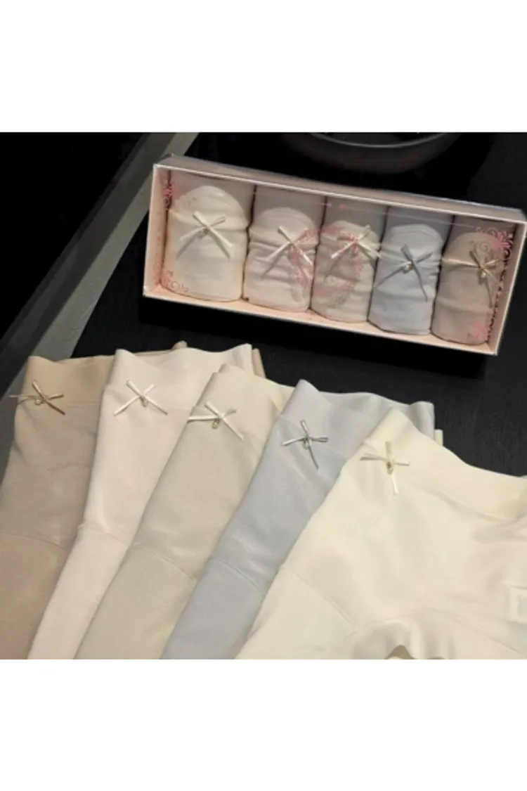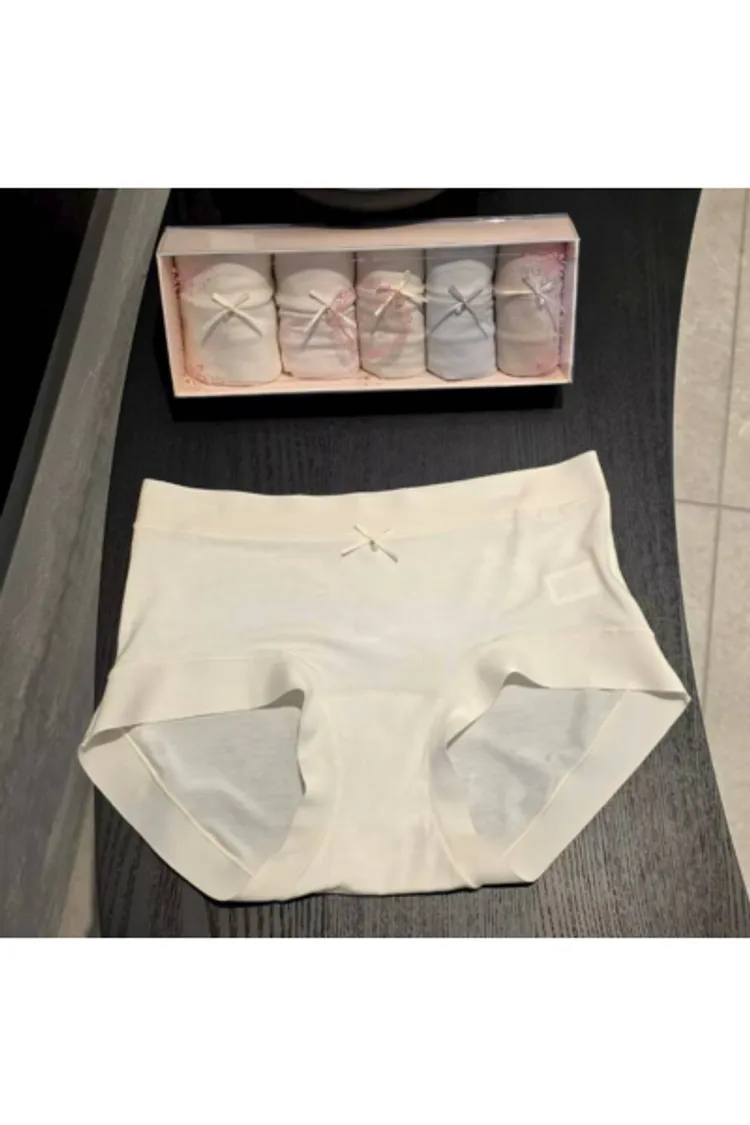 HK106純色珍珠蝴蝶結內褲禮盒(五件組)