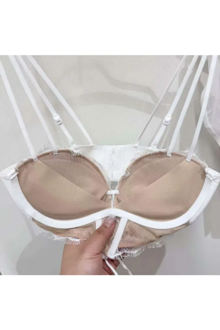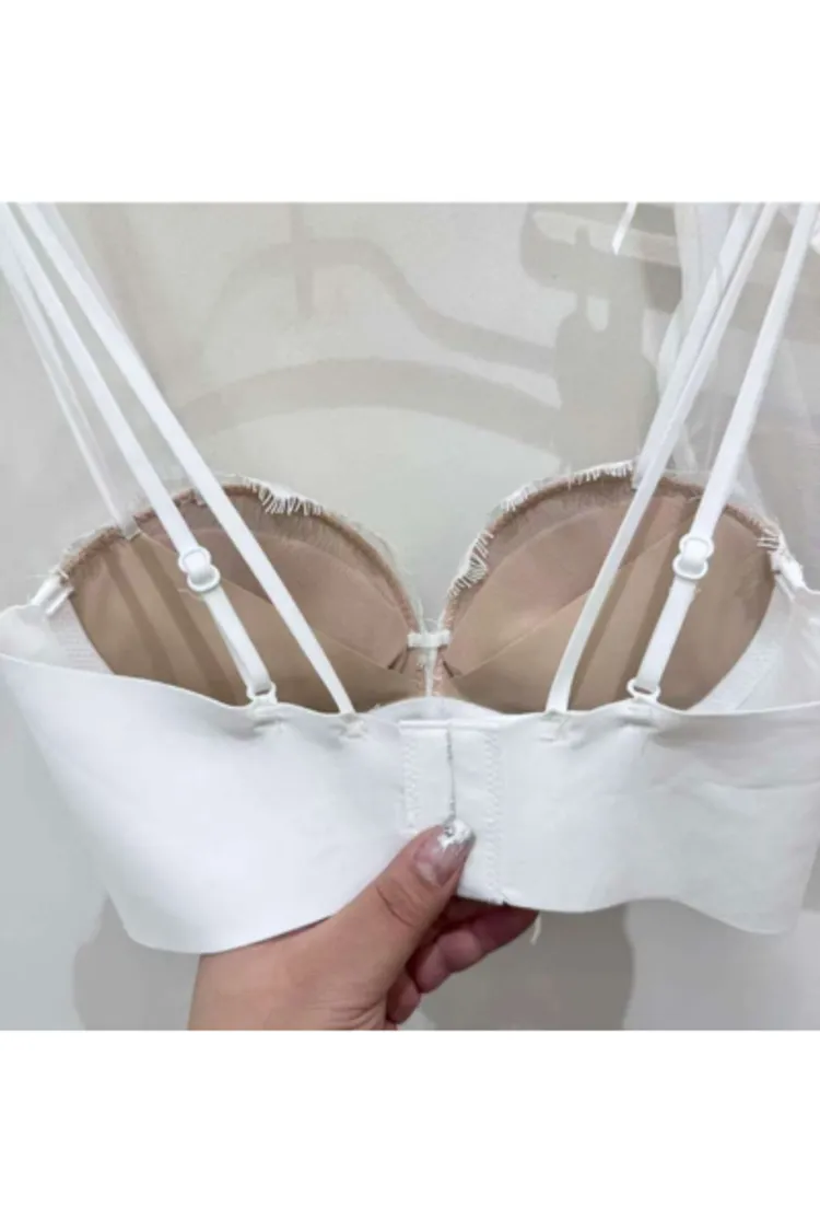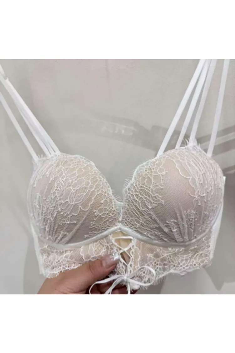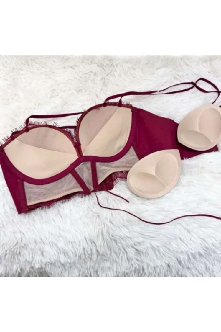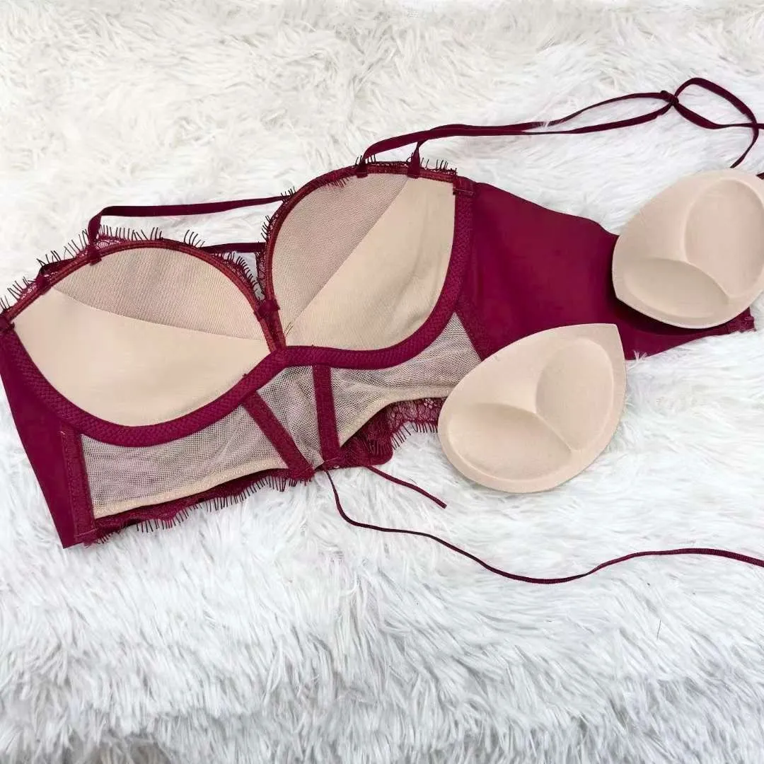 無鋼圈 睫毛蕾絲 水餃墊可拆 厚度約2公分 下胸圍可綁調 雙線性感肩帶