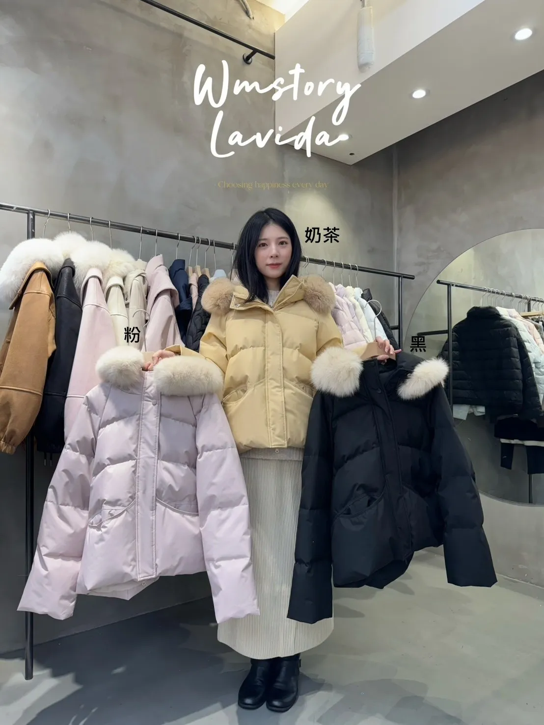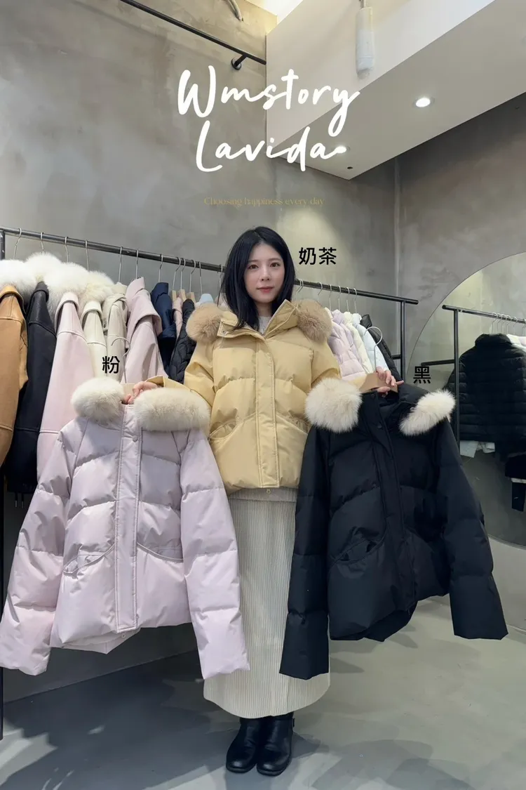 鵝絨100%+狐狸毛 毛可拆帽固定 有口袋暖度高 磁釦雙拉鍊 下擺抽繩 800克