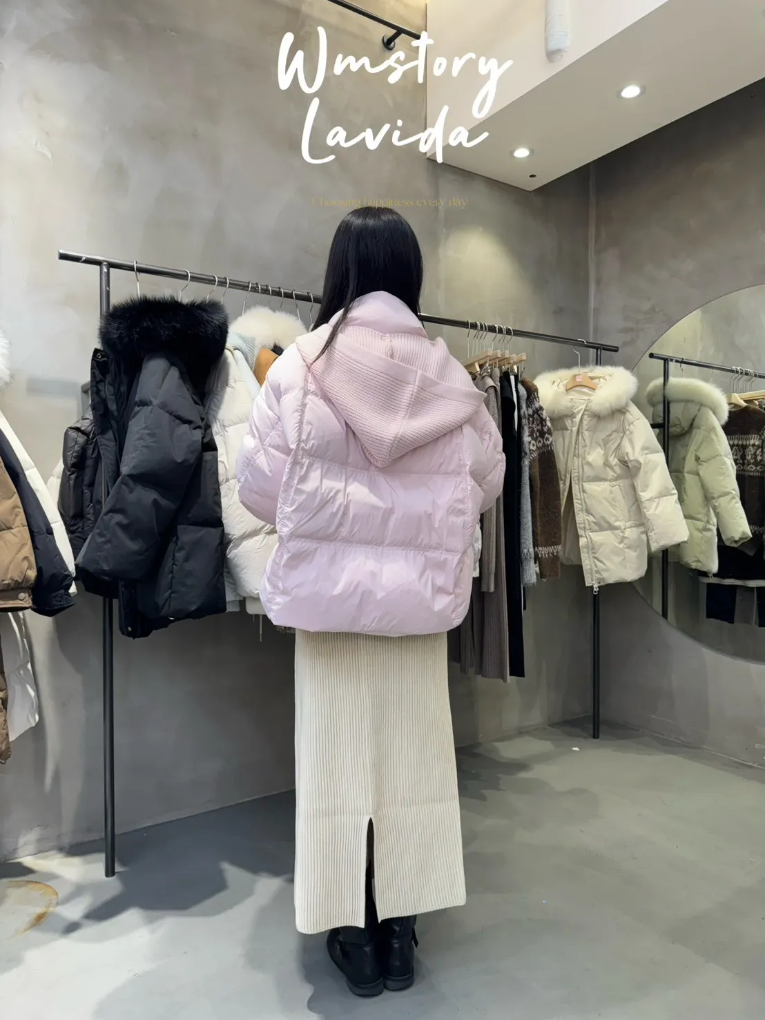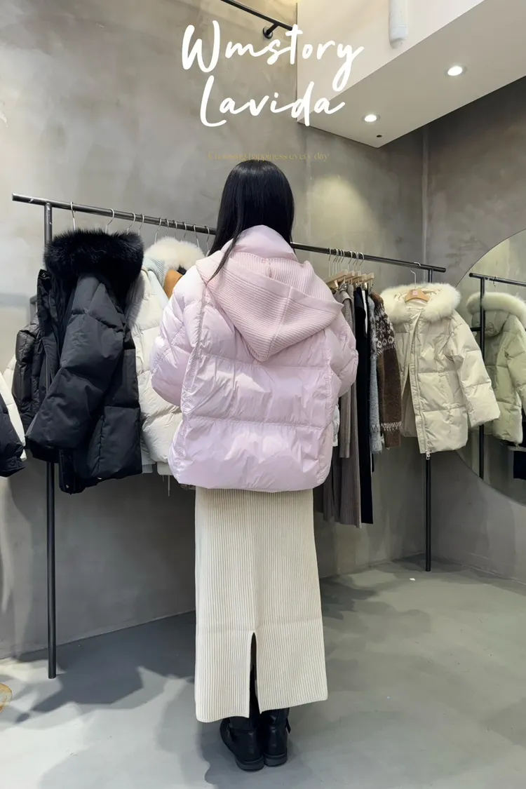 鵝絨100% 帽子是針織款 帽子可拆 釦子拉鍊穿脫 有口袋 下擺抽繩 790克