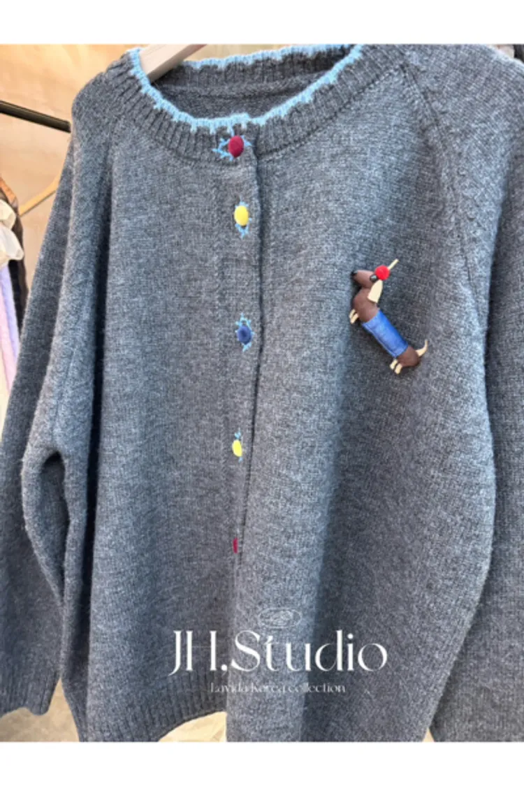 聚酯混紡 臘腸狗狗是別針 設計天鵝絨拚色美釦 中等厚度