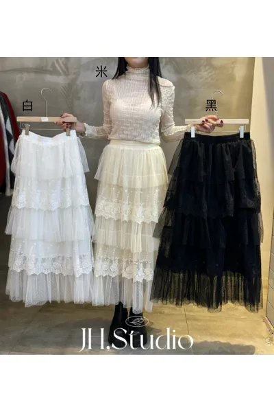 聚酯 蕾絲網紗 透光層次 有內裡 腰有鬆緊 無口袋