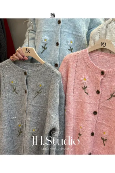 聚酯混紡 立體毛線小花 閃光細緻亮片 混織毛線 無羊毛敏肌舒適