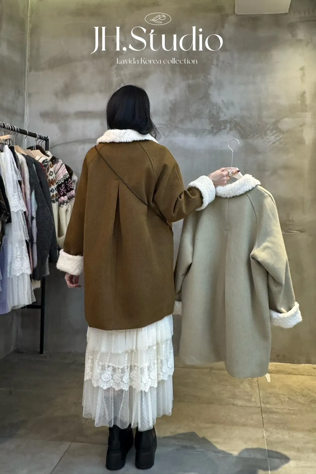 仿麂皮+聚酯 好舒服小毯子內裡 設計感間隔雙釦 送小包包 1.3公斤
