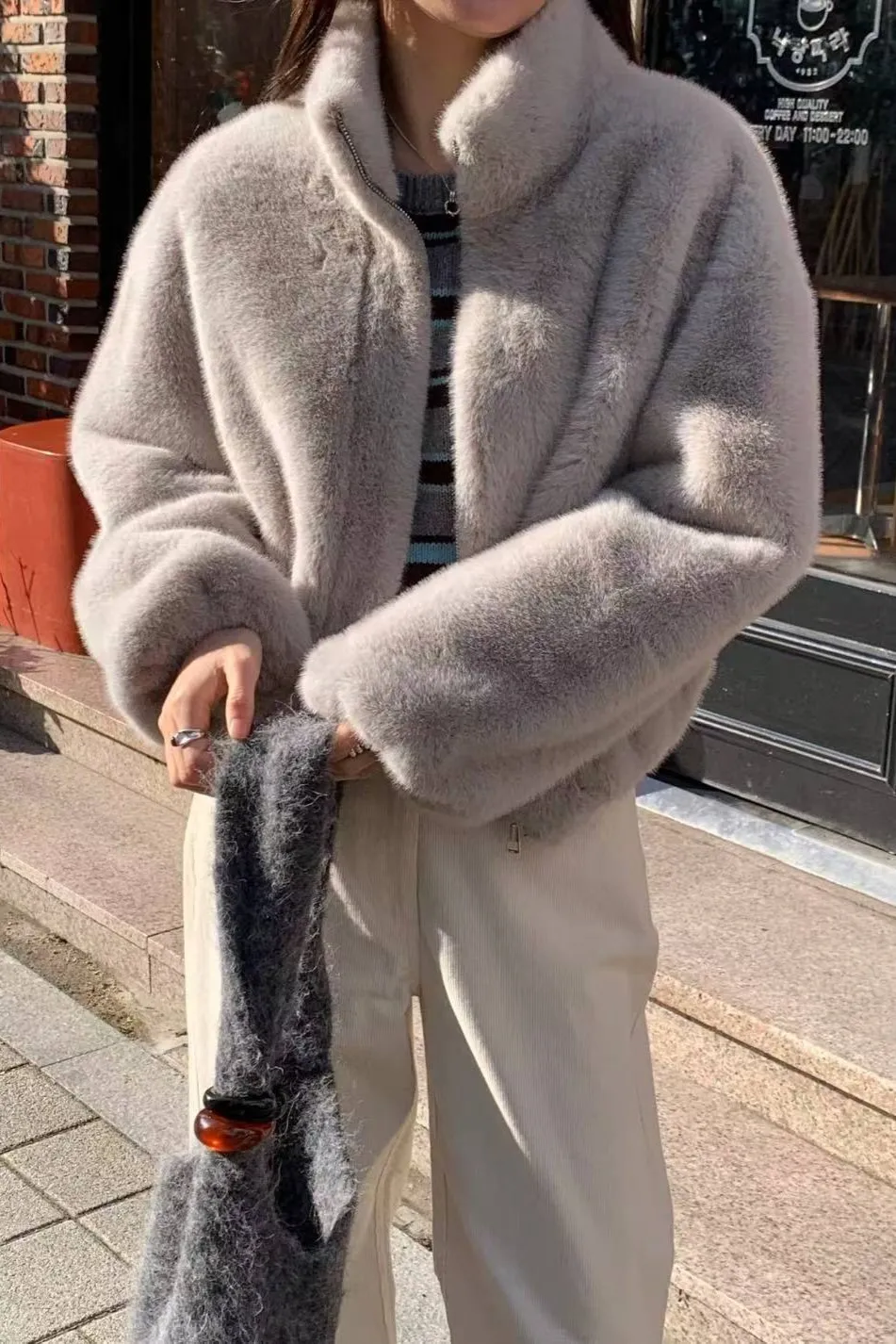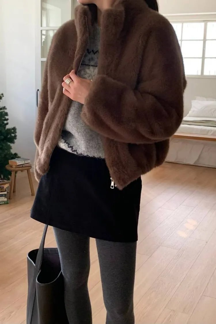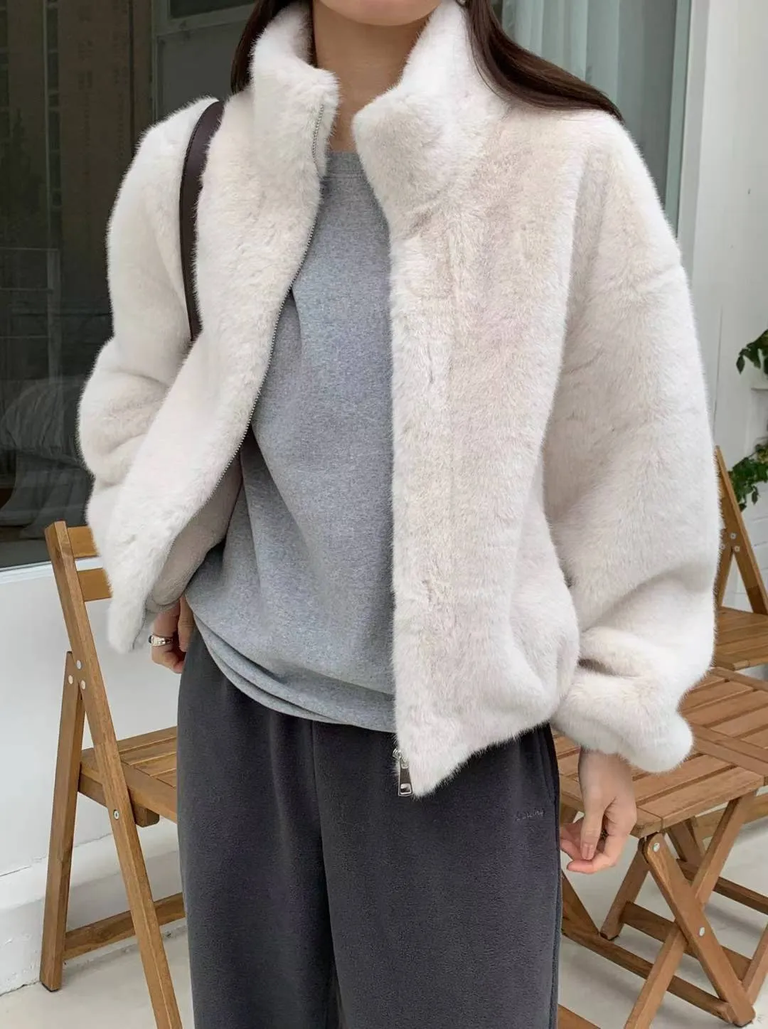 聚酯 拉鍊穿脫 下擺袖口鬆緊 內裡仿皮革 有暖度 質地輕盈 穿到M號