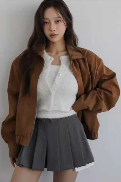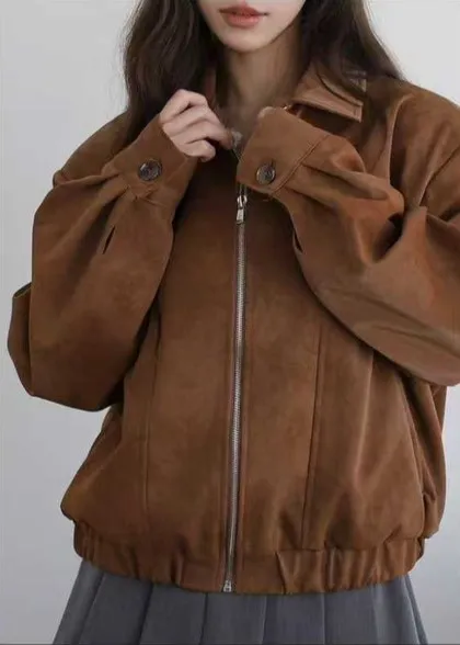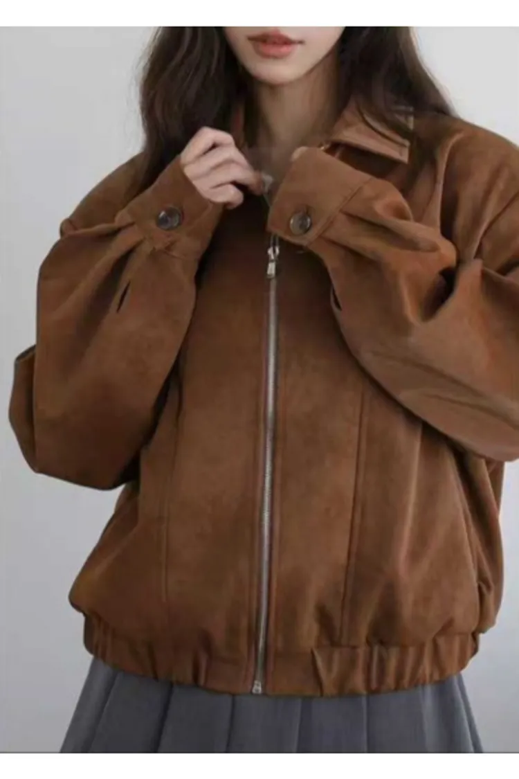 仿麂皮 有口袋 拉鍊穿脫 微墊肩