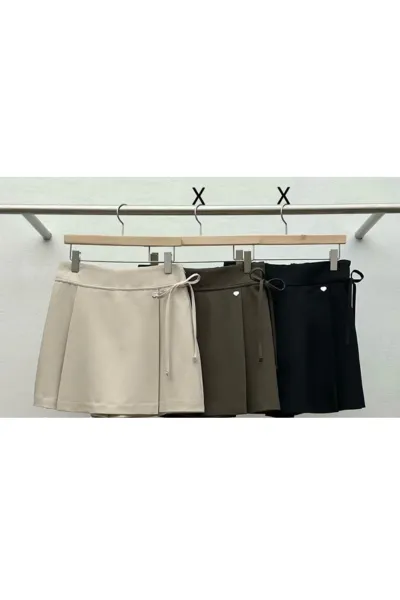 聚酯+縲縈+彈力 薄款面料 愛心小標 側腰綁帶 是褲裙