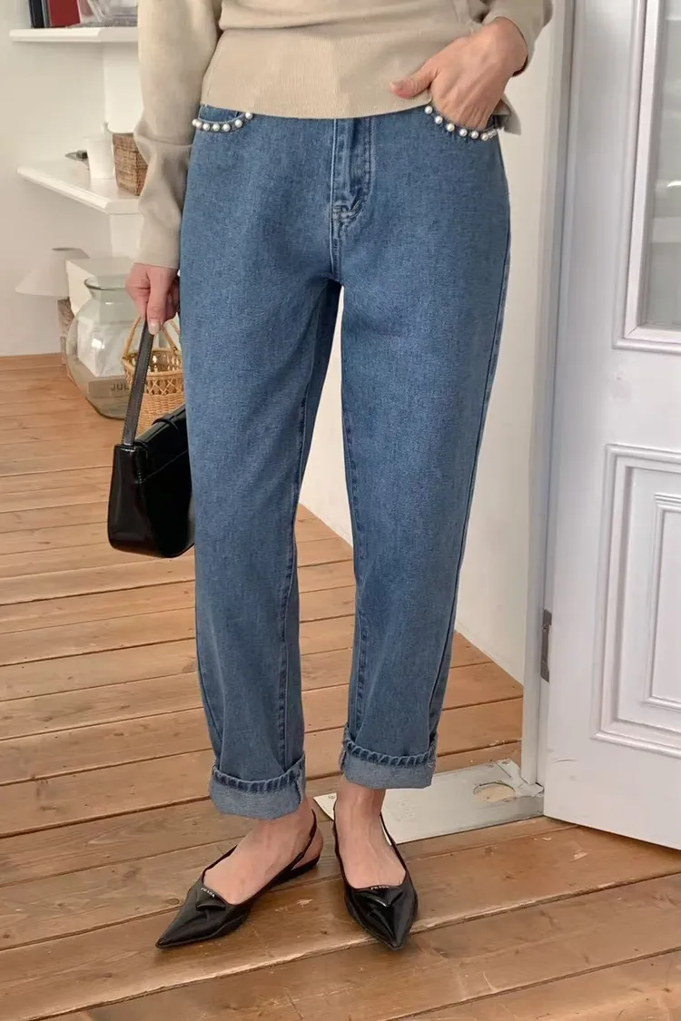 棉 經典熱銷款 顯腿細 鑲嵌珍珠 正常厚度 四季可穿 有口袋 無刷毛