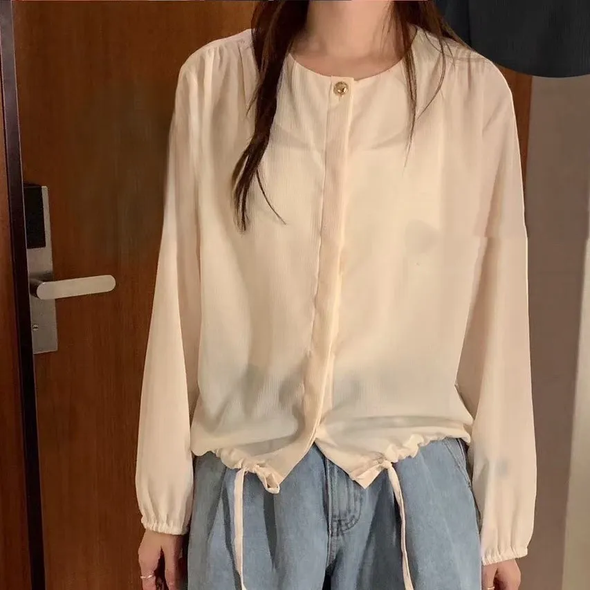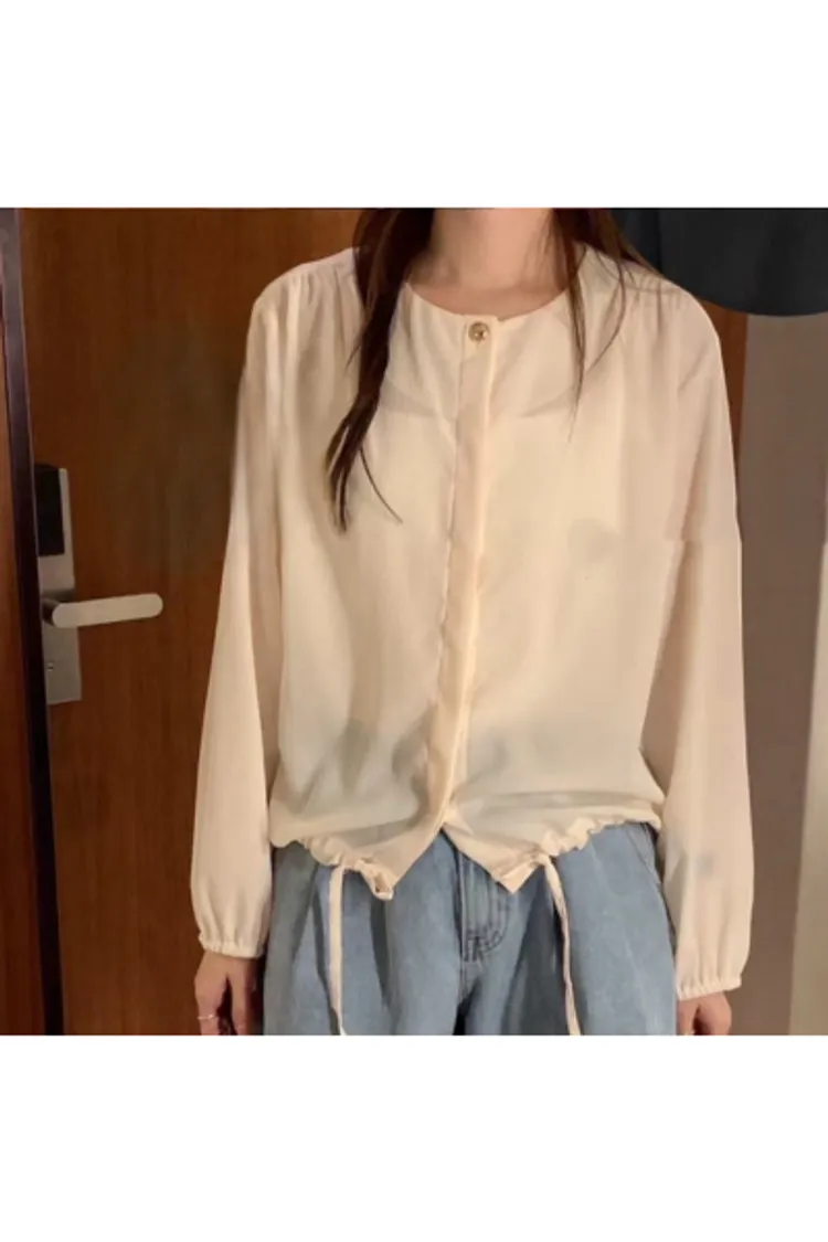 聚酯,薄款舒適 下擺抽繩 手繡鬆緊 金釦單顆