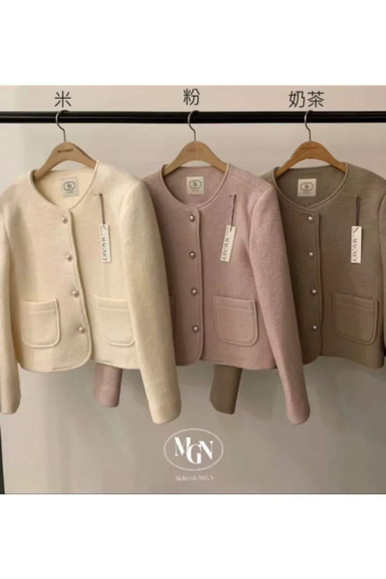 羊毛80% 許願款 珍珠釦 下方雙口袋 排釦穿脫 有內裡