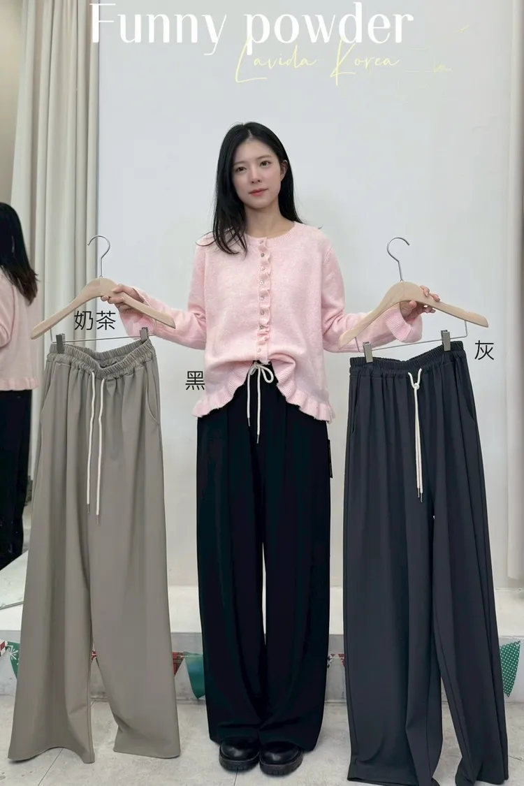 聚酯+棉+彈力 垂墜感加 全腰鬆緊有抽繩 有口袋