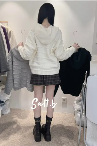 棉 親膚舒適 連帽設計 好看層次針織紋 無羊毛 敏肌讚啦