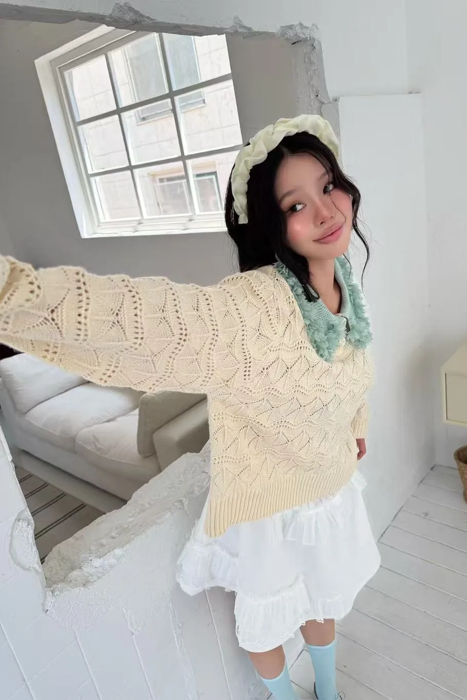 壓克力+聚酯 親膚舒適 薄款細緻簍空 無羊毛不刺癢 愛心布包釦 L號友善