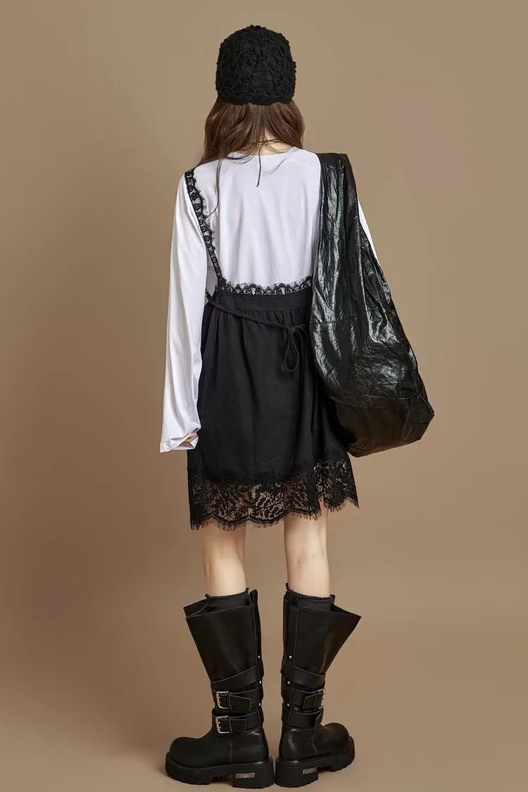 HK577細緻蕾絲下擺氣質長版背心 白 黑 官網價$1020 線上價$990