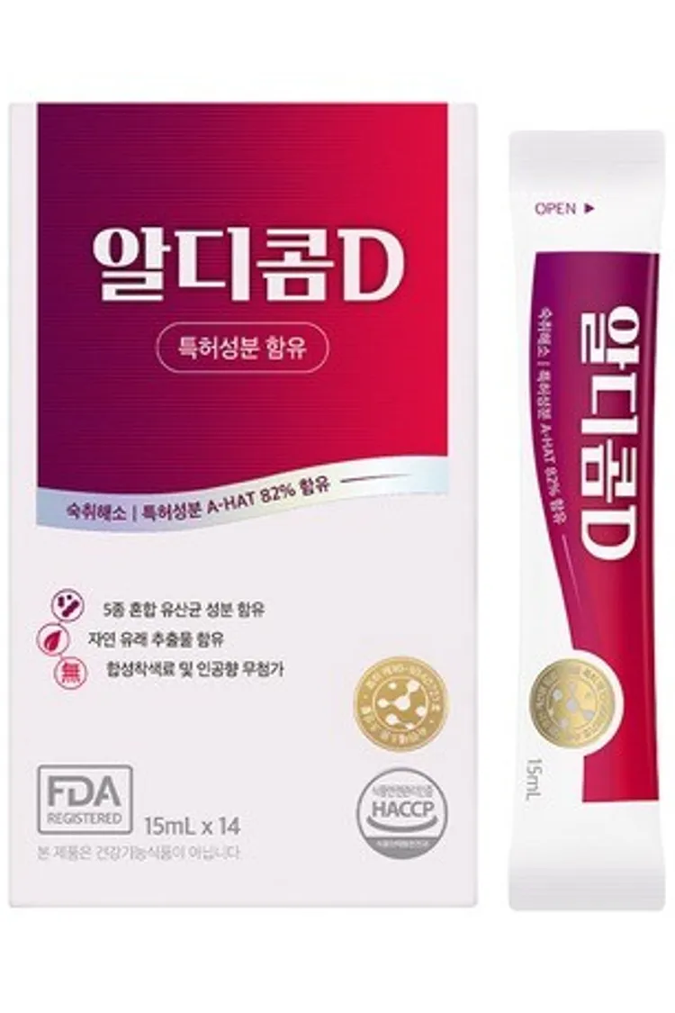 HK699 Aldicom解酒液 原價$550 特價$280主要功能:專門用於緩解宿醉症狀,幫助在飲酒後恢復狀態。 關鍵成分:含有82% 的A-HAT 專利成分,結合5 種混合乳酸菌成分。 產品特色:採用天然來源提取物,且未添加合成色素和人工香料。 包裝規格:每盒包含14 支,每支15mL。效期:2026.11.10效期較短,介意者請勿購買!