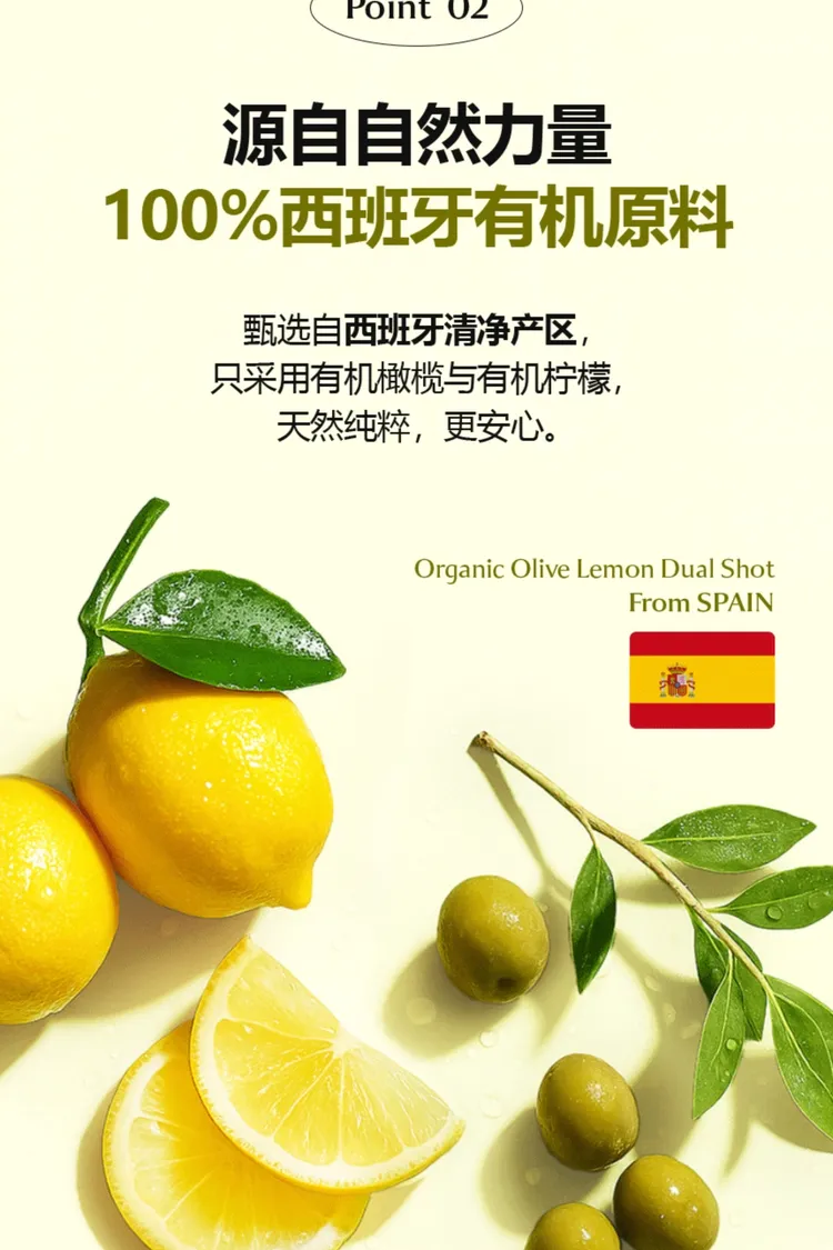 內含成份 : 西班牙特級有機初榨橄欖油 65%+維生素E+有機檸檬濃縮液+維生素C