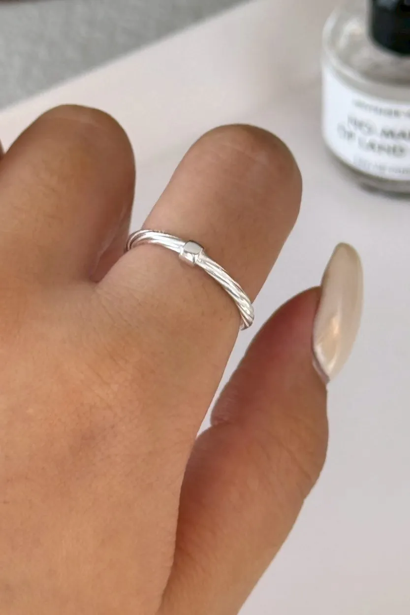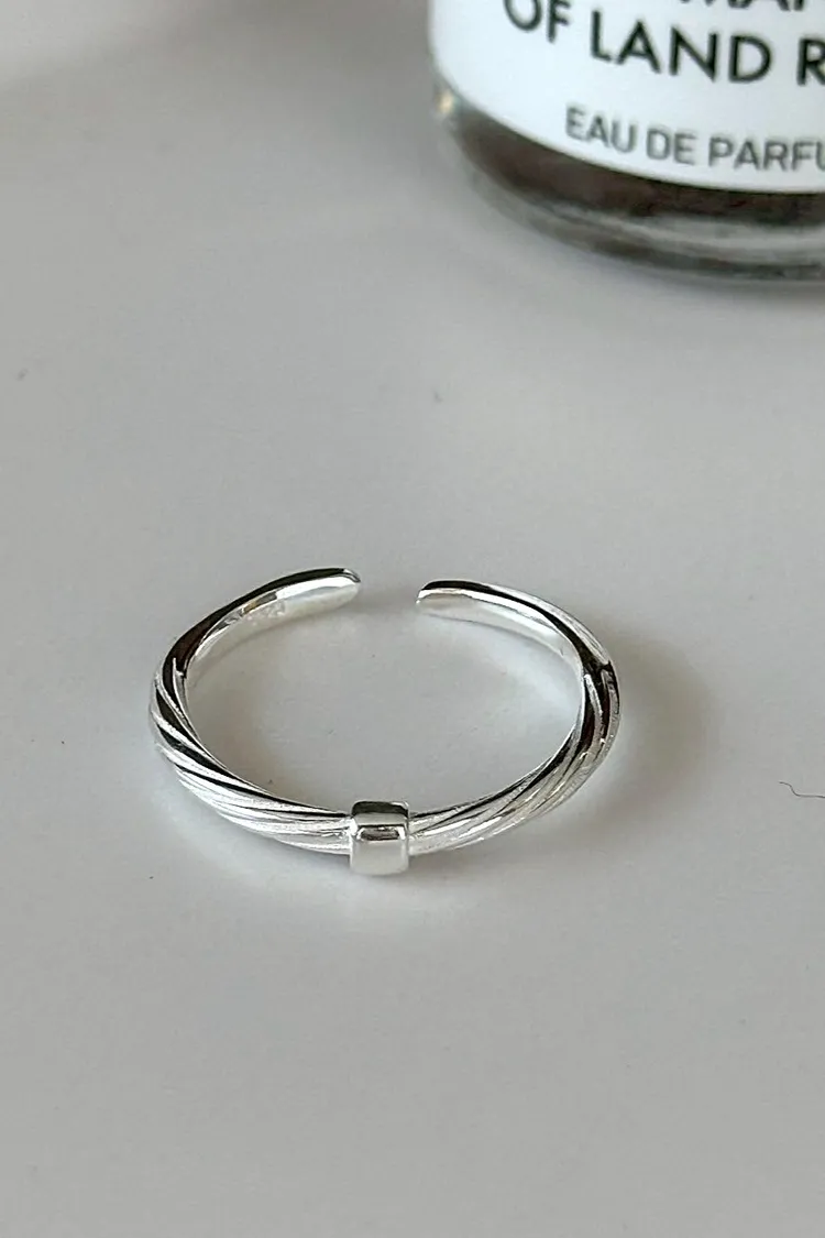 HP007轉運小方塊扭繩純銀925可調式戒指