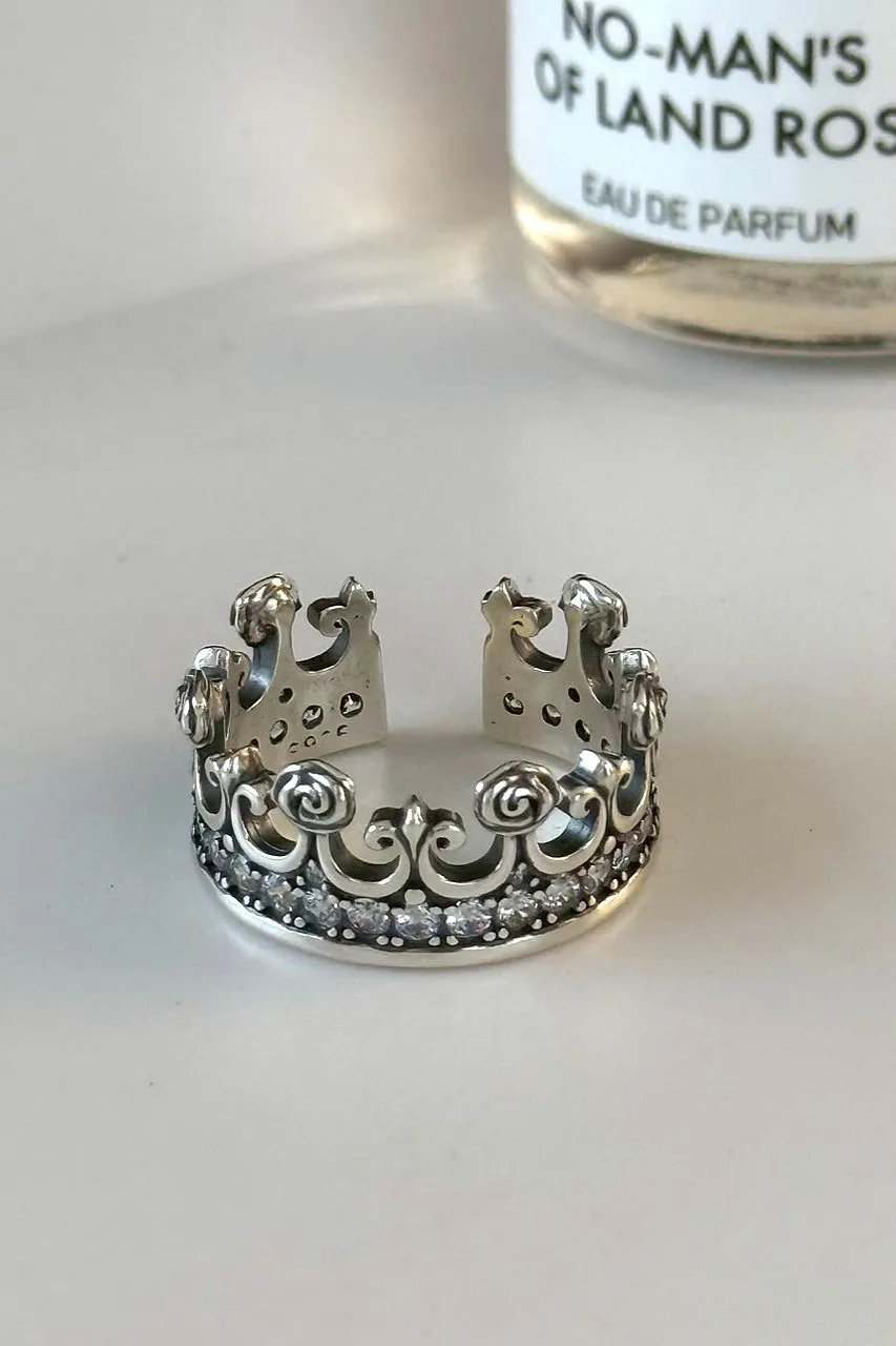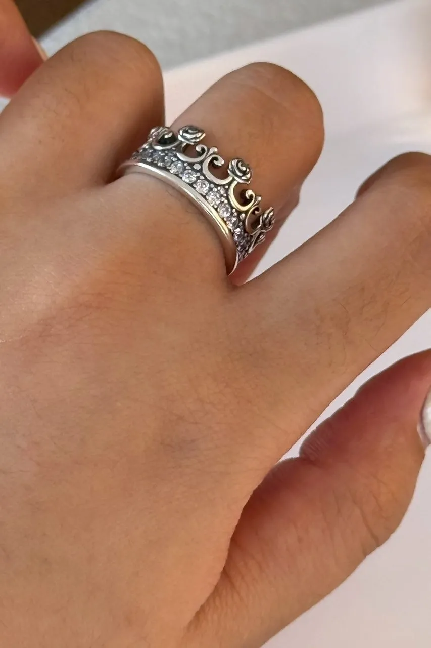 HP028細鑽皇冠純銀925可調式戒指